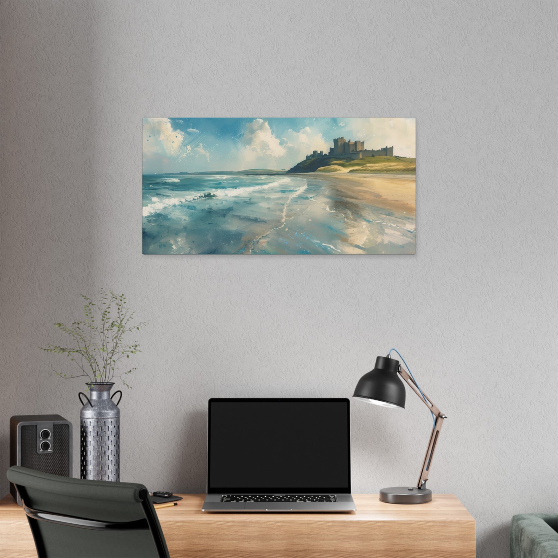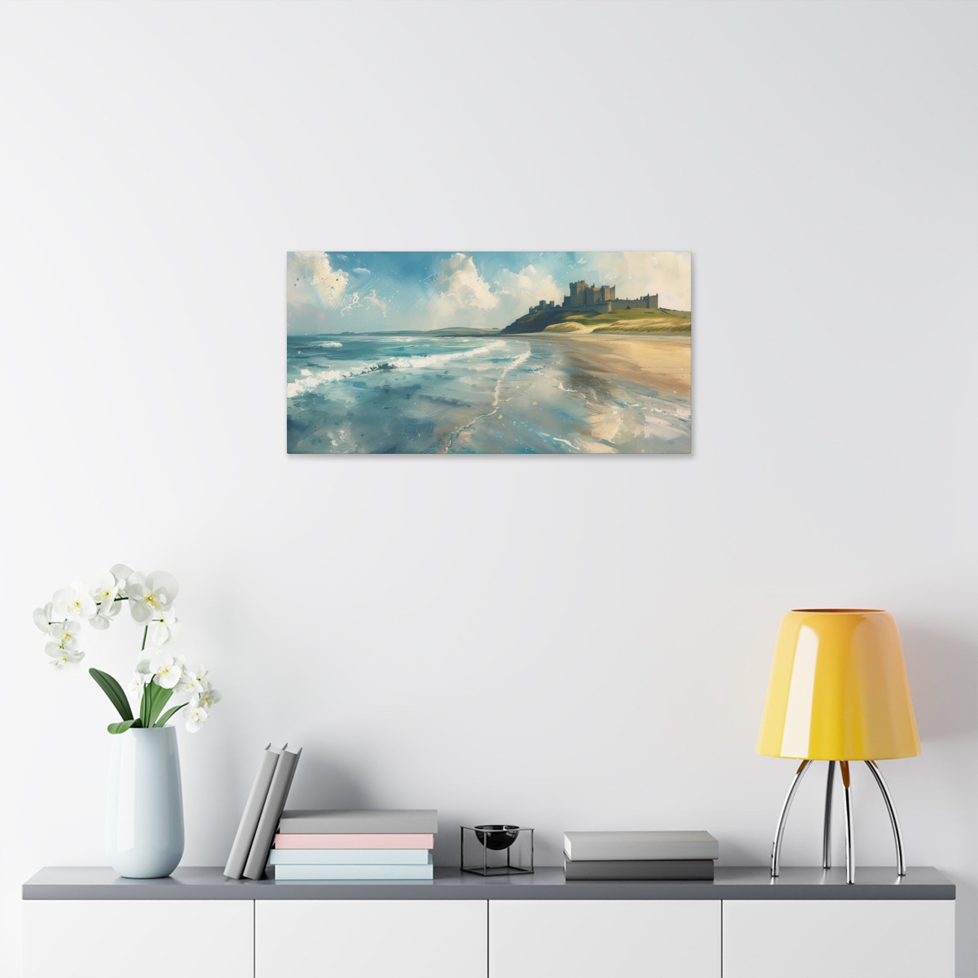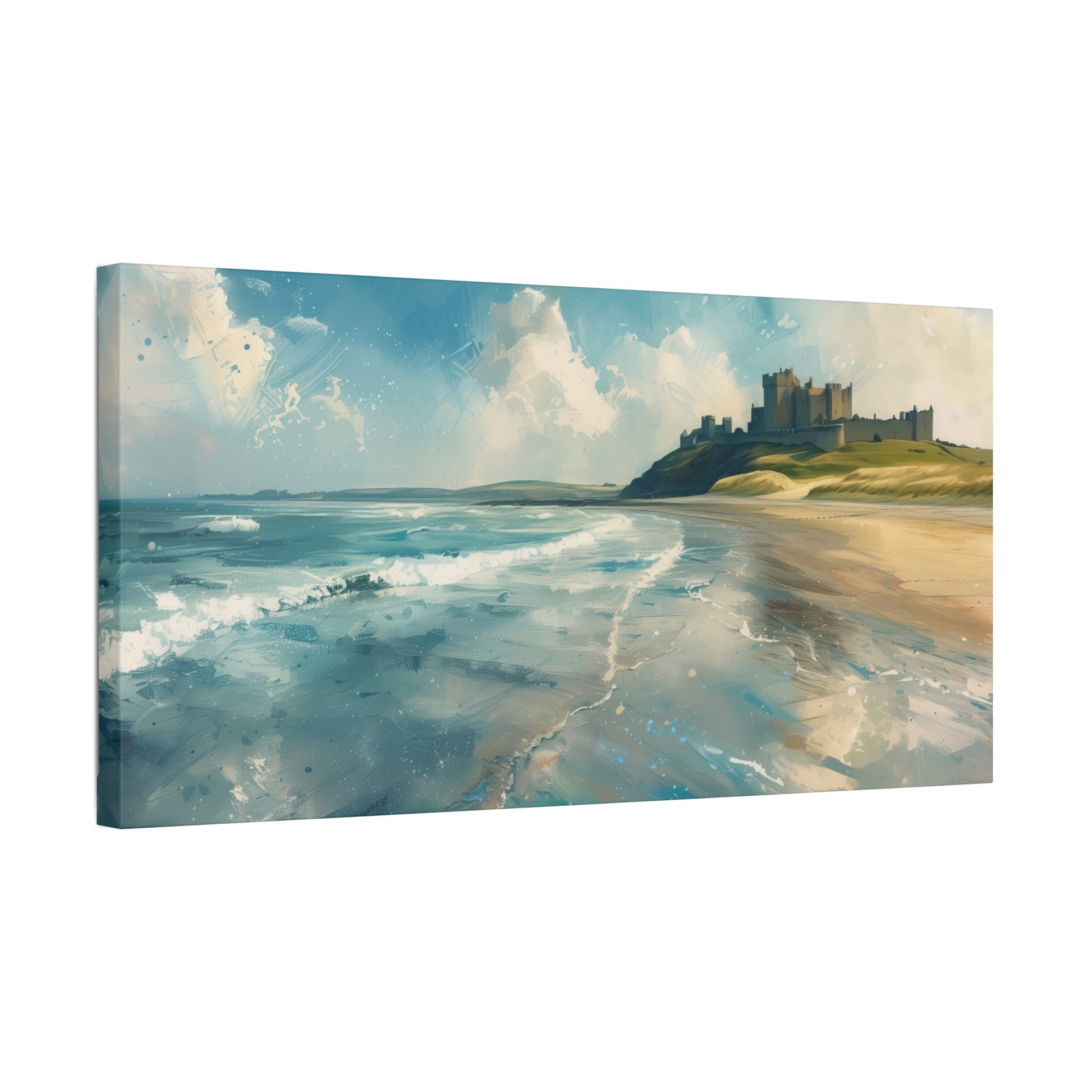 This is and isn't our Bamburgh Castle. A soft, breezy day with blue patches and white clouds whipping by.