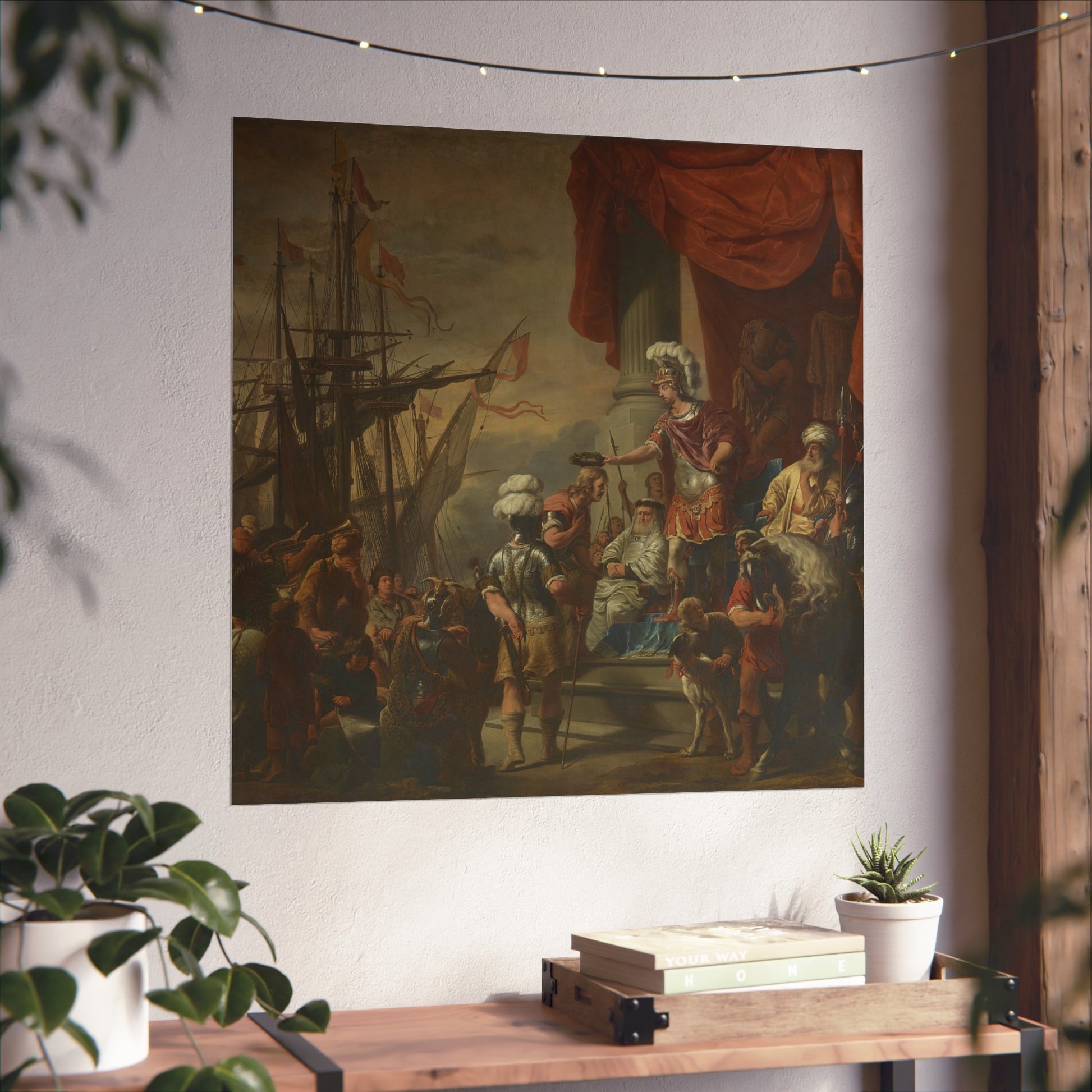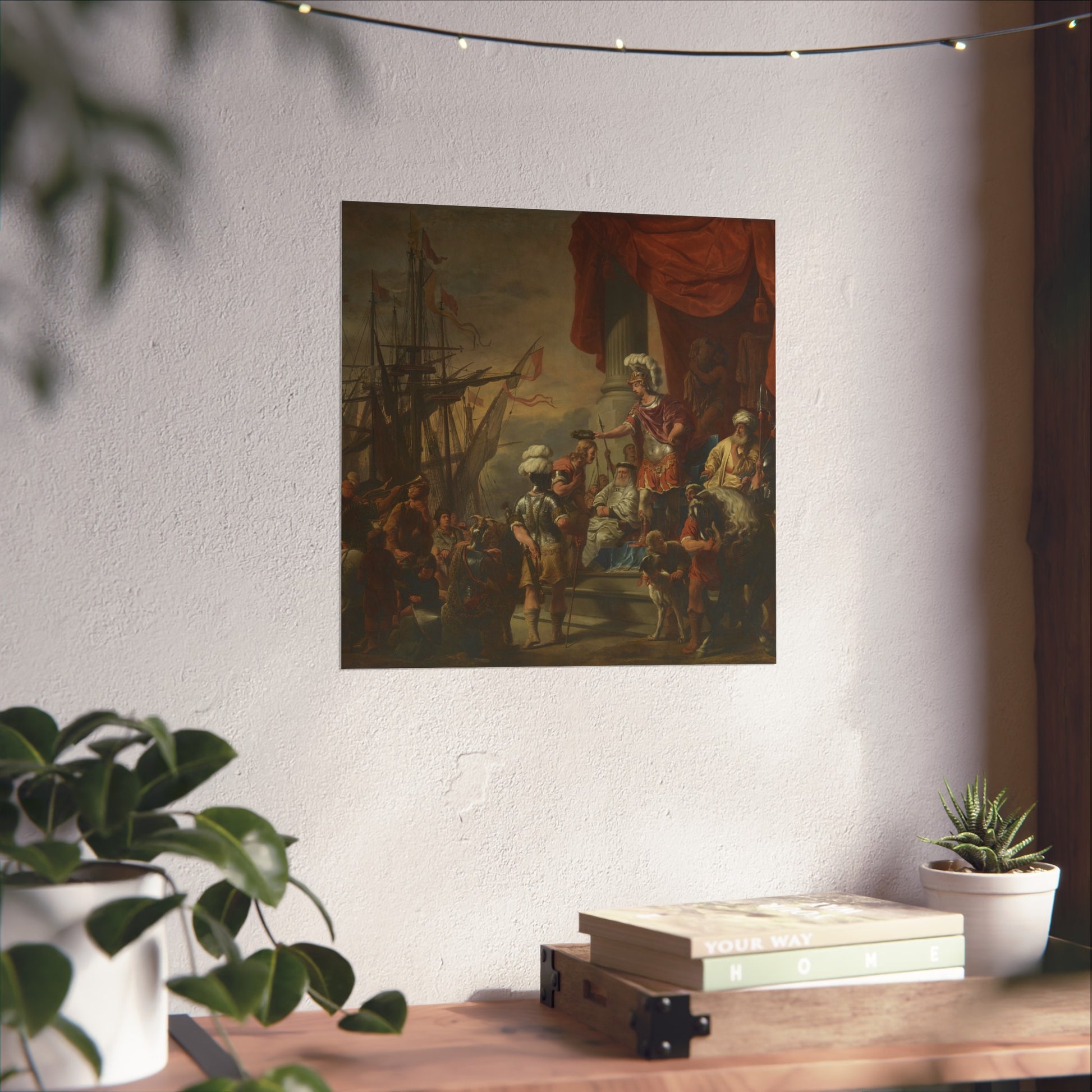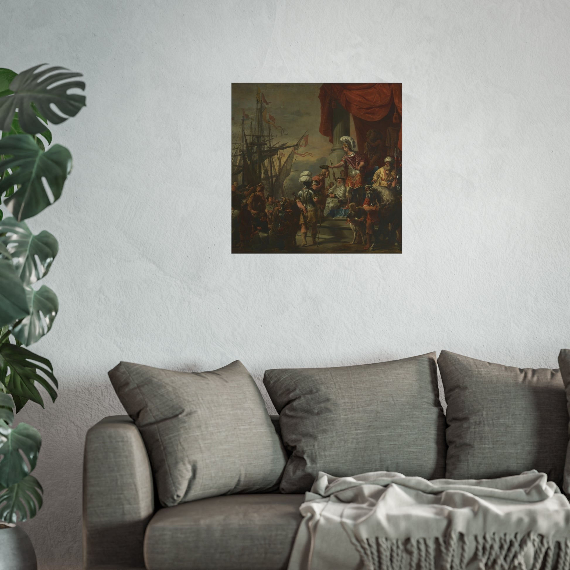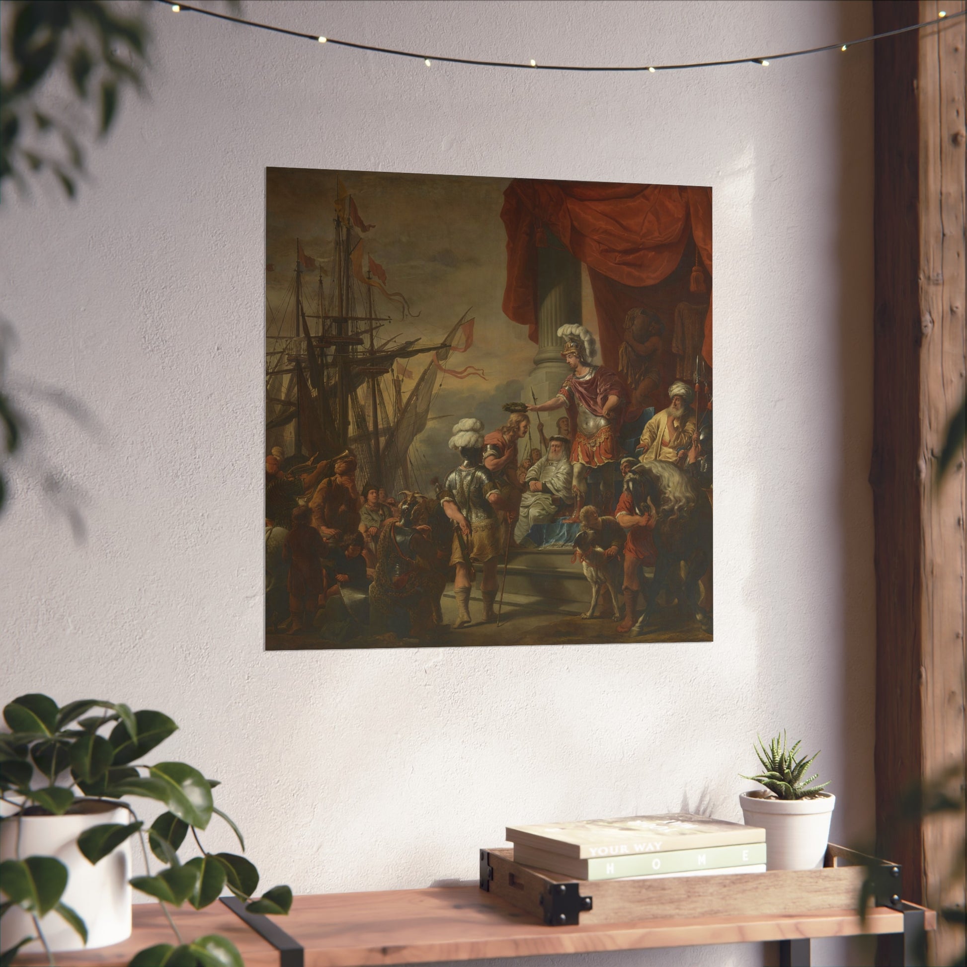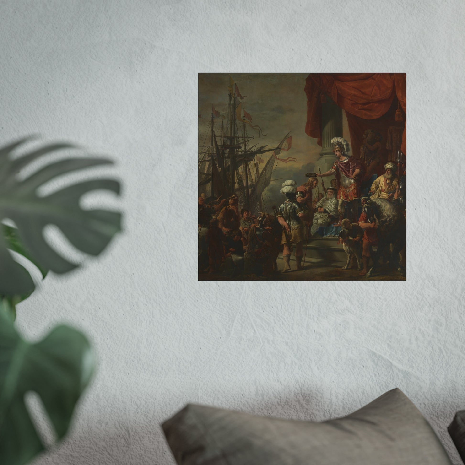 In the midst of a grand naval event, the hero Aeneas is seen bestowing laurel wreaths upon Cloanthus, signifying his victory. The scene is brimming with anticipation, as a captivated crowd looks on. To the left, the masts of various ships punctuate the backdrop, adding to the maritime ambiance.