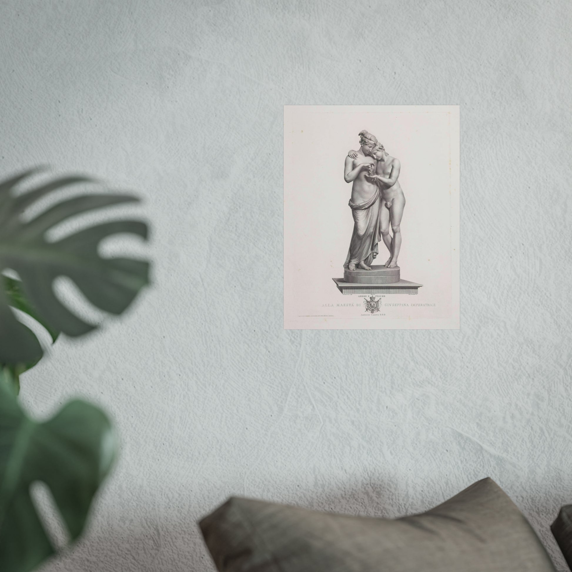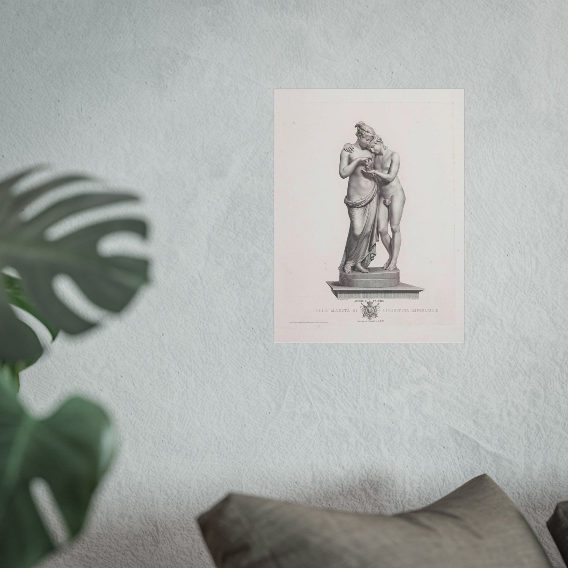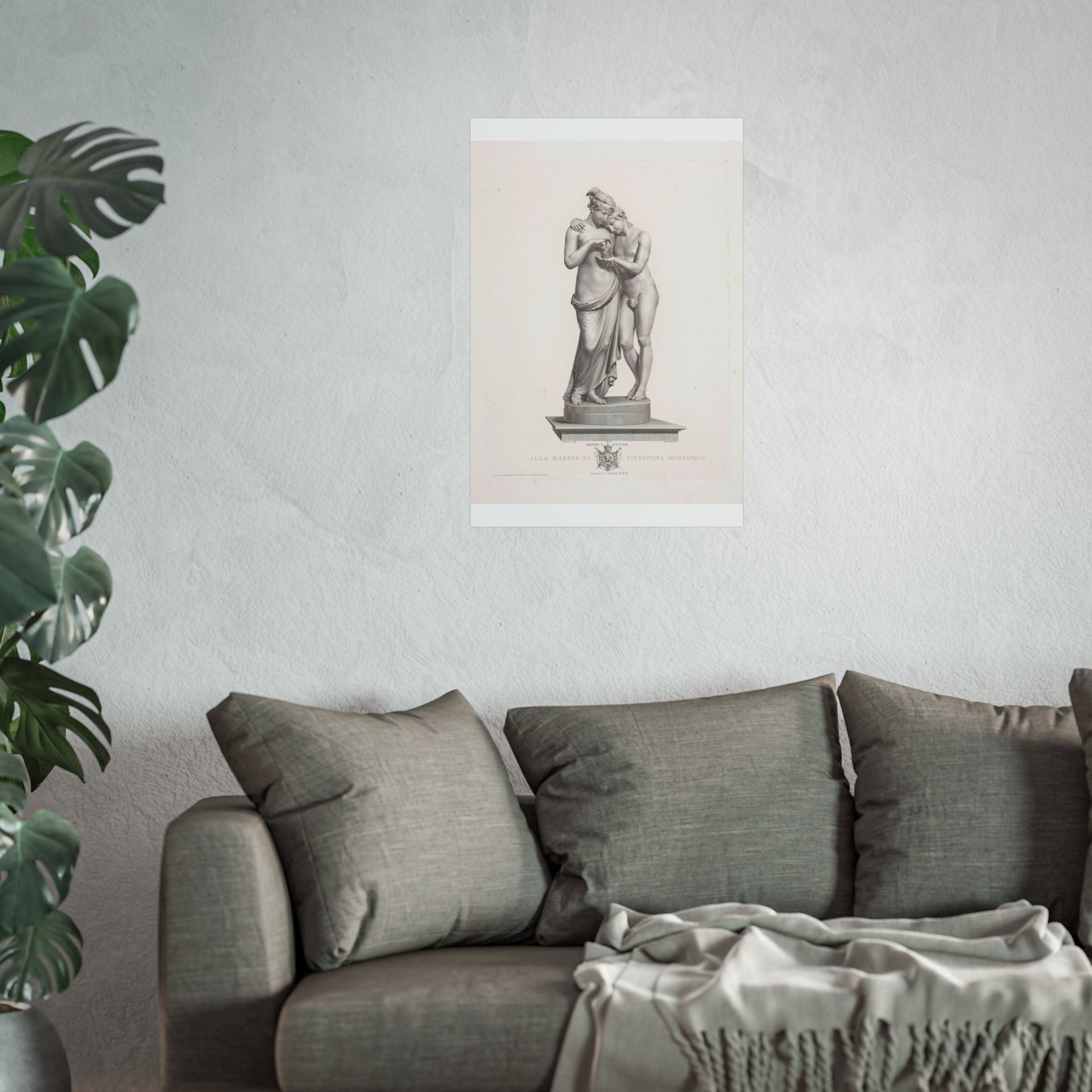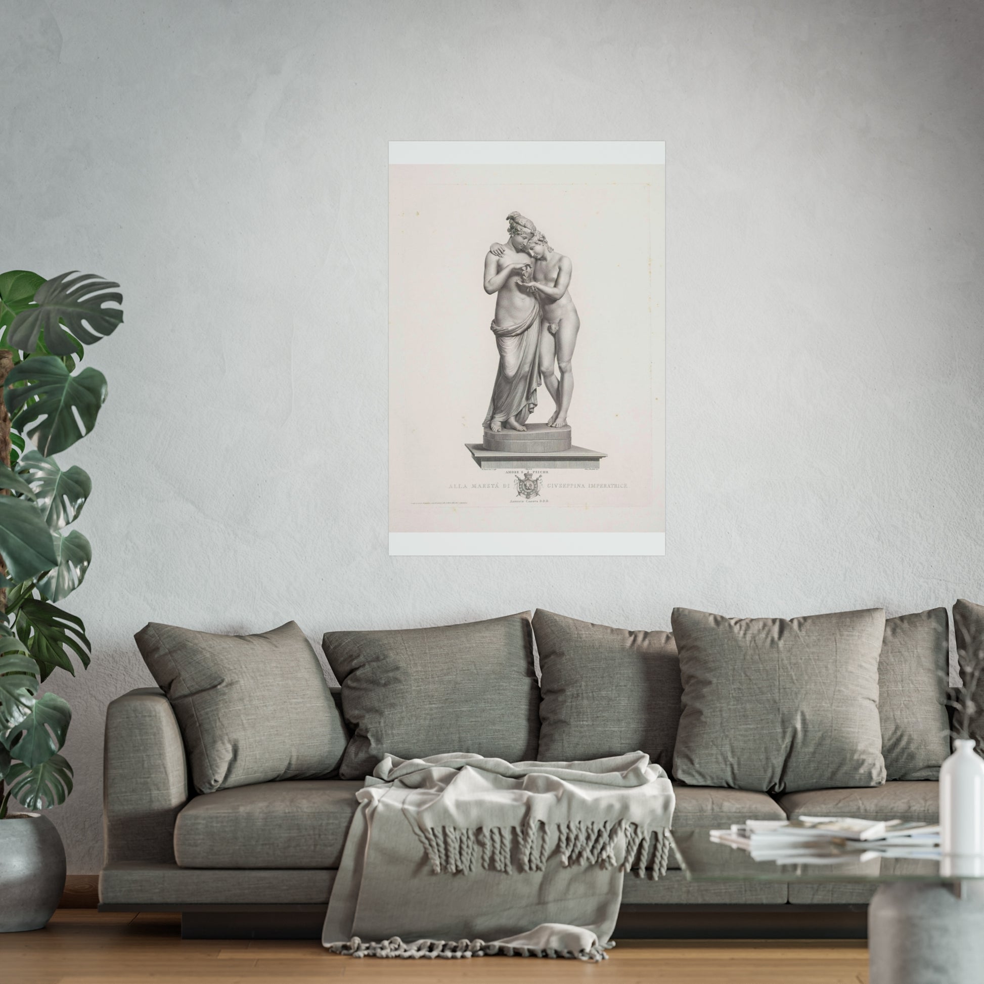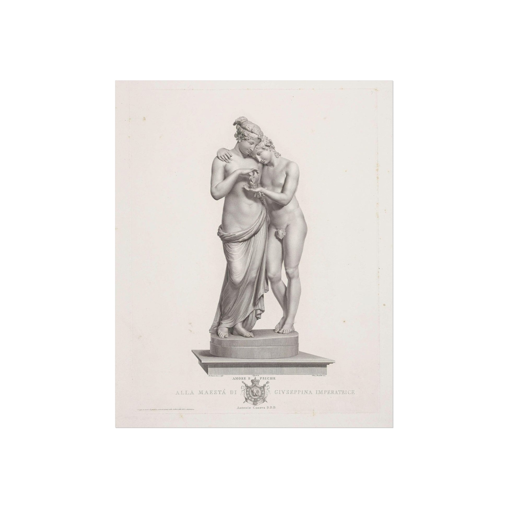 Experience the captivating beauty of the sculpture 'Amor and Psyche' crafted by the renowned Italian sculptor, Antonio Canova. This exquisite piece captures the romantic tale of Amor and Psyche in a form that transcends time and space.