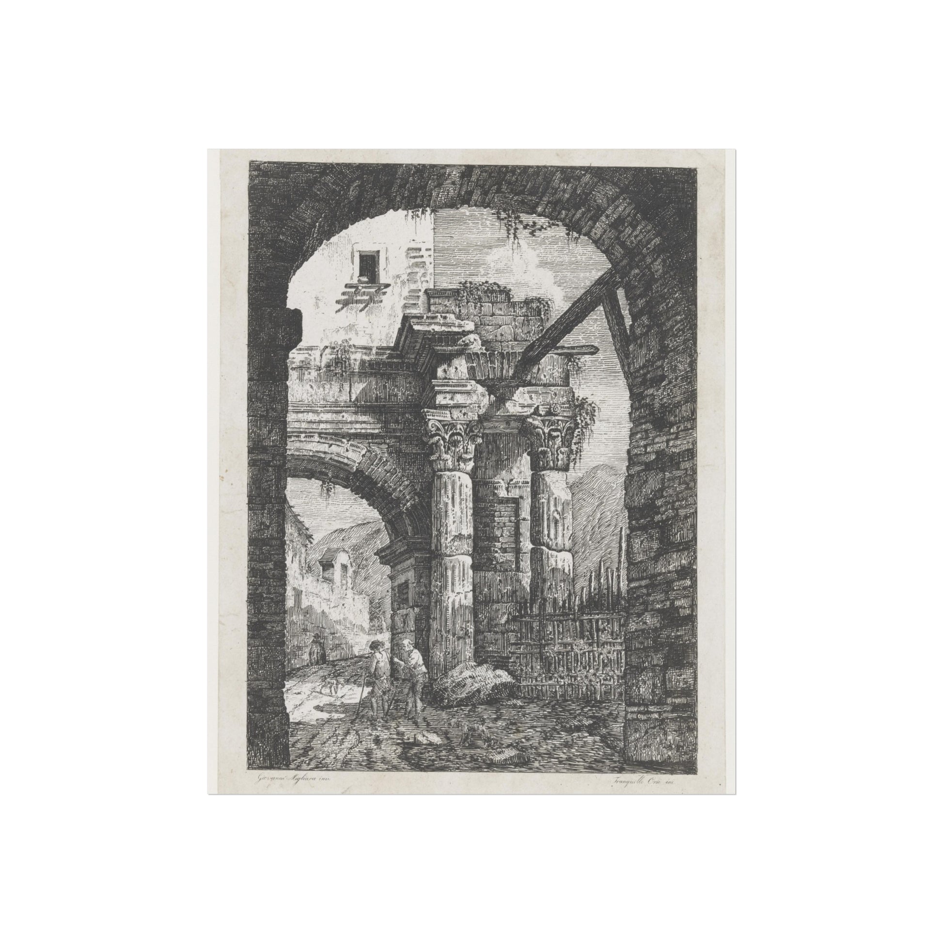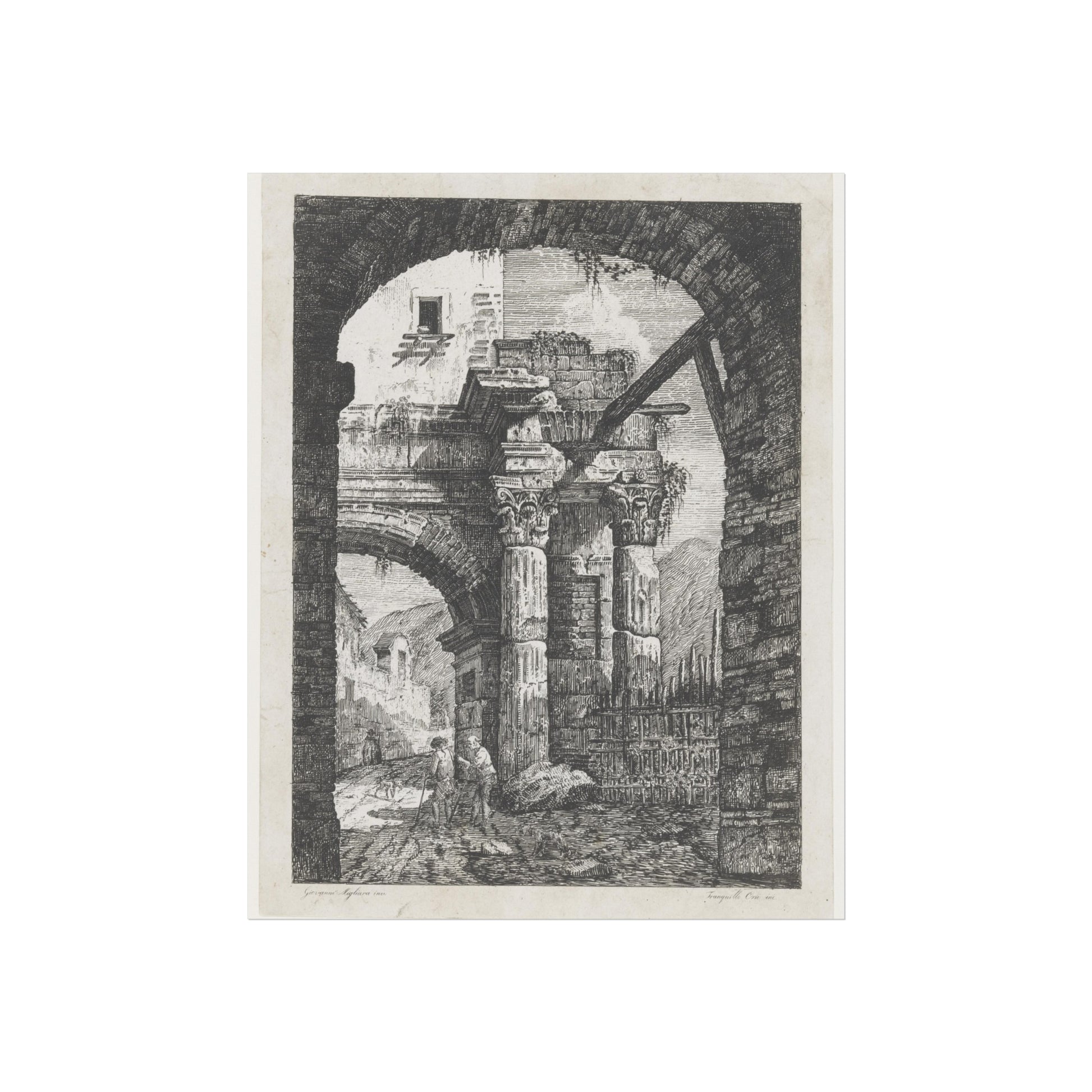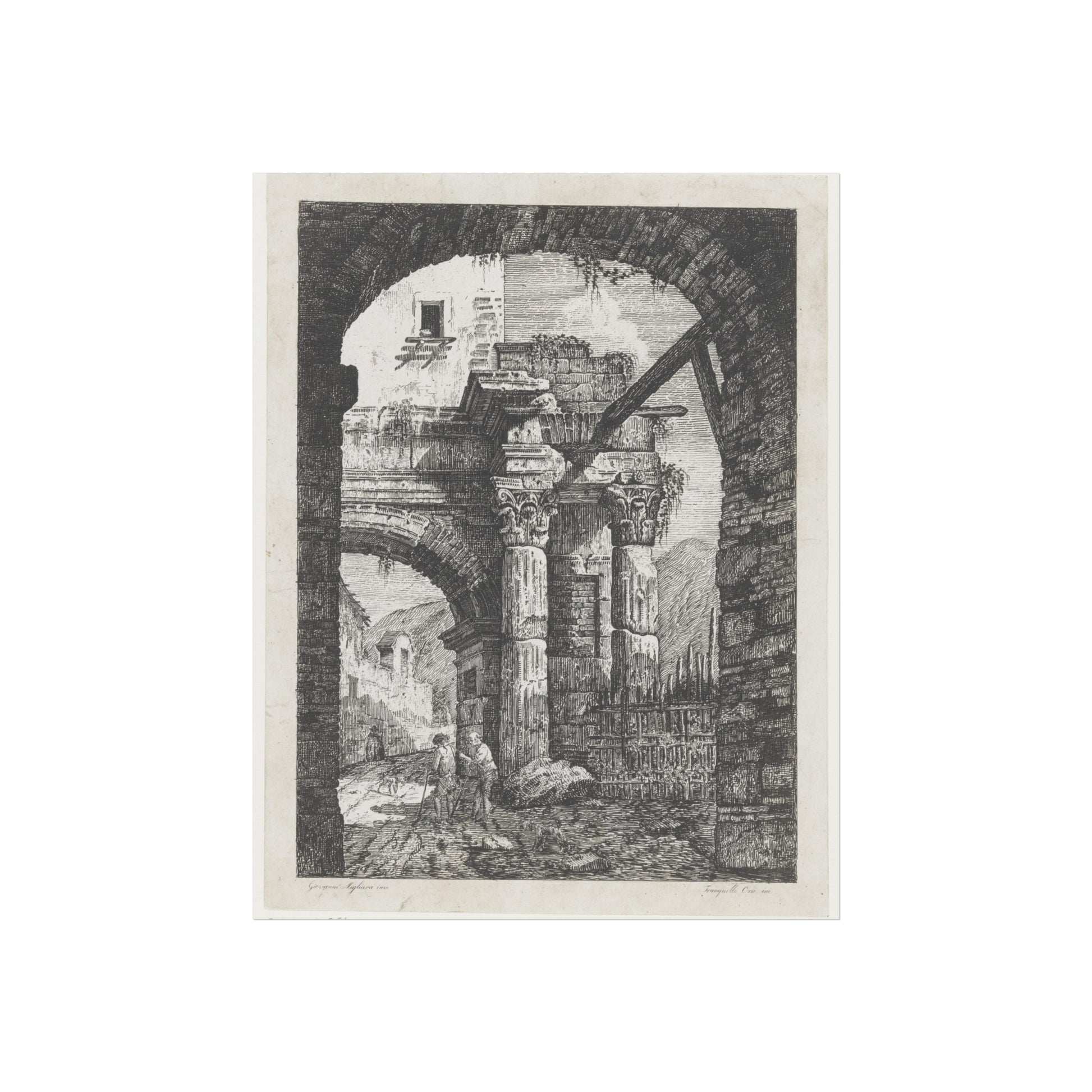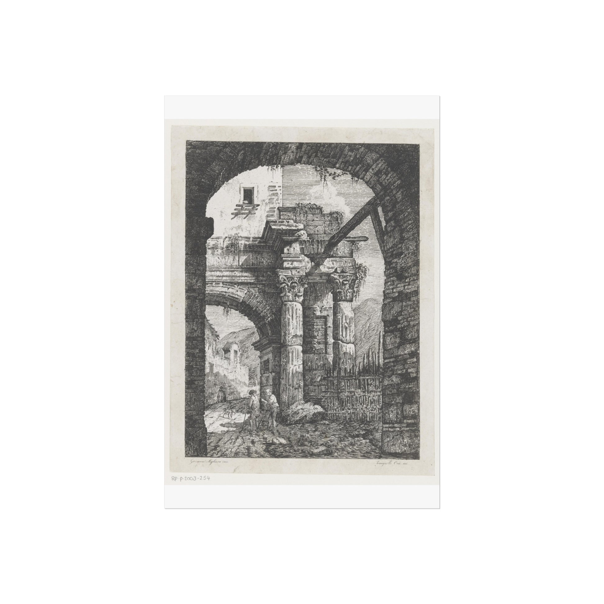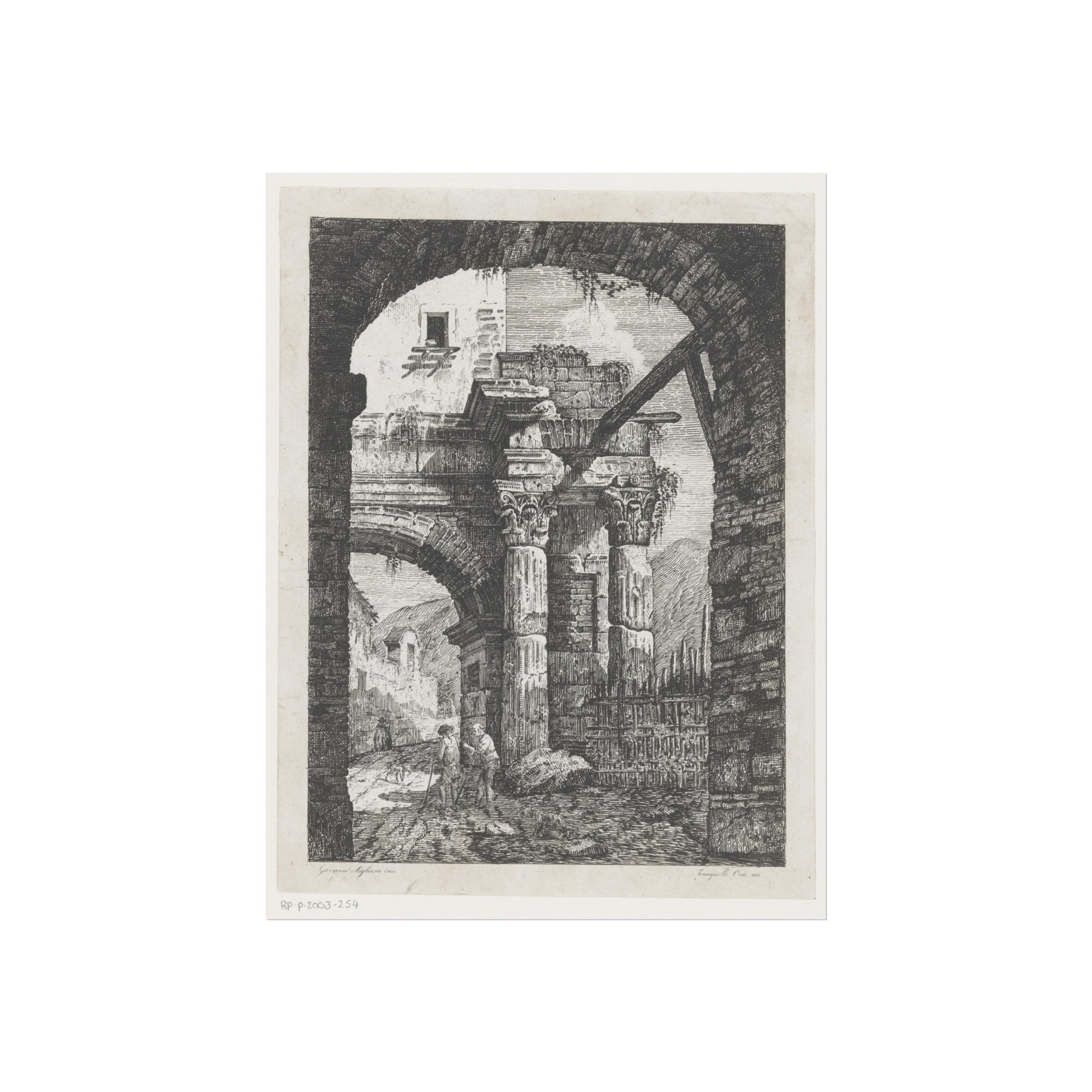Antieke ruïnes en wandelaars op een pad, 1795