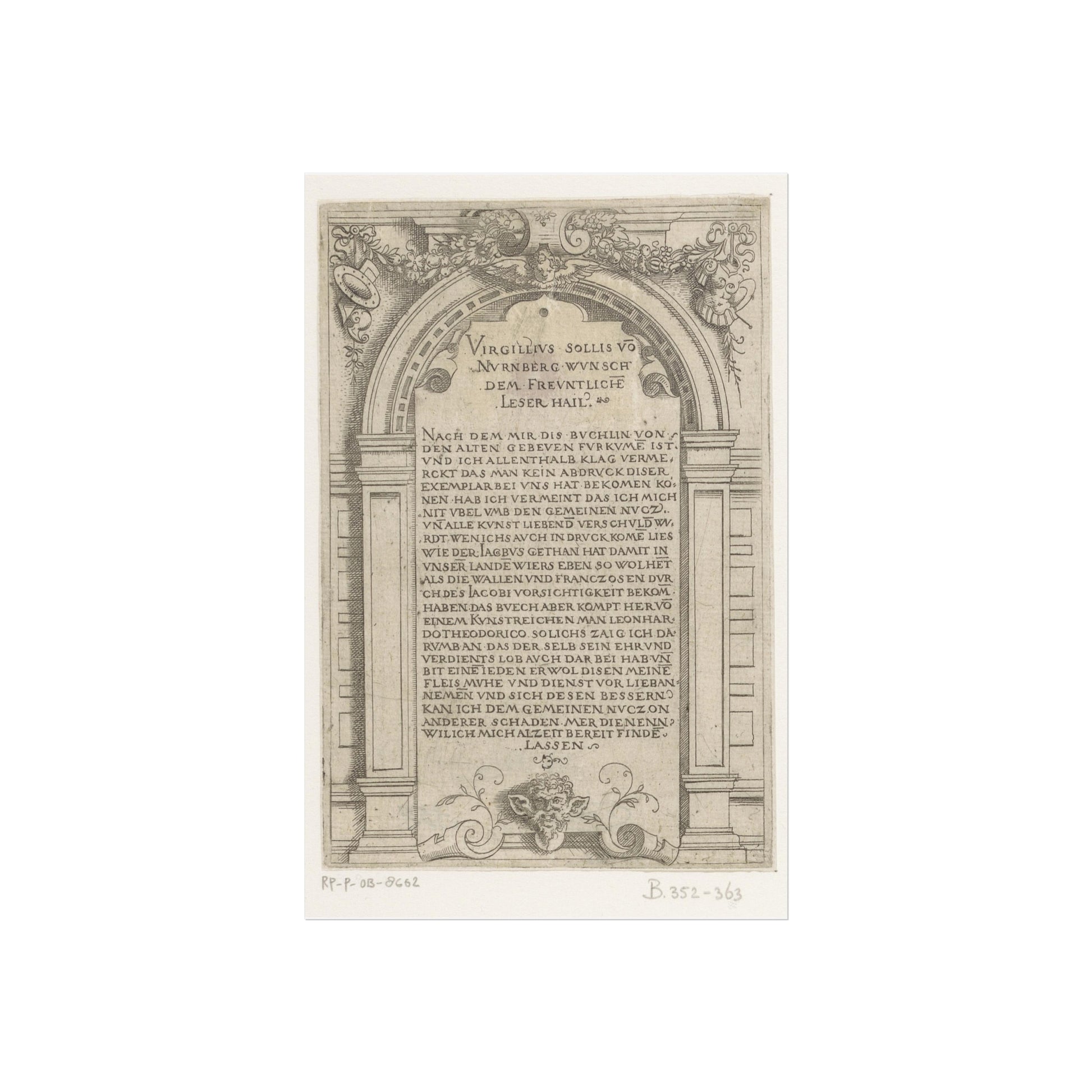 This artwork is currently missing a detailed description. However, it's a captivating piece by the renowned artist, Virgilius Solis. It features a unique blend of colors and textures, creating a visually stunning aesthetic that engages the viewer.