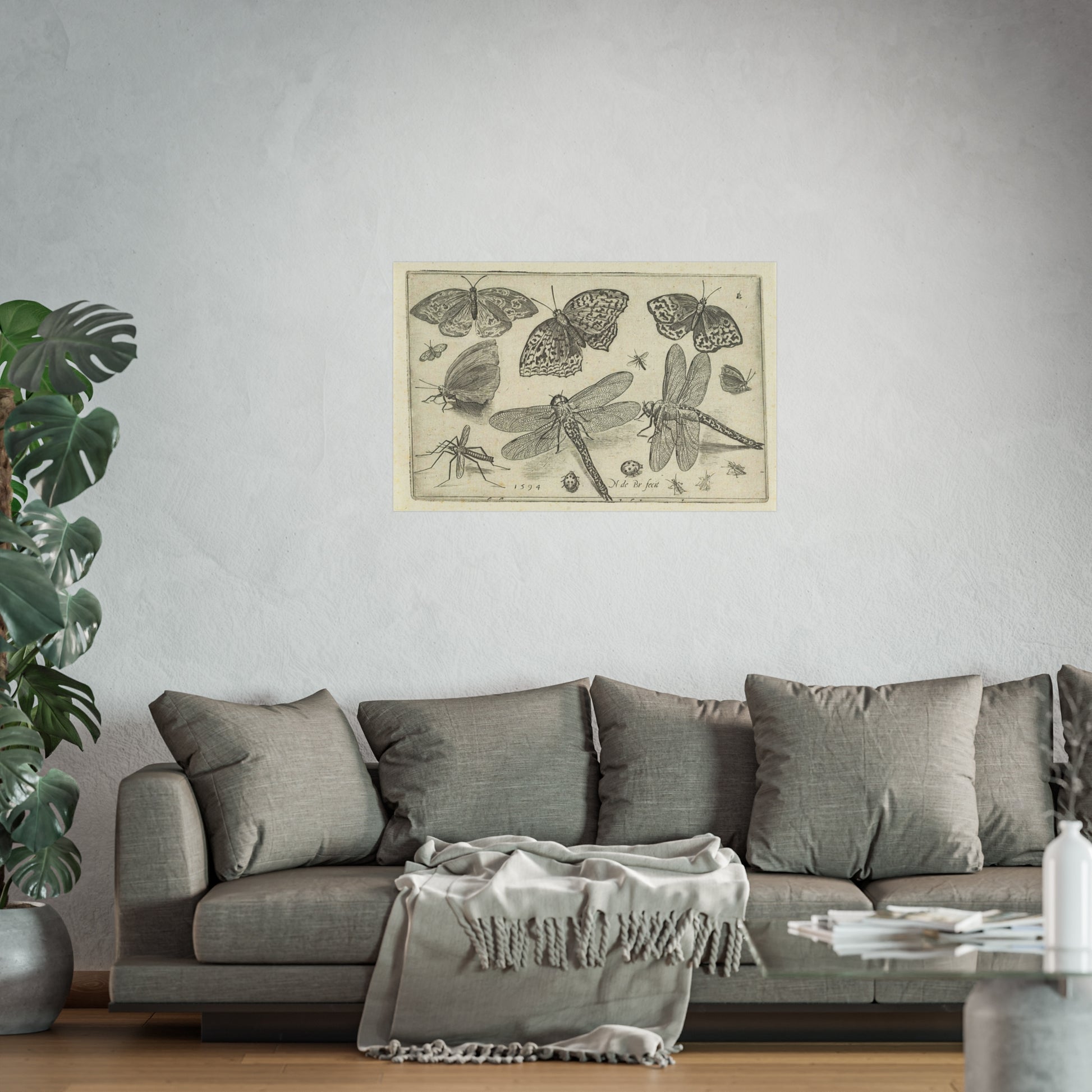 This enchanting piece by Nicolaes de Bruyn immerses you in a world teeming with life. Delicate butterflies and dragonflies flutter about, their intricate details beautifully captured by the artist's skillful hand. The artwork is a testament to de Bruyn's keen eye for nature and his exceptional ability to bring it to life on canvas.