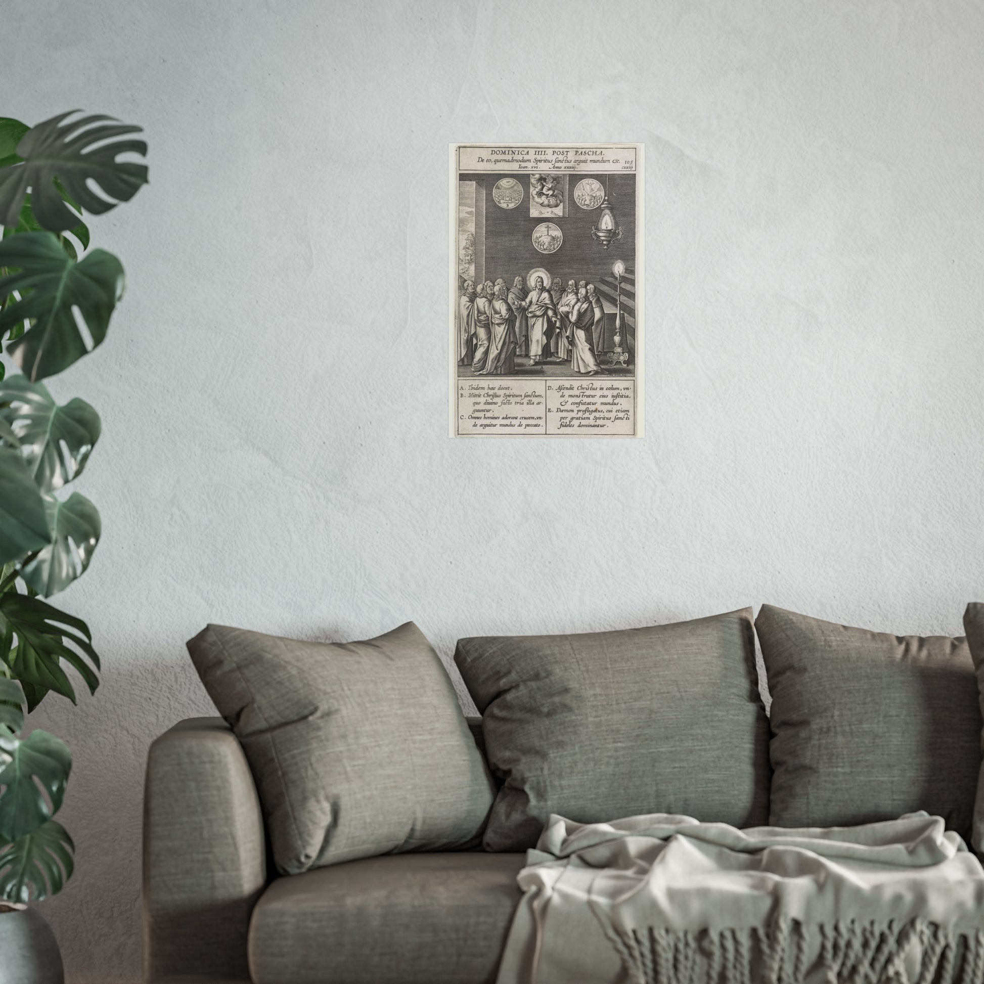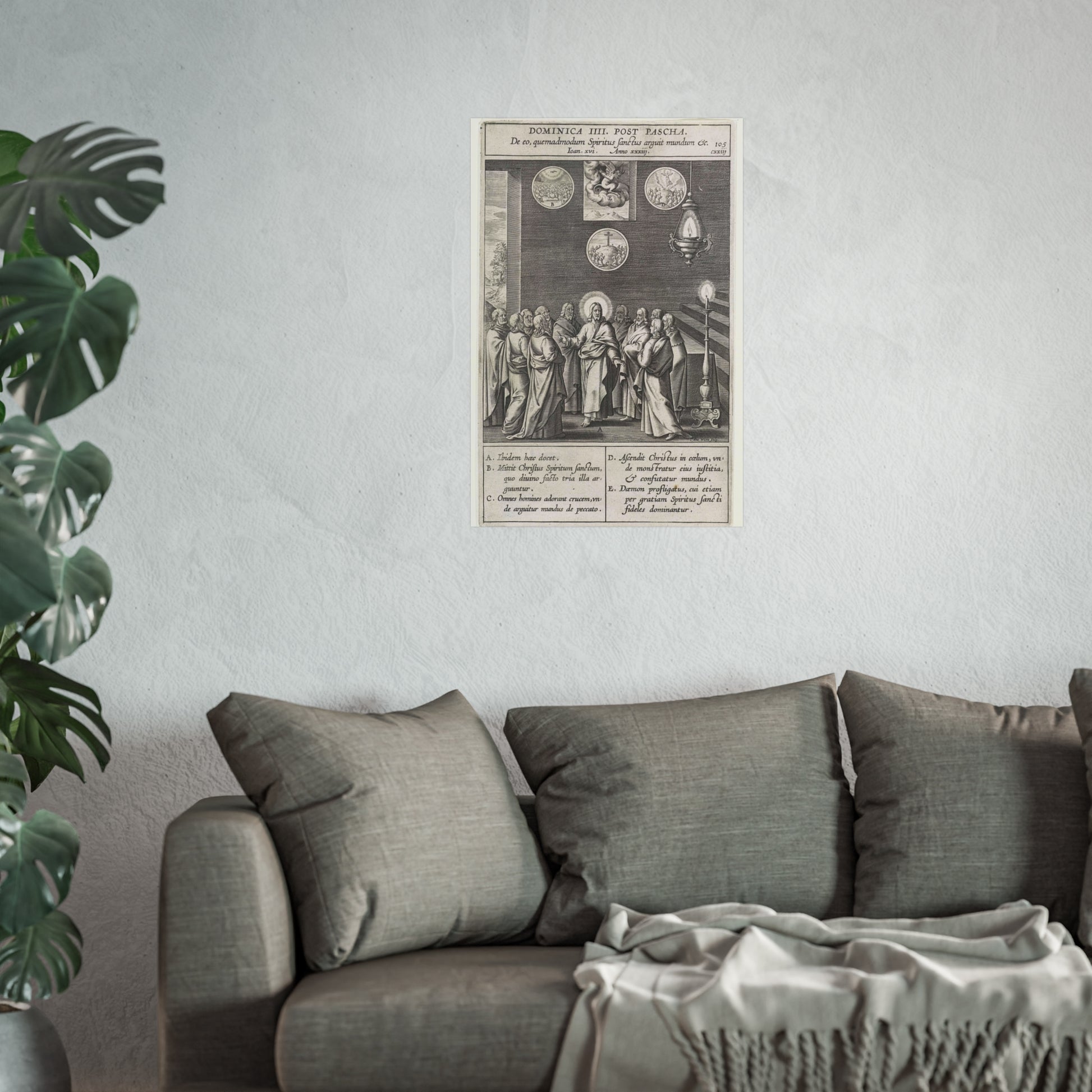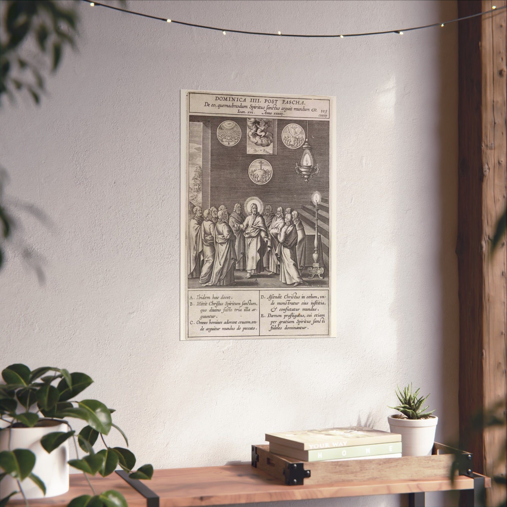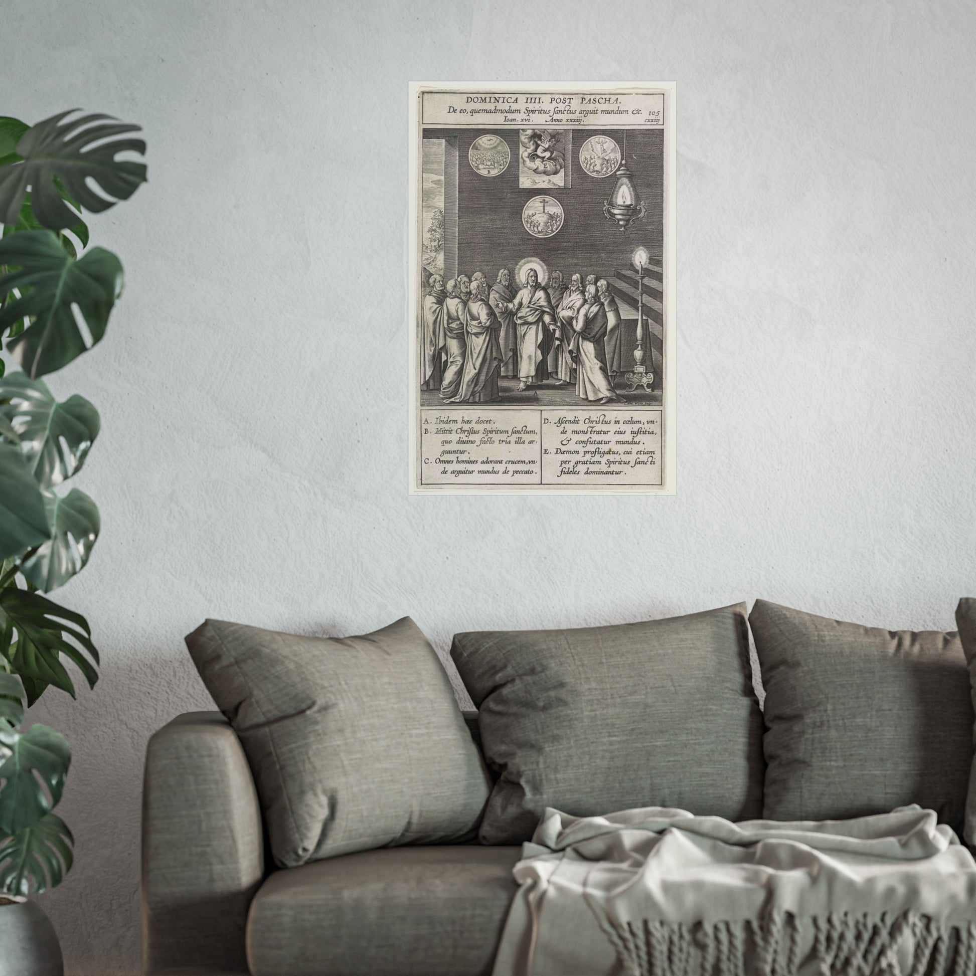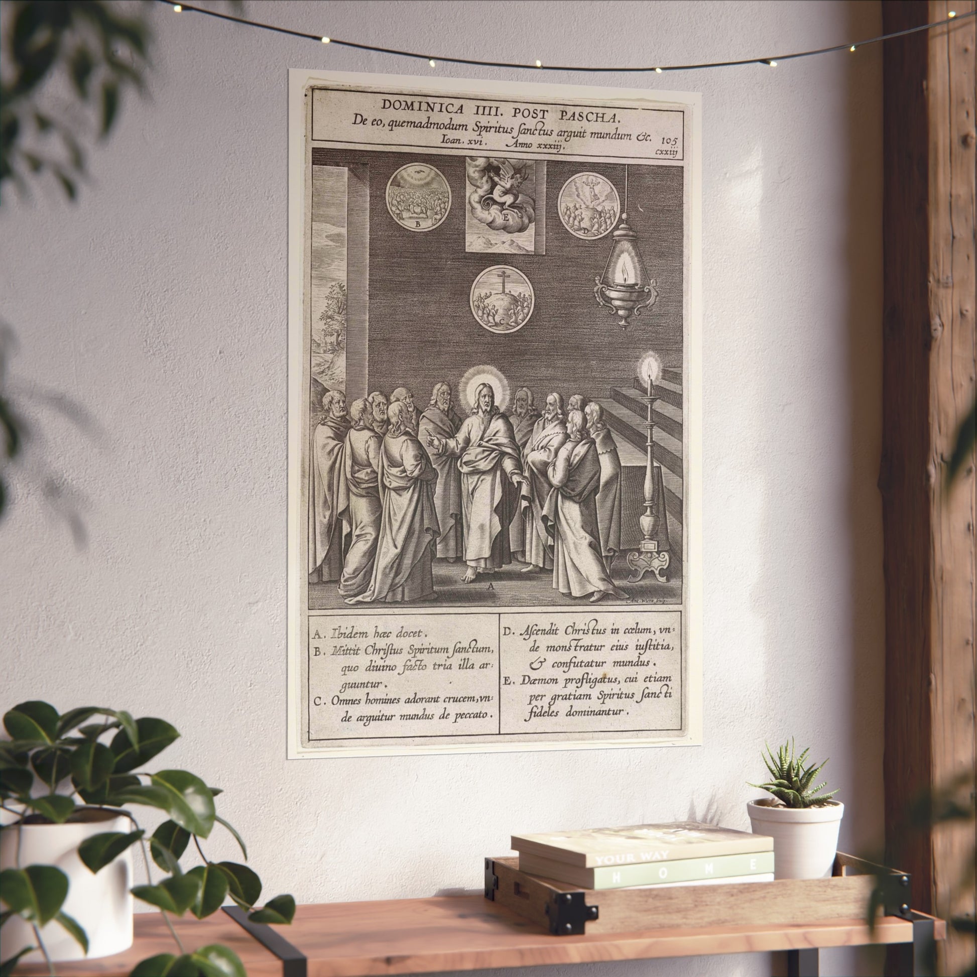This captivating work features Christ enlightening his disciples with the words, 'I have spoken to you in metaphors, but the time will come when I will no longer use metaphors, but will speak to you directly about the Father.' In the scene, various elements are marked with letters corresponding to a legend in the margin, adding an intriguing layer of symbolism.