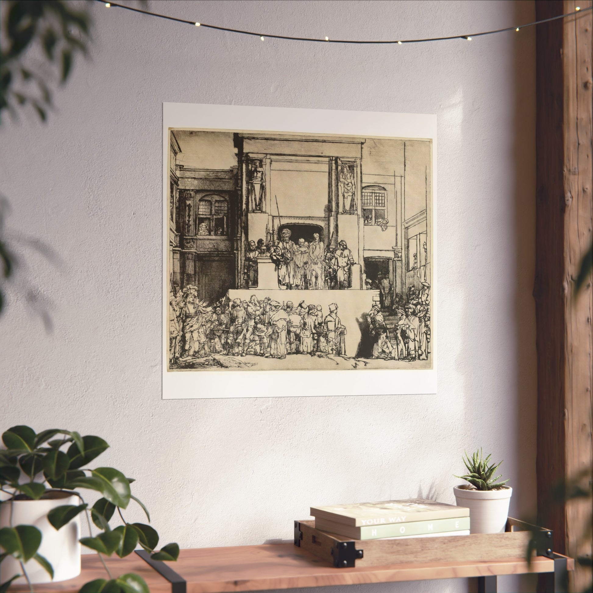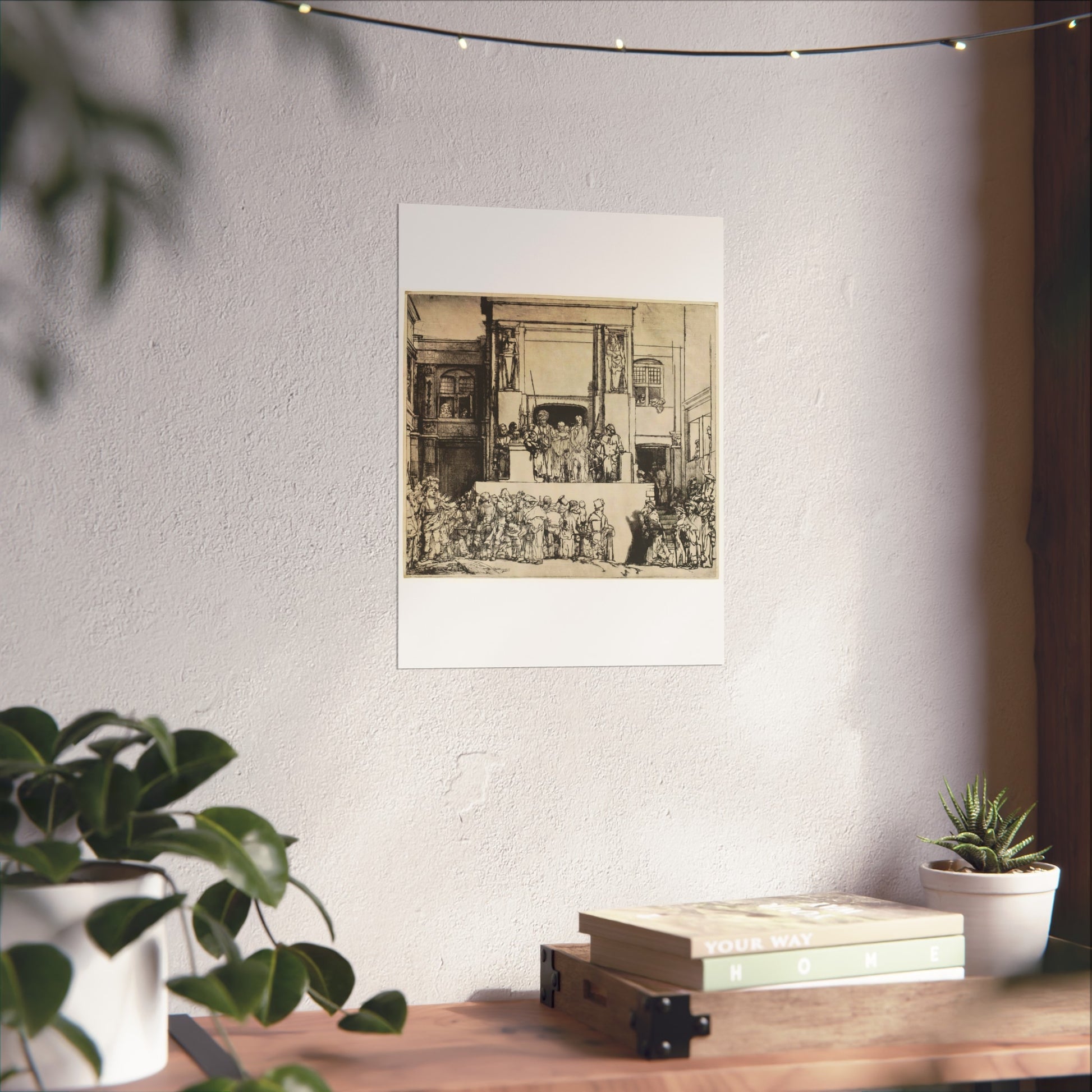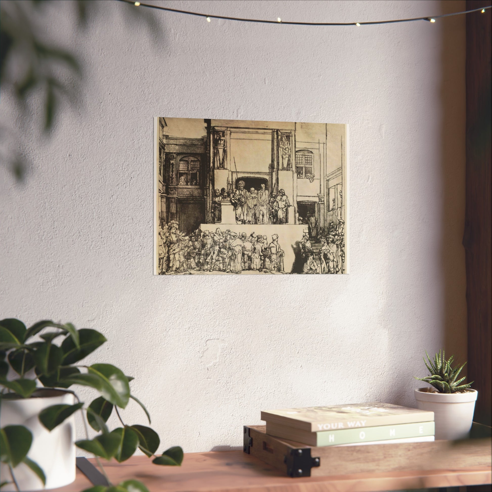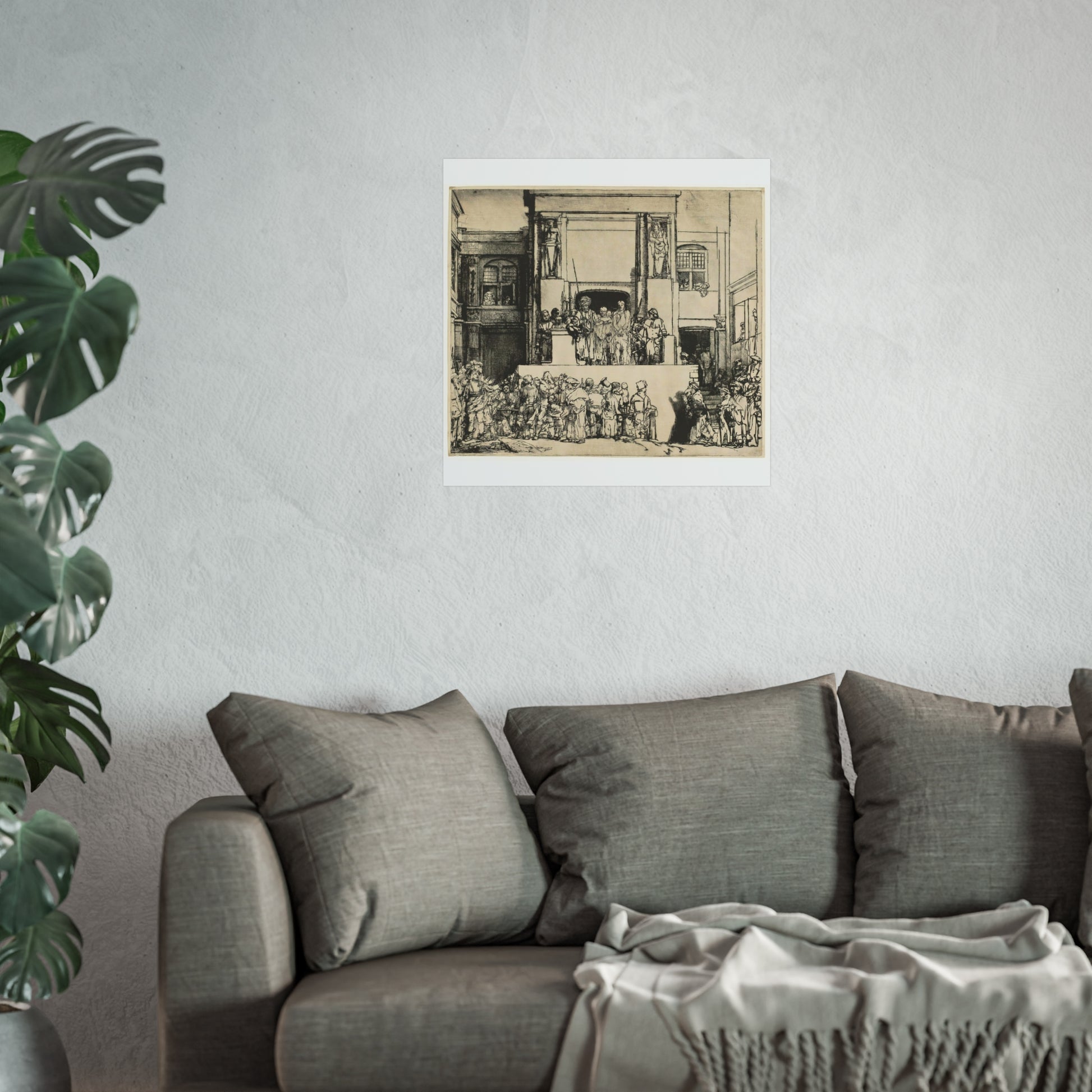Rembrandt van Rijn's 'Christ Presented to the People (Ecce Homo)' captures a poignant moment in Christian history with profound emotional depth. The painting depicts the scene where Jesus is shown to the crowd by Pontius Pilate, who declares 'Ecce Homo' or 'Behold the Man.' Rembrandt's masterful use of light and shadow highlights the tension and drama of the moment, drawing the viewer into the scene. The expressions on the faces of the characters convey a range of emotions from sorrow to indifference, making it a compelling study of human nature and divine suffering.
