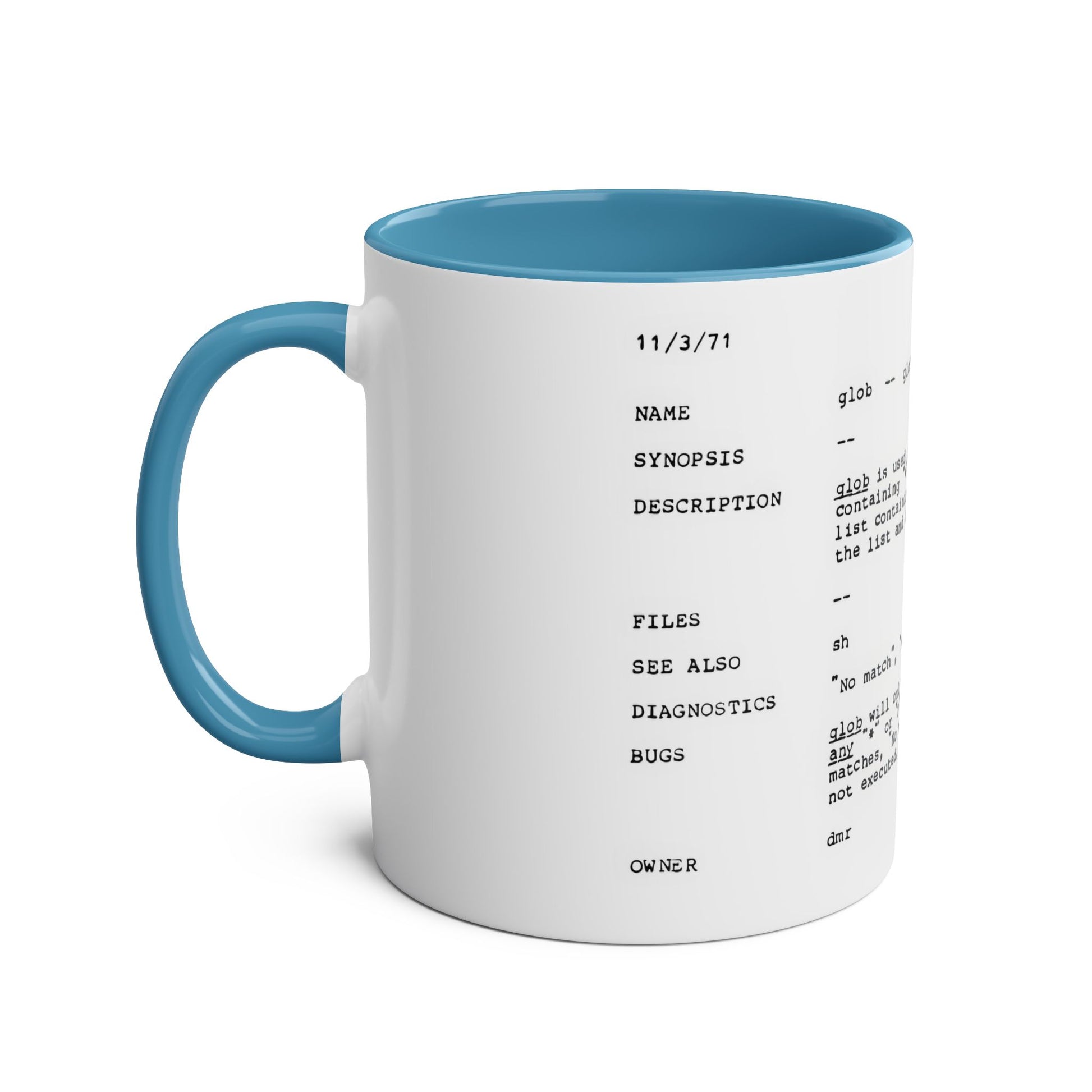 This two-tone coffee mug is perfect for geeks who love Unix. Featuring a favorite feature from the first Unix manual written in 1971, this mug exudes a retro tech vibe. It is suitable for dishwasher and microwave use, making it convenient for daily use. With vibrant colors and a c-shaped easy-grip handle, this 11oz ceramic mug is a must-have for tech enthusiasts and computer geeks. Ideal for birthdays, holidays, and everyday use.
