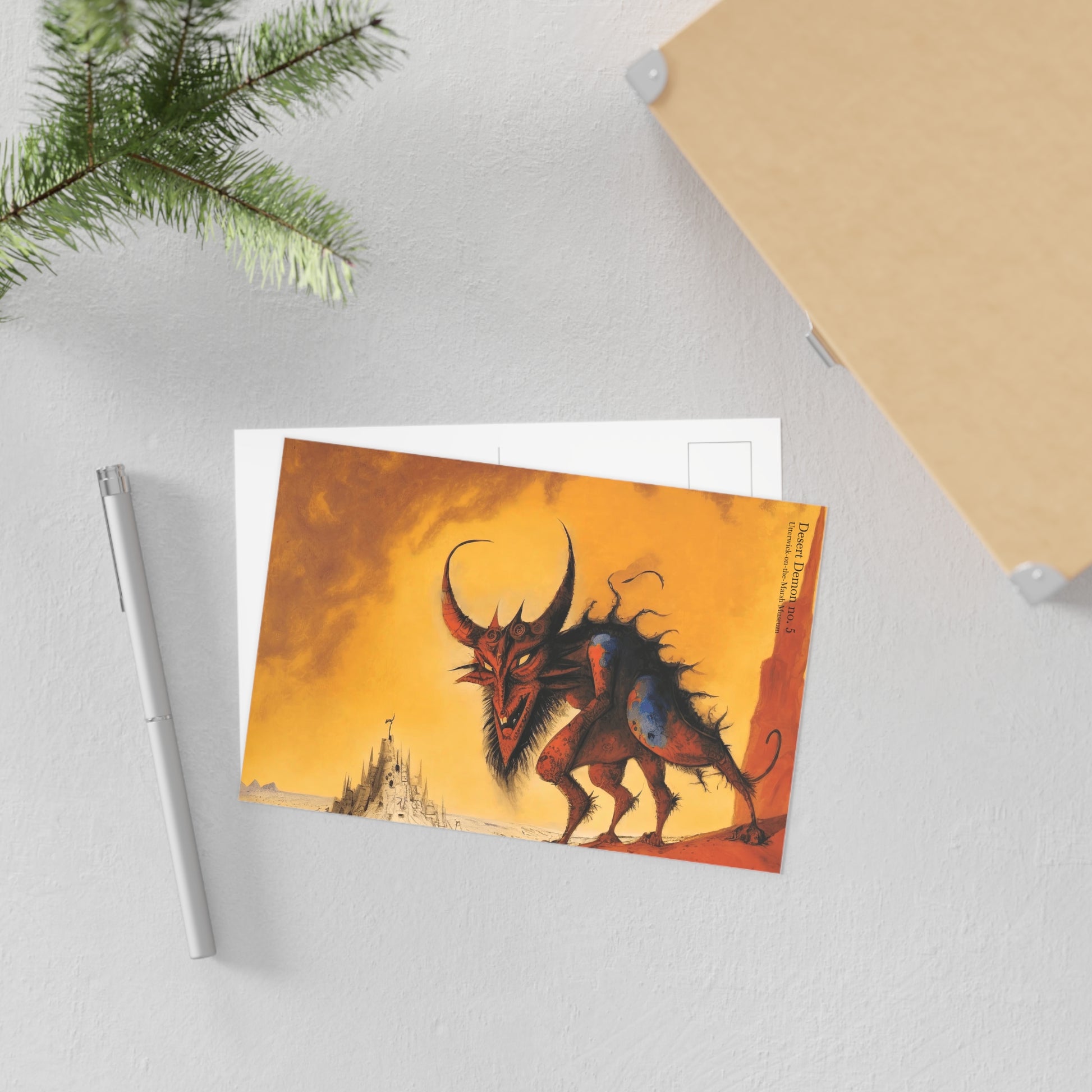 Beneath the artistic veneer of 'Desert Demon no. 5: The Fire Ghoul', The Curator weaves a tale that captivates horror fans and fantasy art fans. The painting, adorned with send a demon to a friend and unusual postcards, evoking a 'demonic desert' atmosphere, is a testament to the timeless allure of the unexplored.