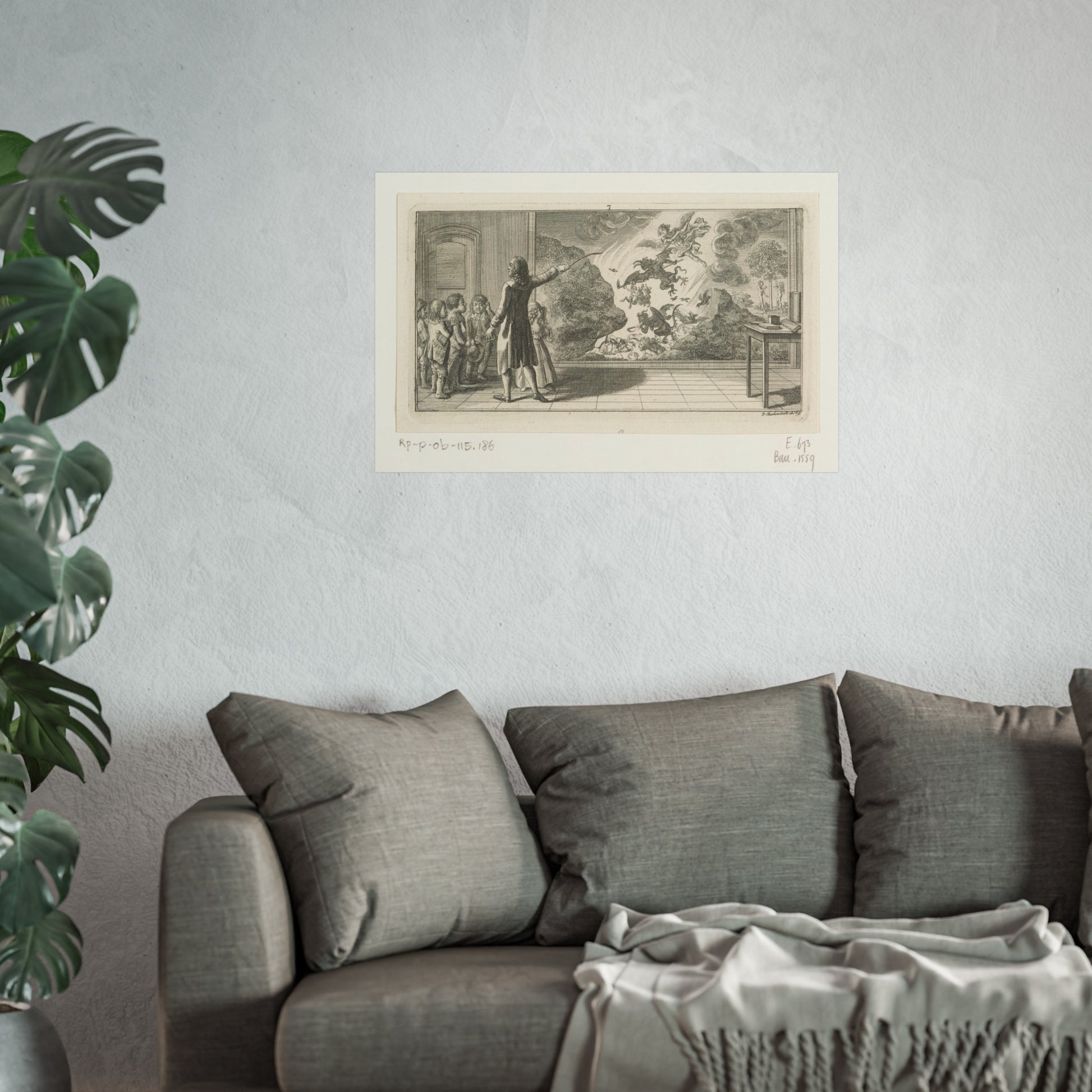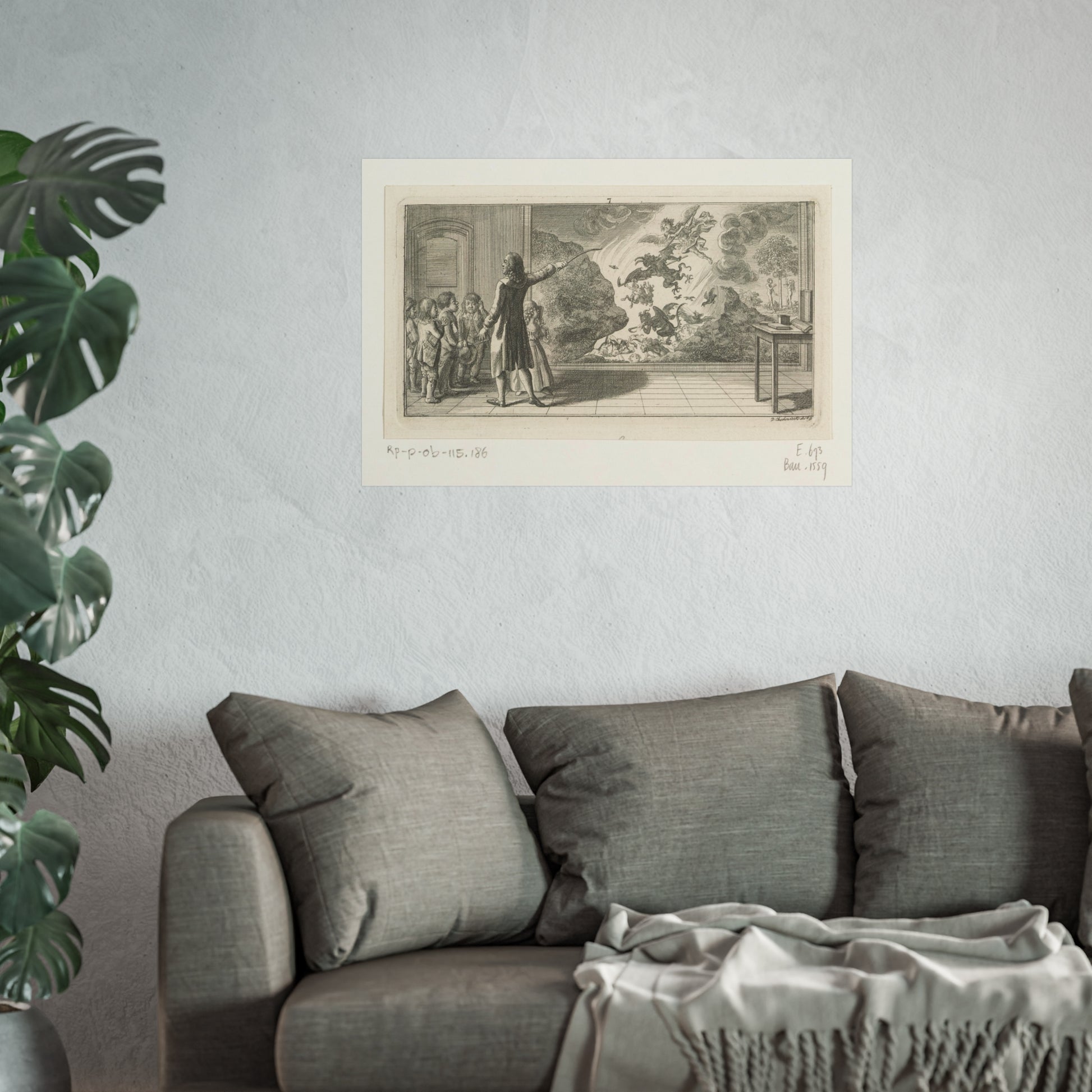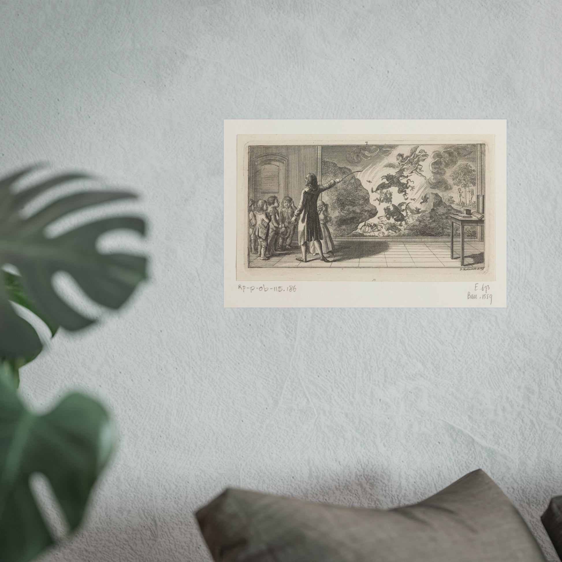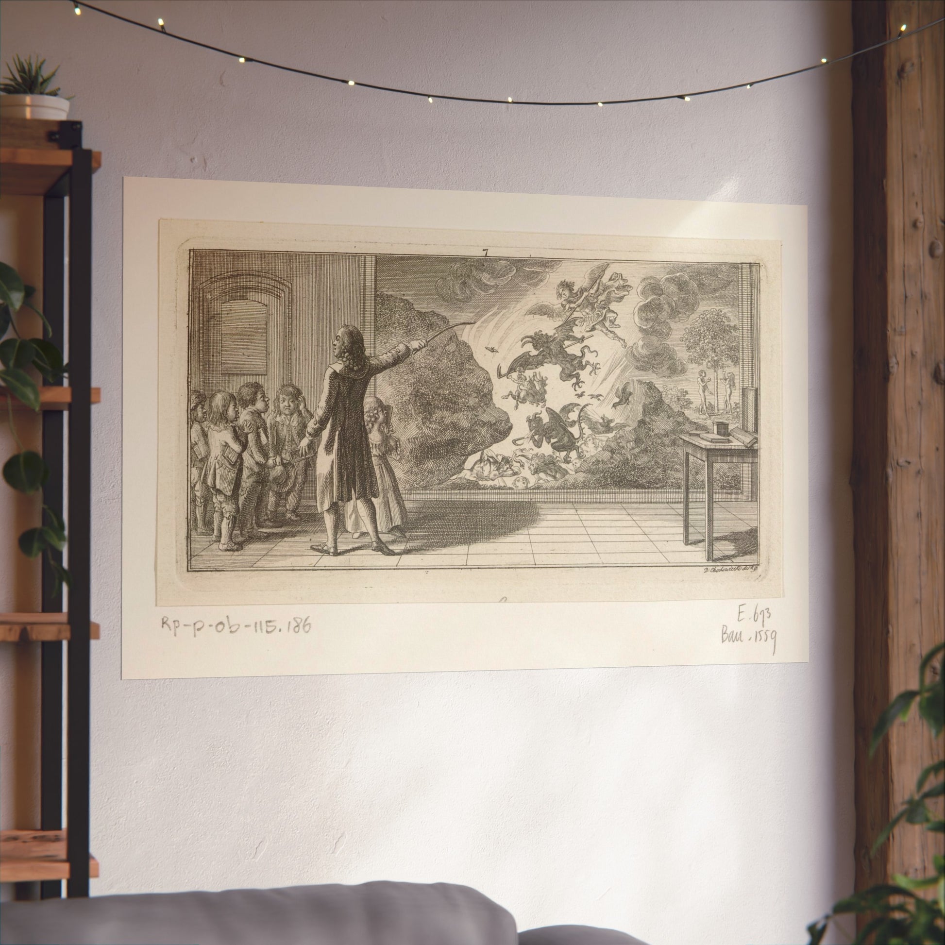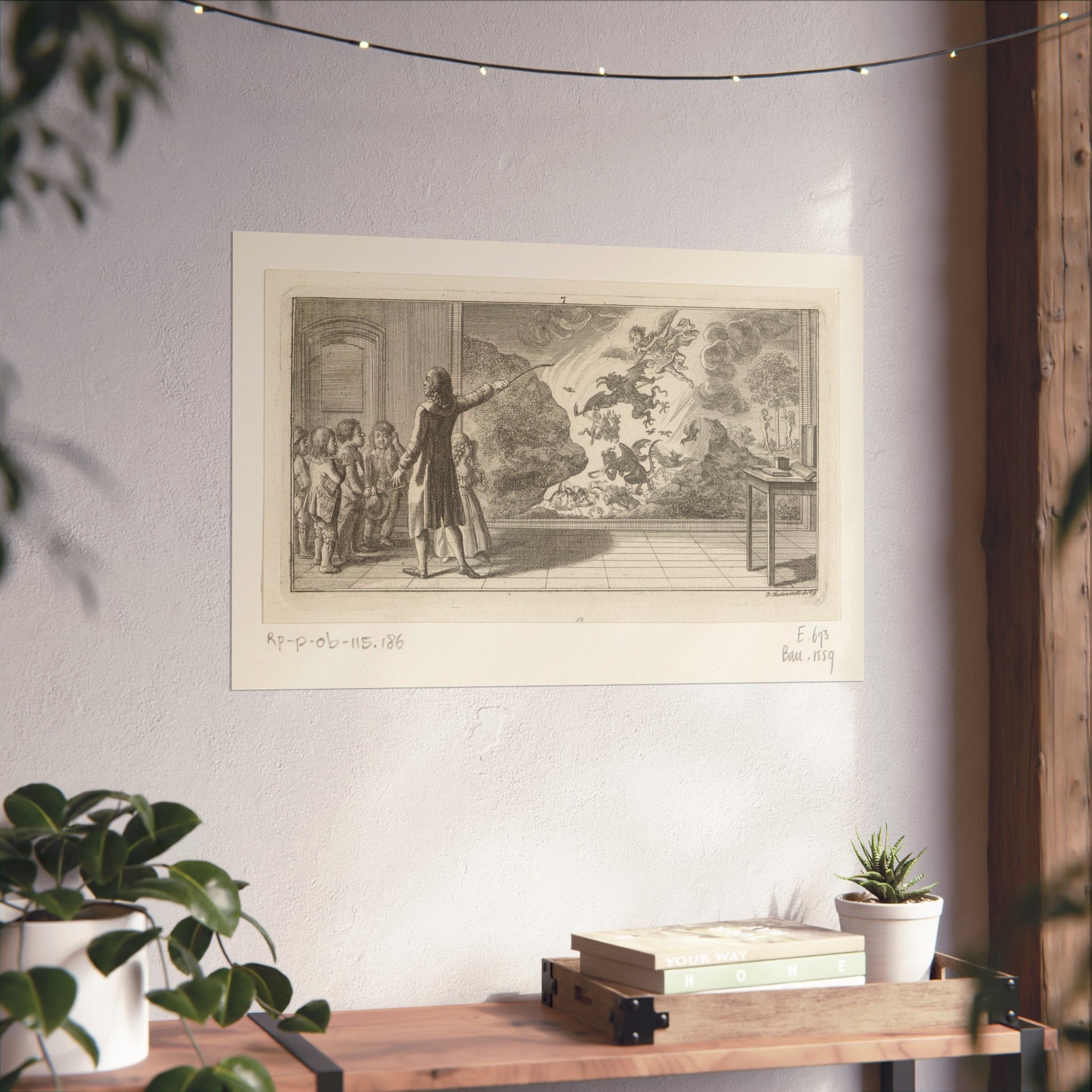 This intriguing piece by Daniel Nikolaus Chodowiecki portrays a timeless scene of a schoolmaster imparting knowledge. The artist's keen eye for detail and mastery of color and composition brings this intimate moment to life, inviting viewers to delve into the rich narrative woven into the canvas.
