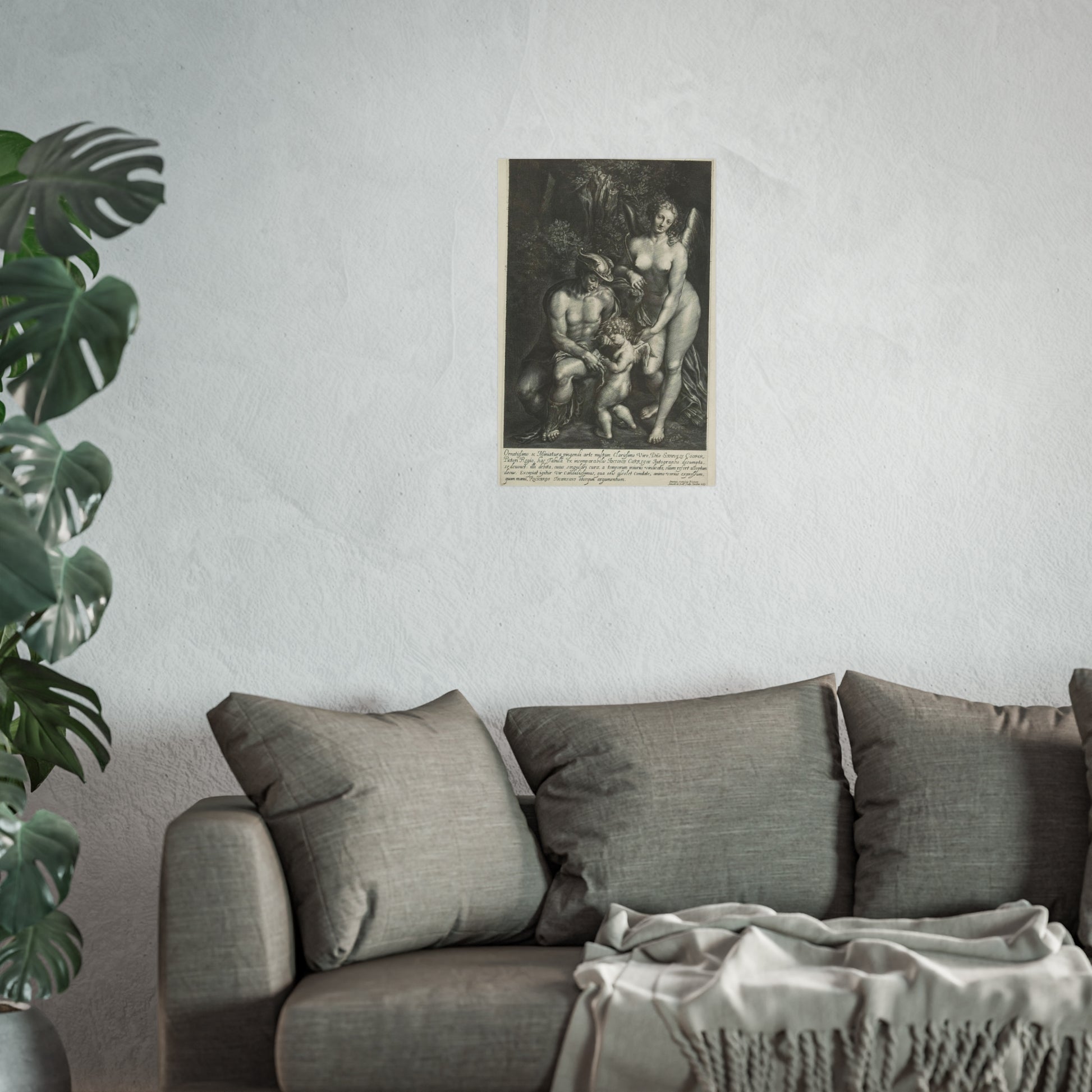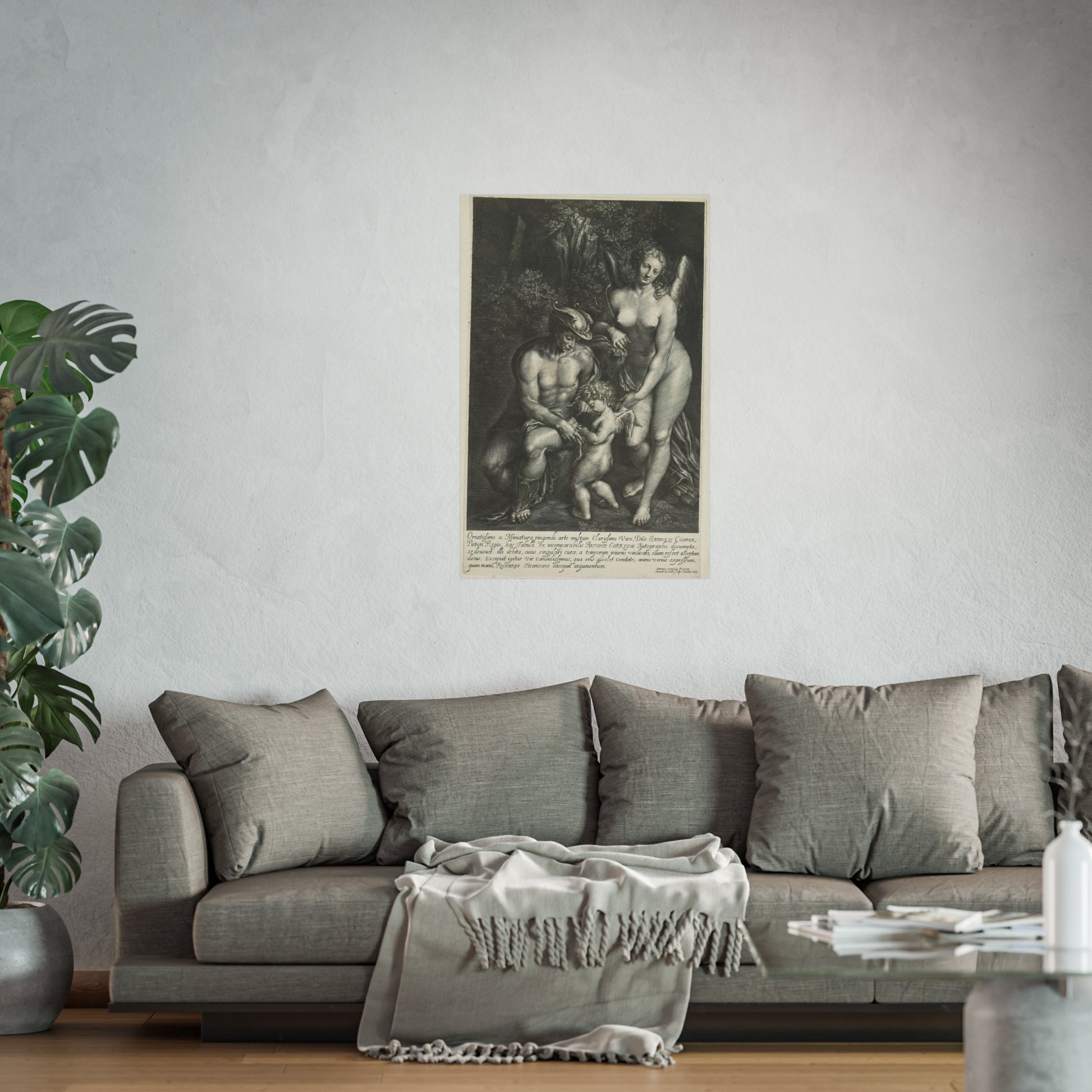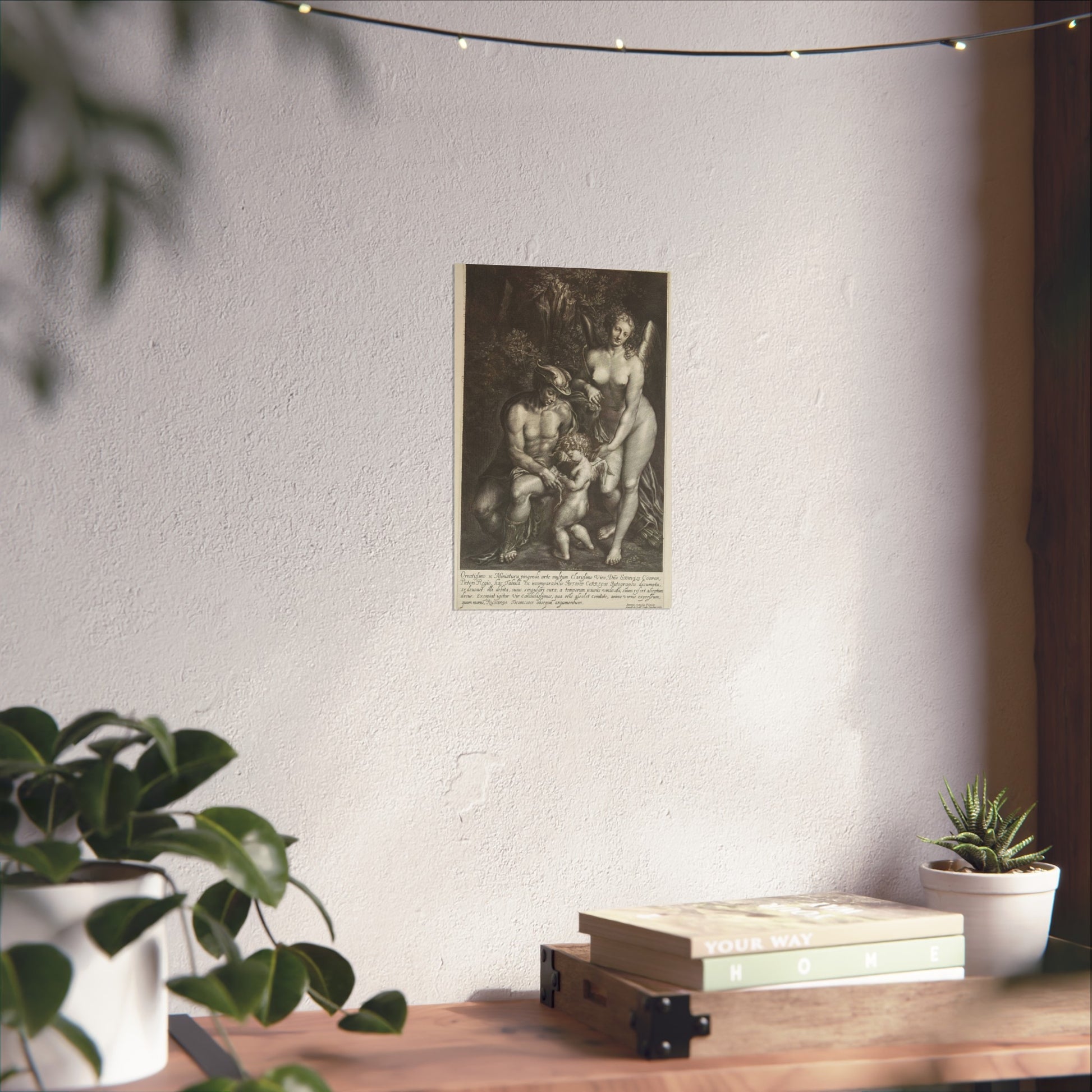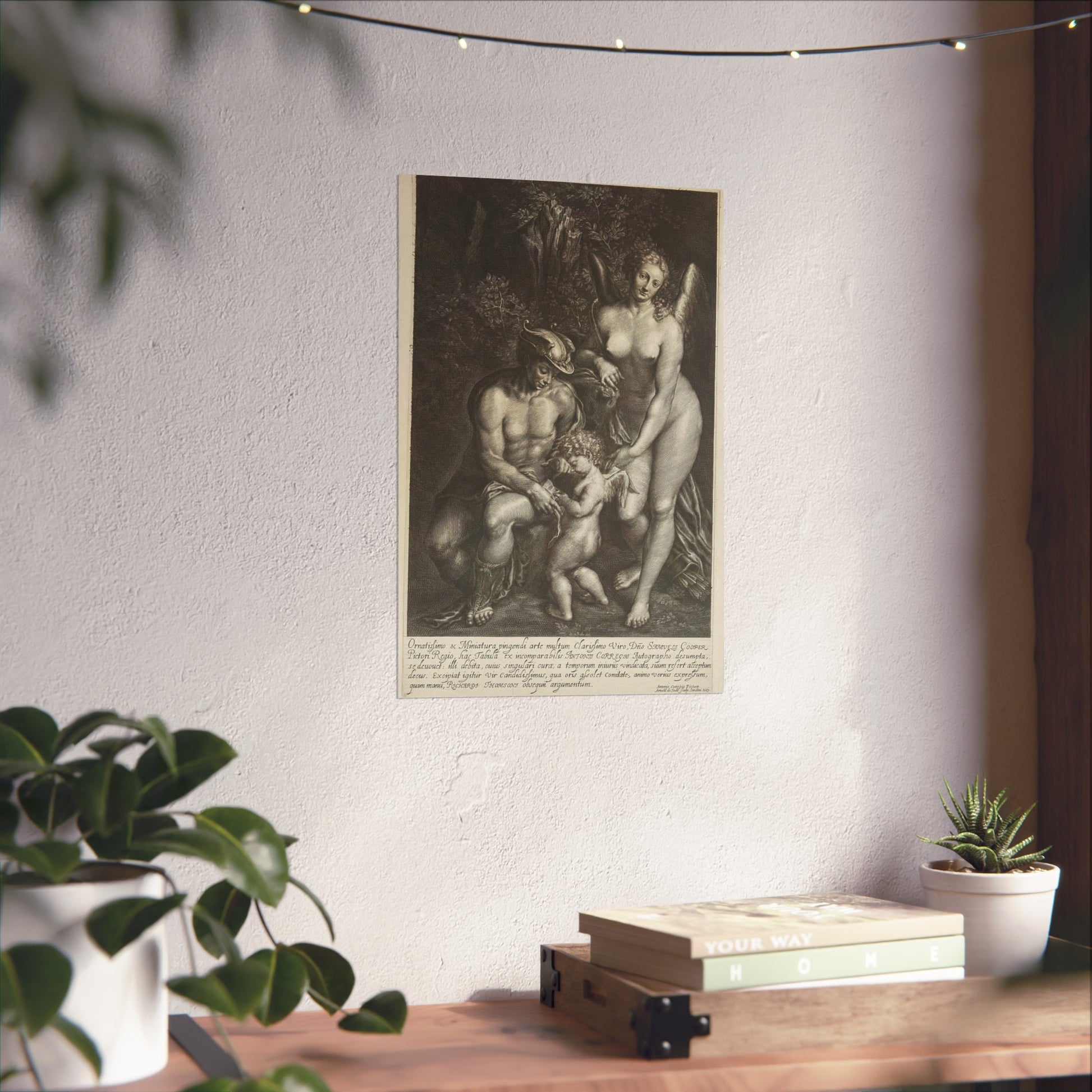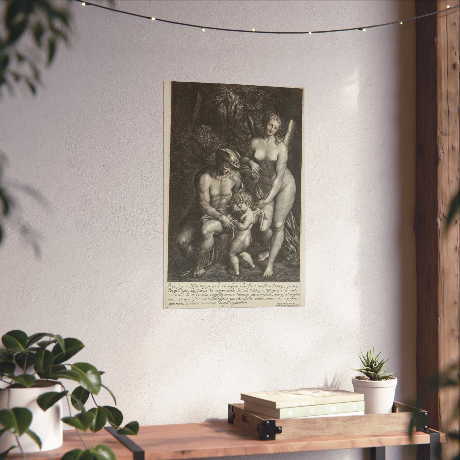 In this captivating scene, Cupid, the god of love, stands between Mercury and Venus, engrossed in reading a piece of paper. The divine interaction creates an atmosphere of intrigue and fascination.