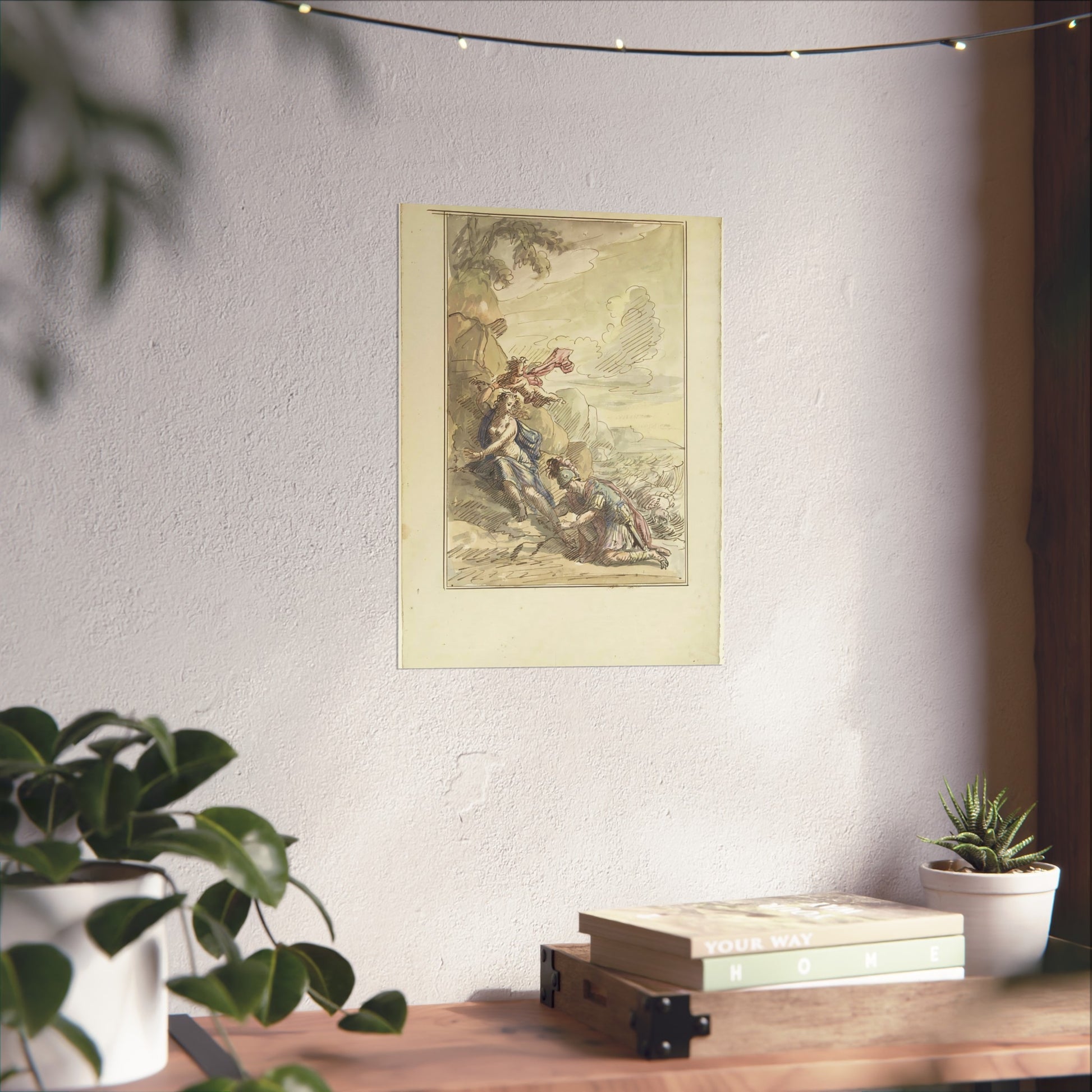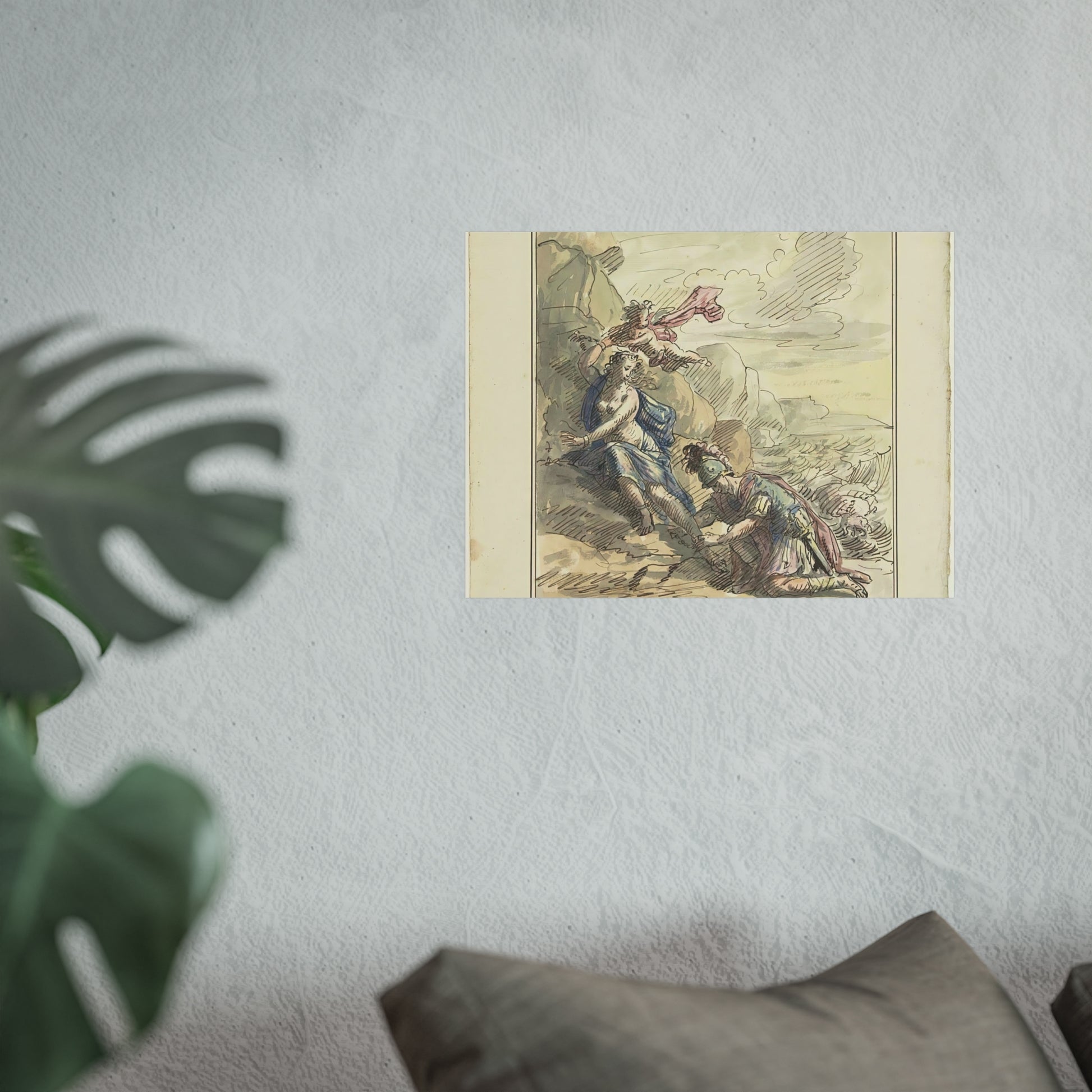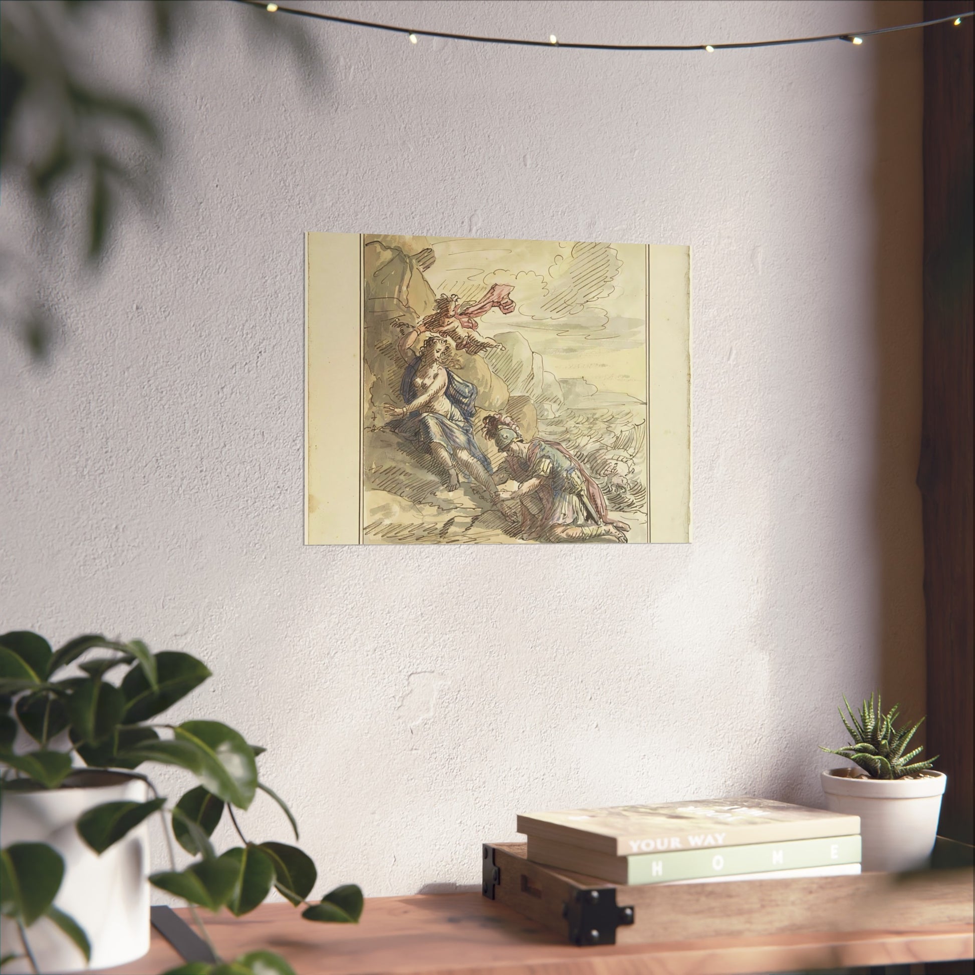 This captivating painting, titled 'Perseus Rescues Andromeda,' is a masterful work by Elias van Nijmegen. It vividly brings to life the mythological tale of Perseus, the heroic figure who saves Andromeda from a fearsome sea monster. The artist's use of bold colors and dynamic composition captures the drama and intensity of the moment, making it a truly mesmerizing piece. Van Nijmegen's attention to detail and ability to convey emotion through his brushstrokes make this painting a standout in any collection.