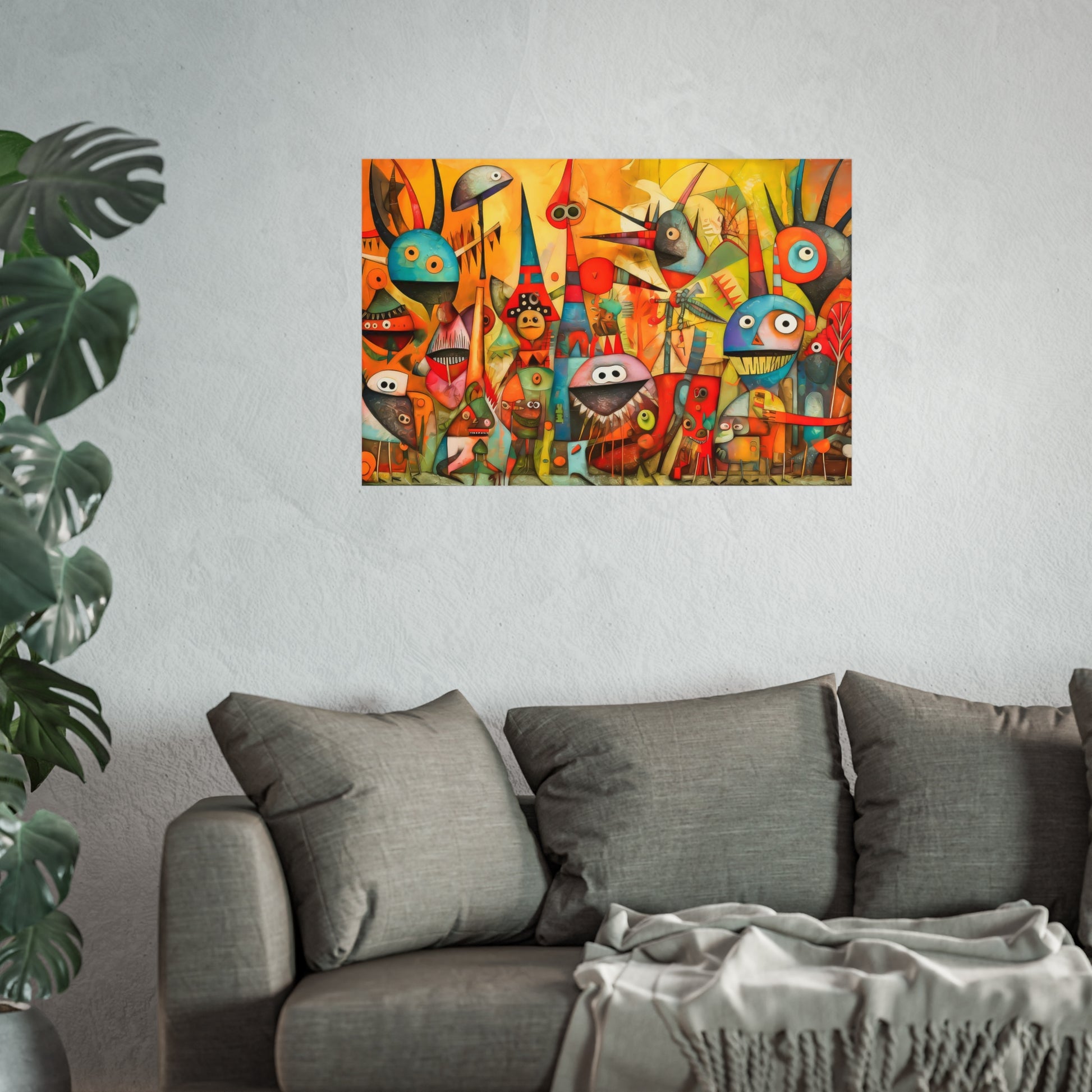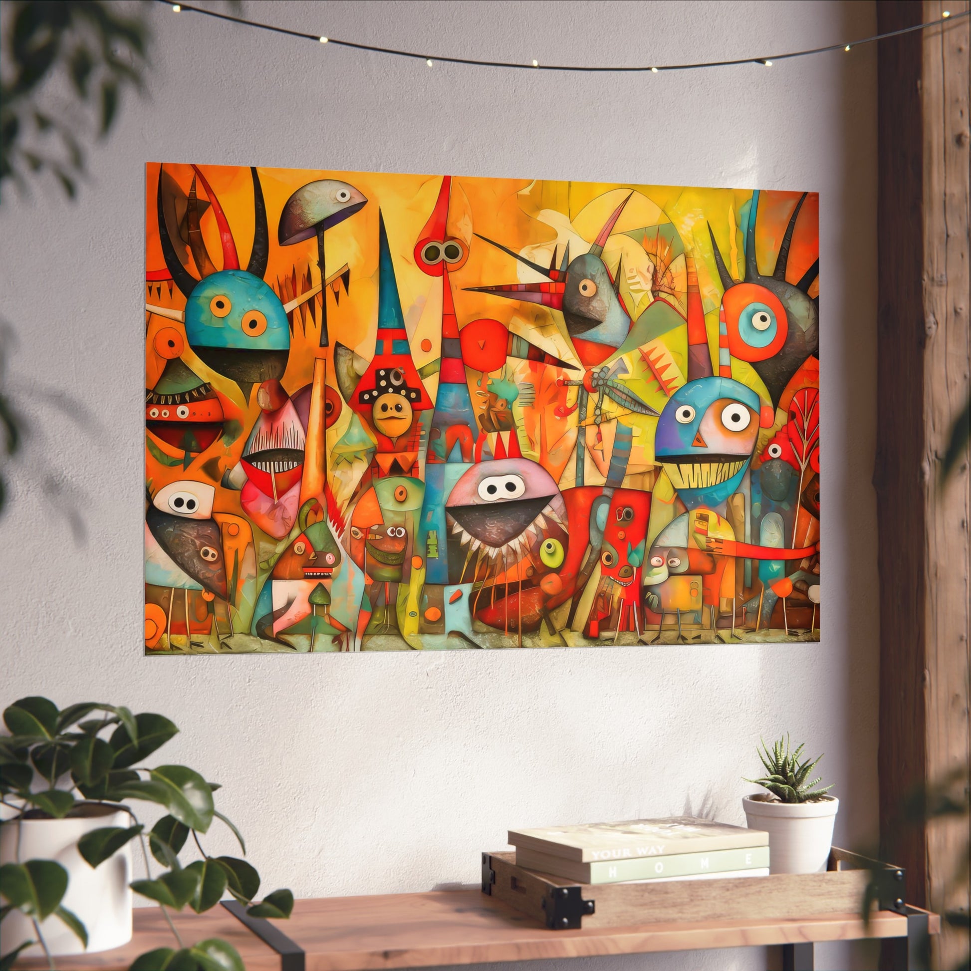 In the captivating depths of 'Pleased to see me', Rosario Finnsdóttir weaves a tale that captivates surreal art lovers. The painting, adorned with toothy grins and wonky eyed, evoking a 'a friendly atmosphere in the cave' atmosphere, is a testament to the timeless allure of the unexplored.