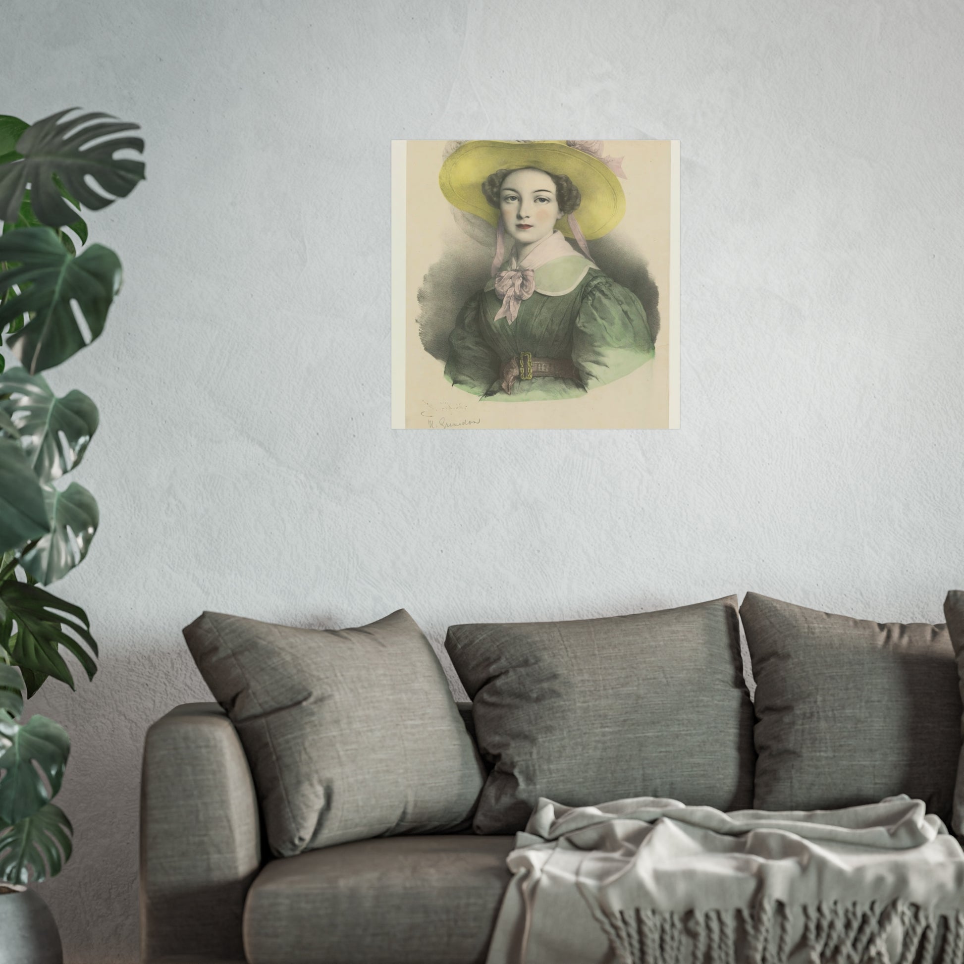 Related tags: henri grévedon, portrait, young woman, feathered hat, elegance, 19th century