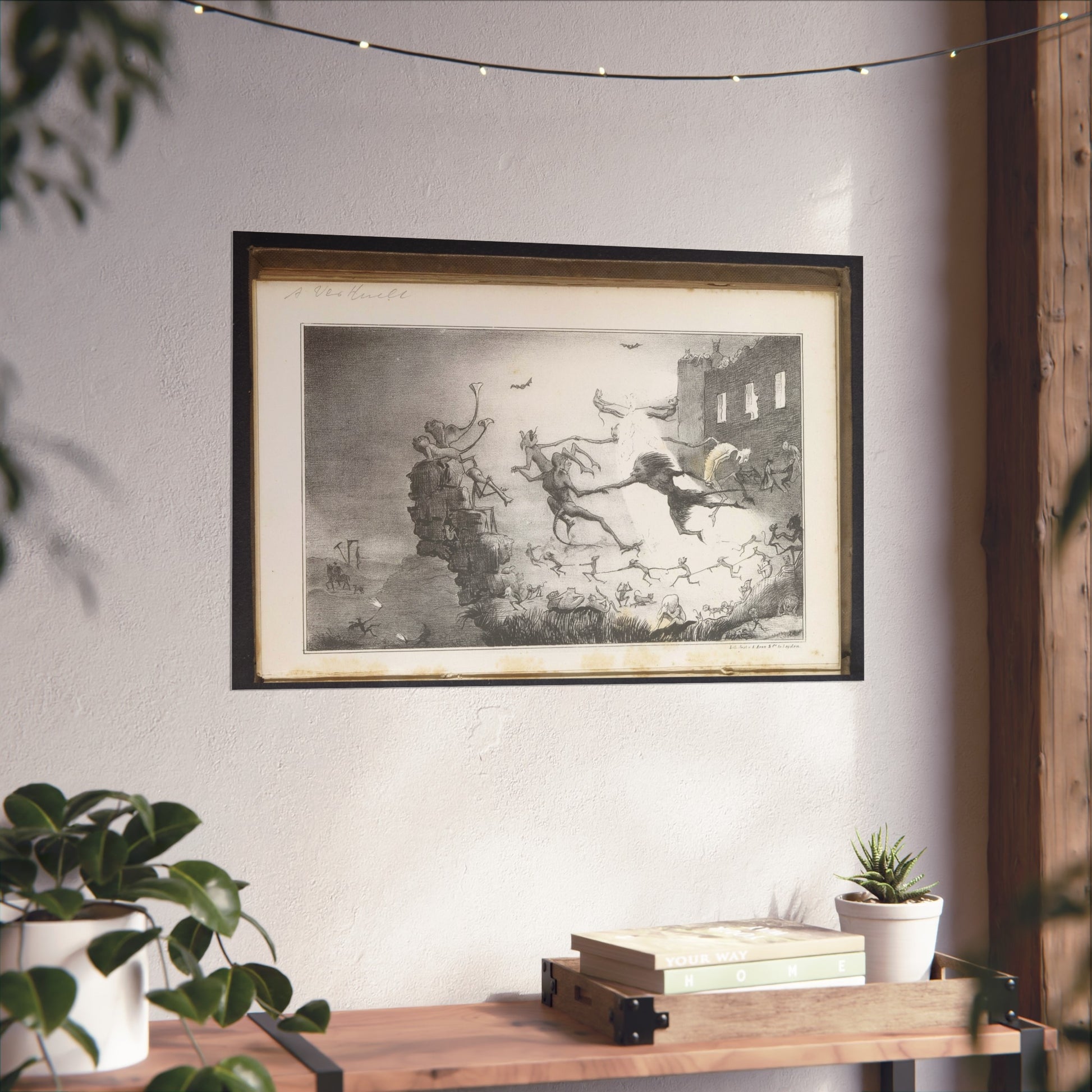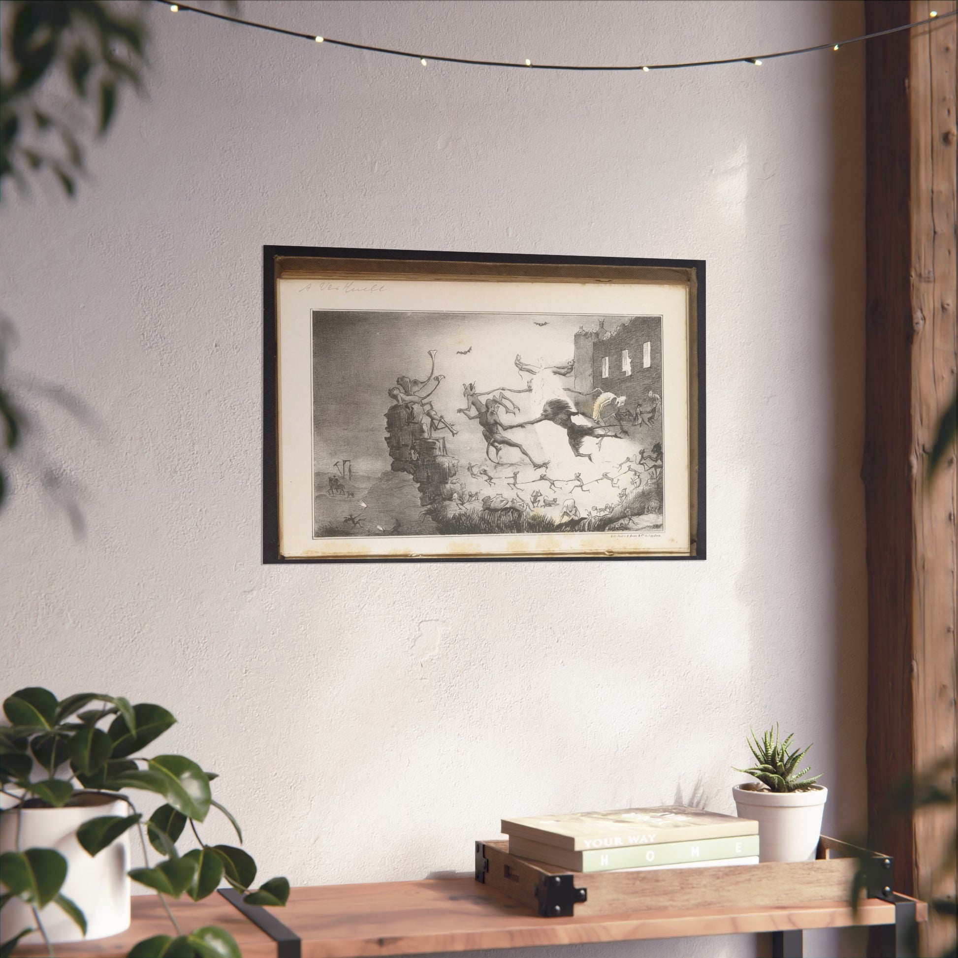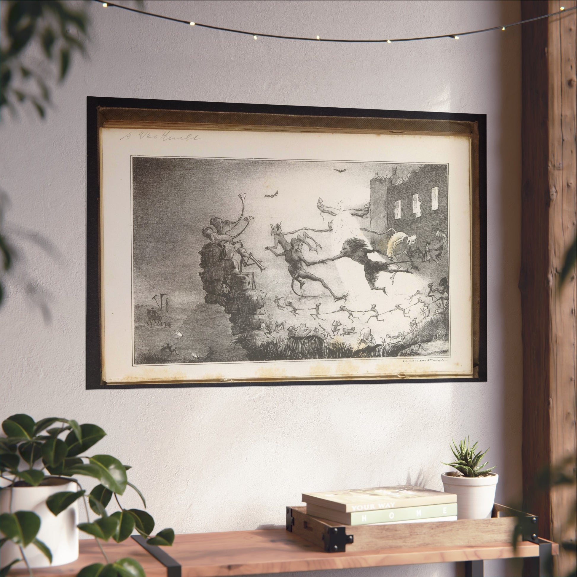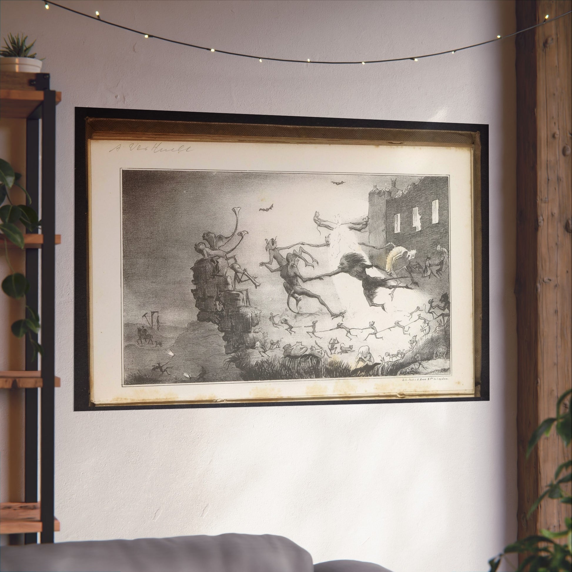 Depicted in this captivating illustration are devils dancing upon a ruin. This piece serves as a visual representation of the poem 'To a Passerby' by Victor Hugo. It was featured as a satirical cartoon in the student almanac of Leiden University in the year 1843.