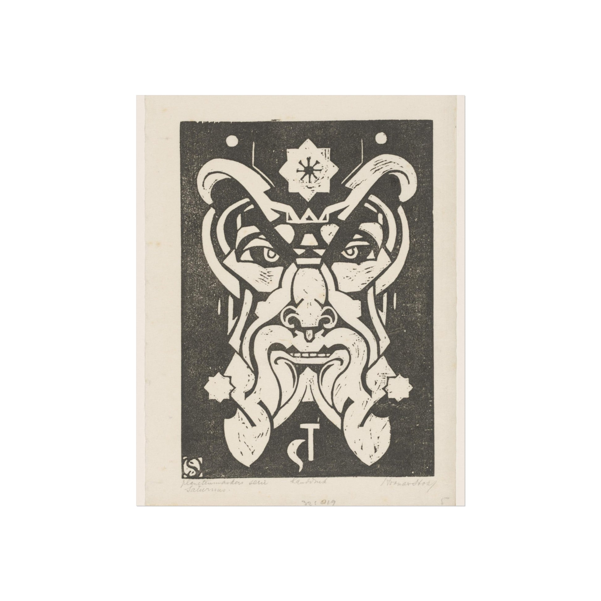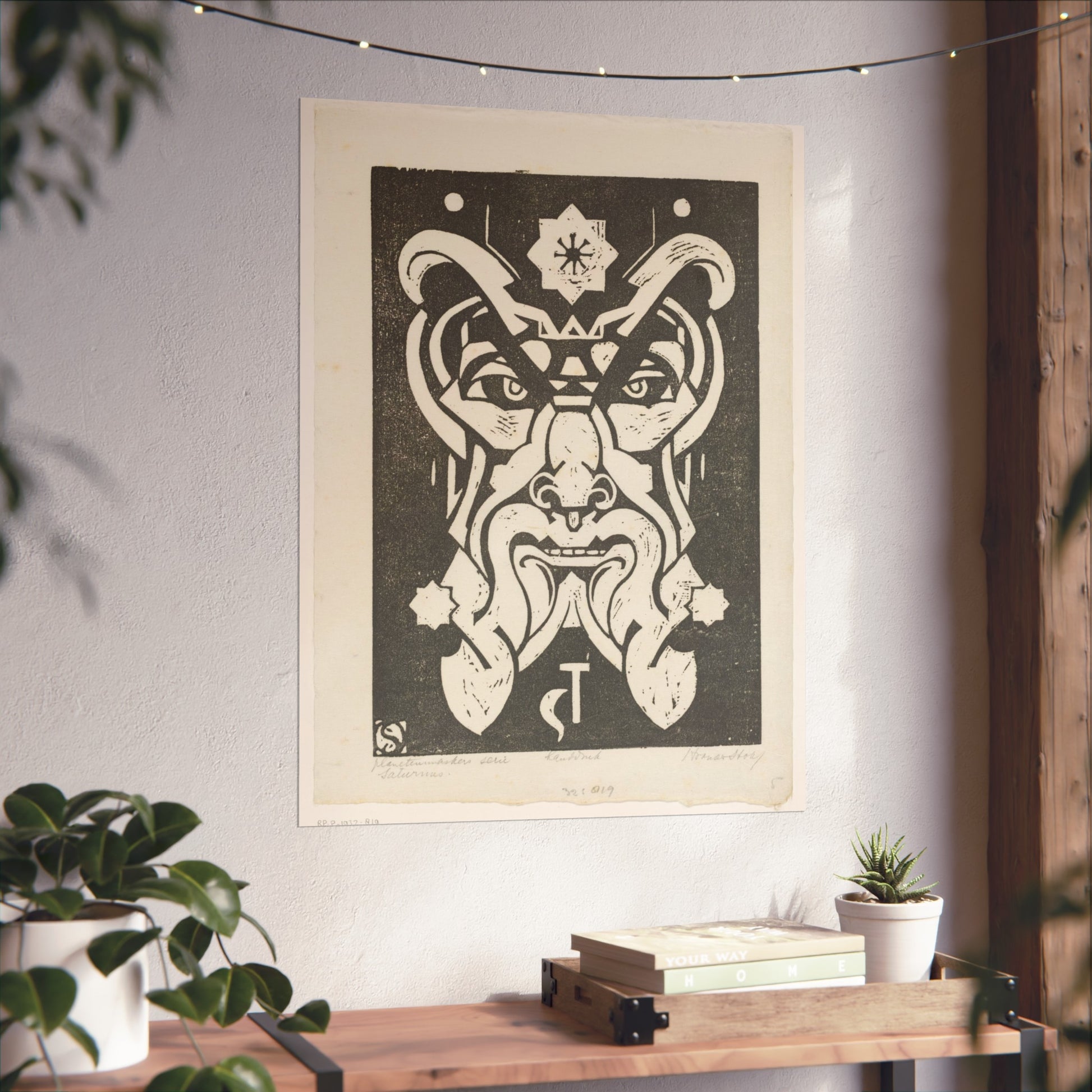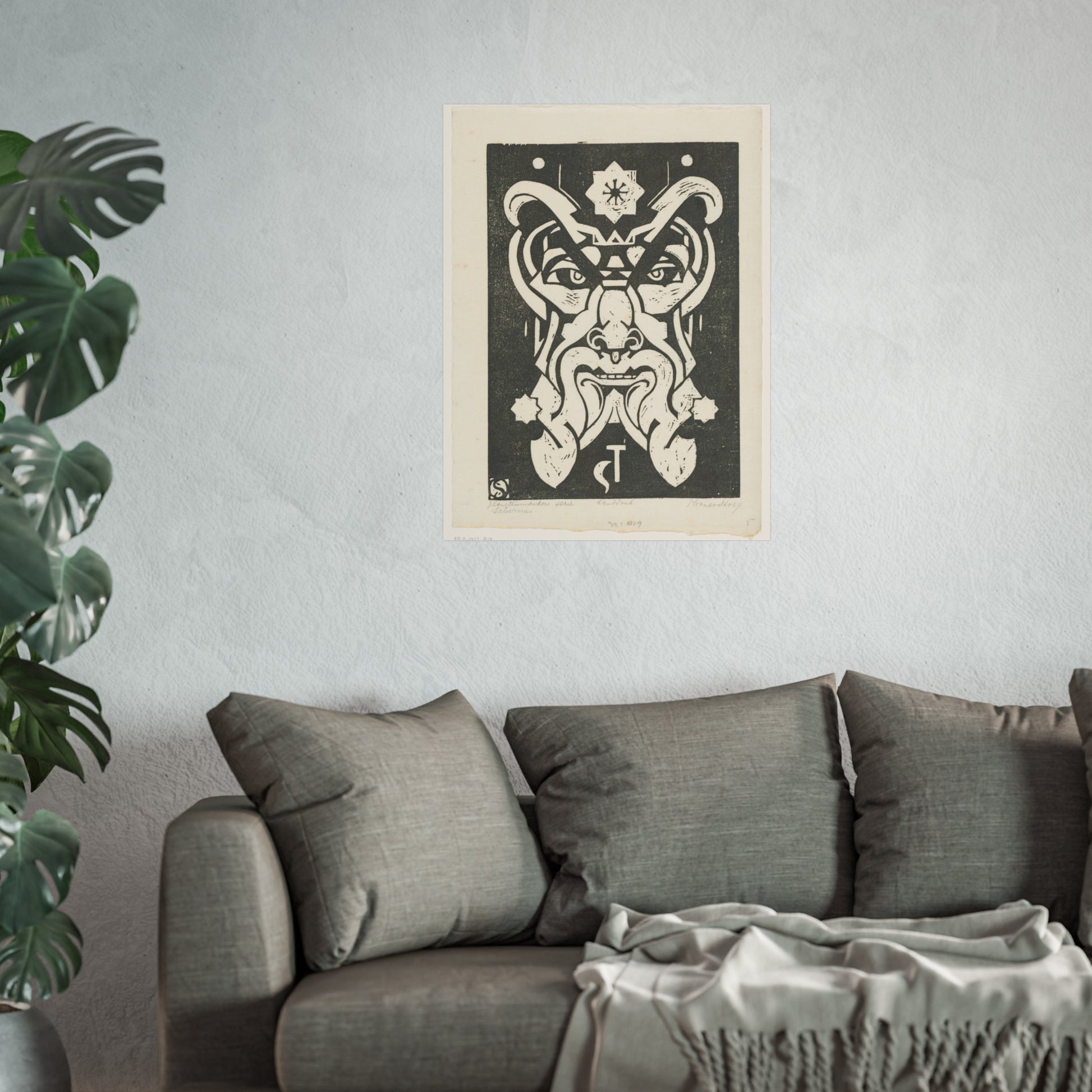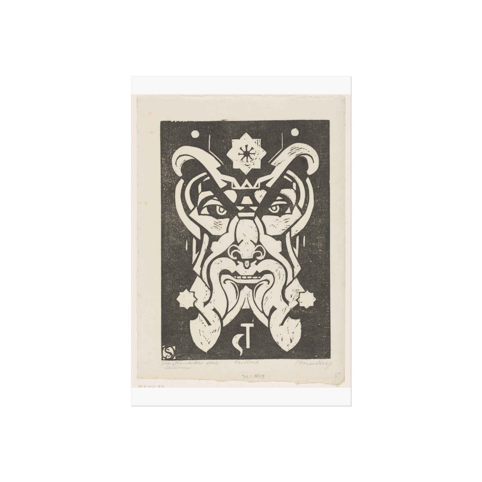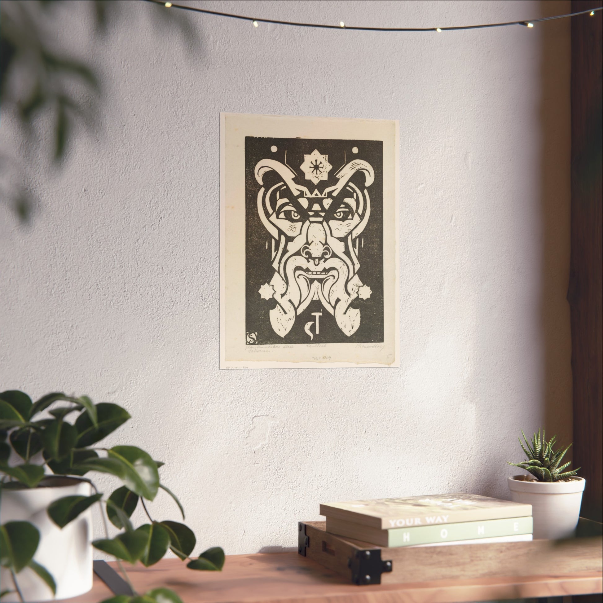 Behold a captivating mask, adorned with a beard, which serves as a symbol of strength and wisdom. At the bottom, you will find the emblem of Saturn, the Roman god of wealth and time, adding an air of mystery and intrigue.