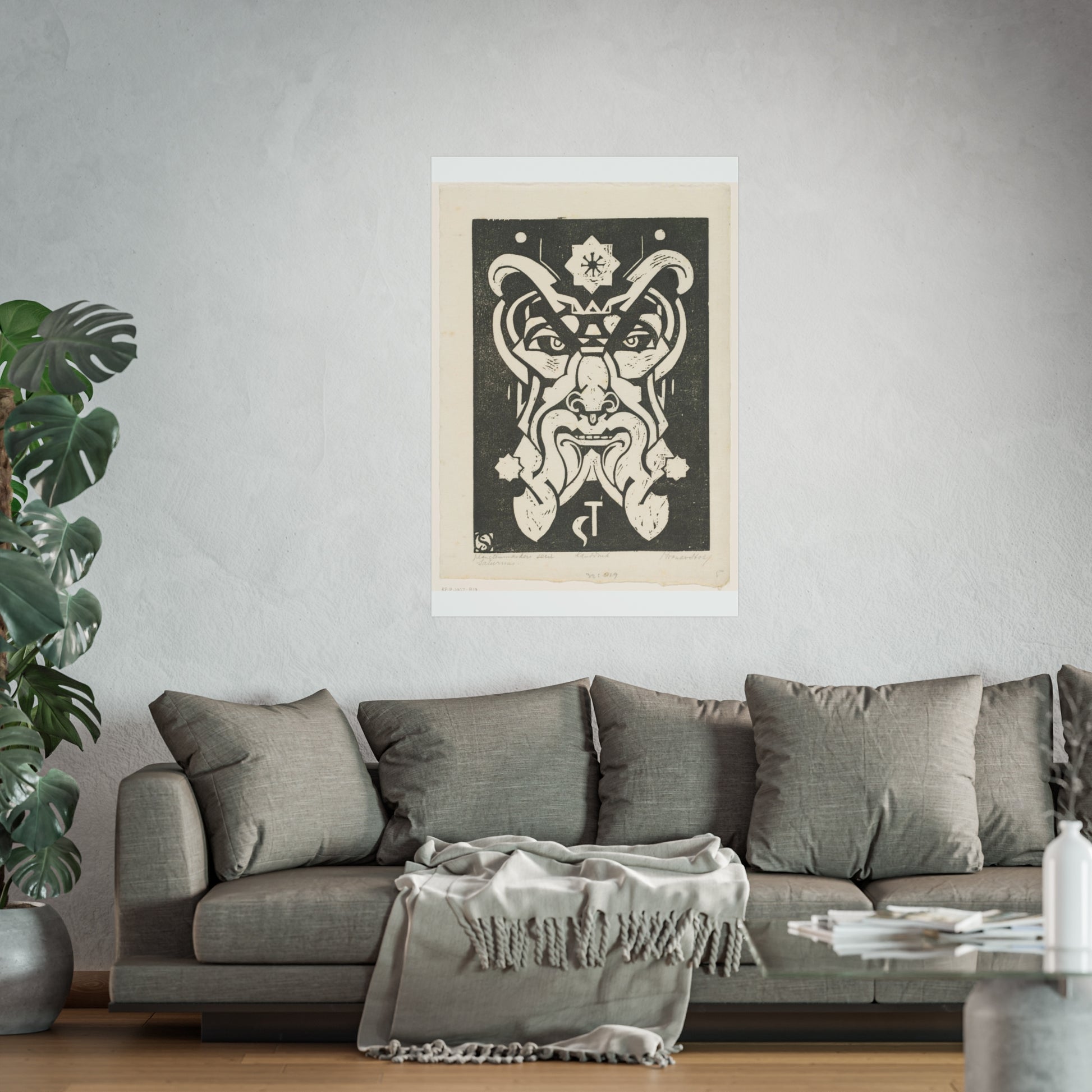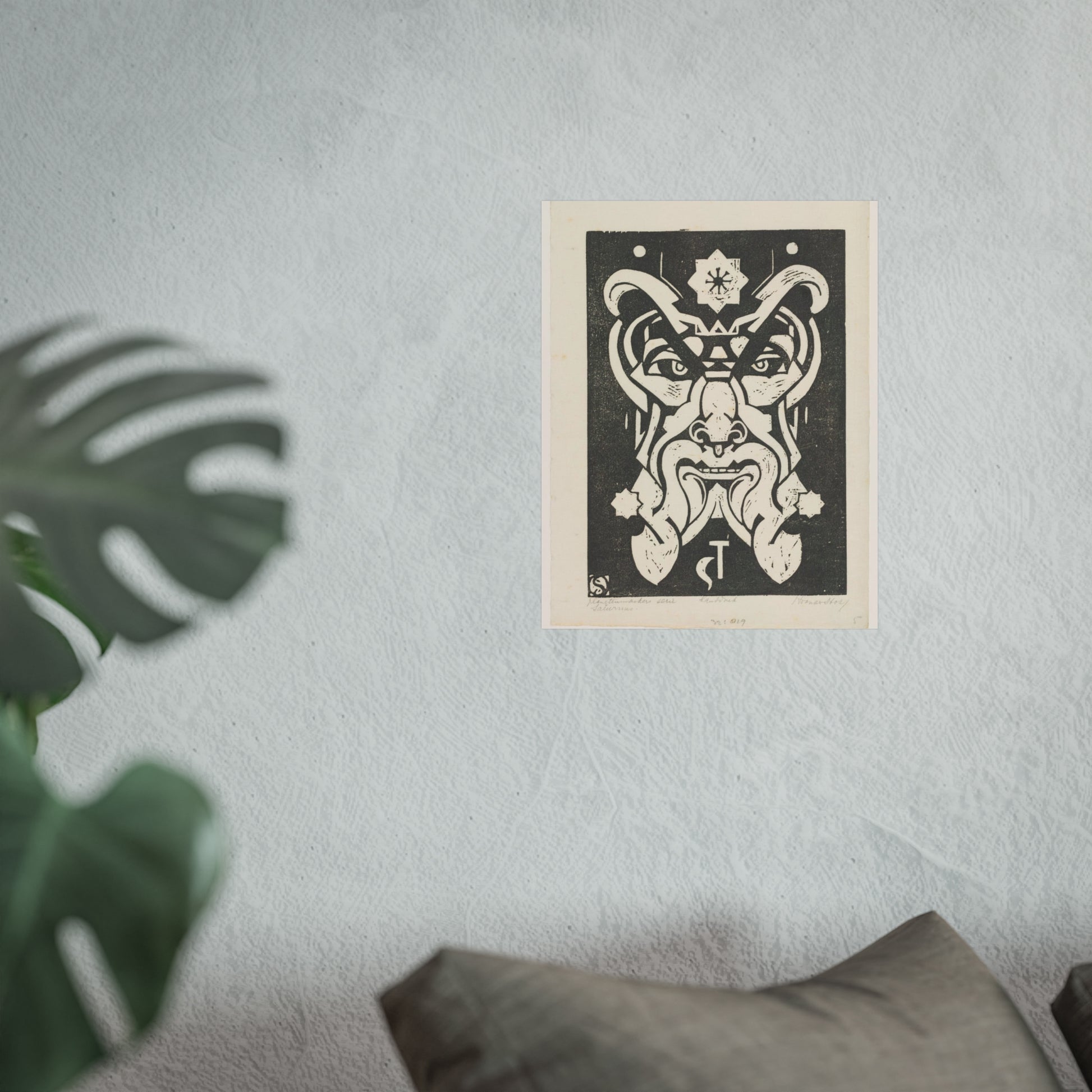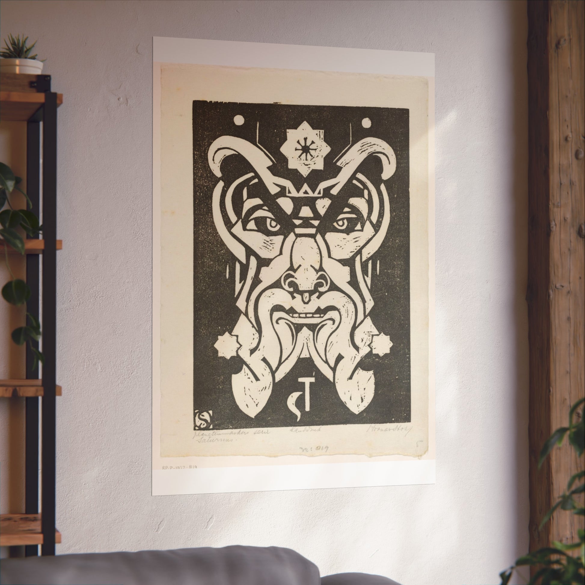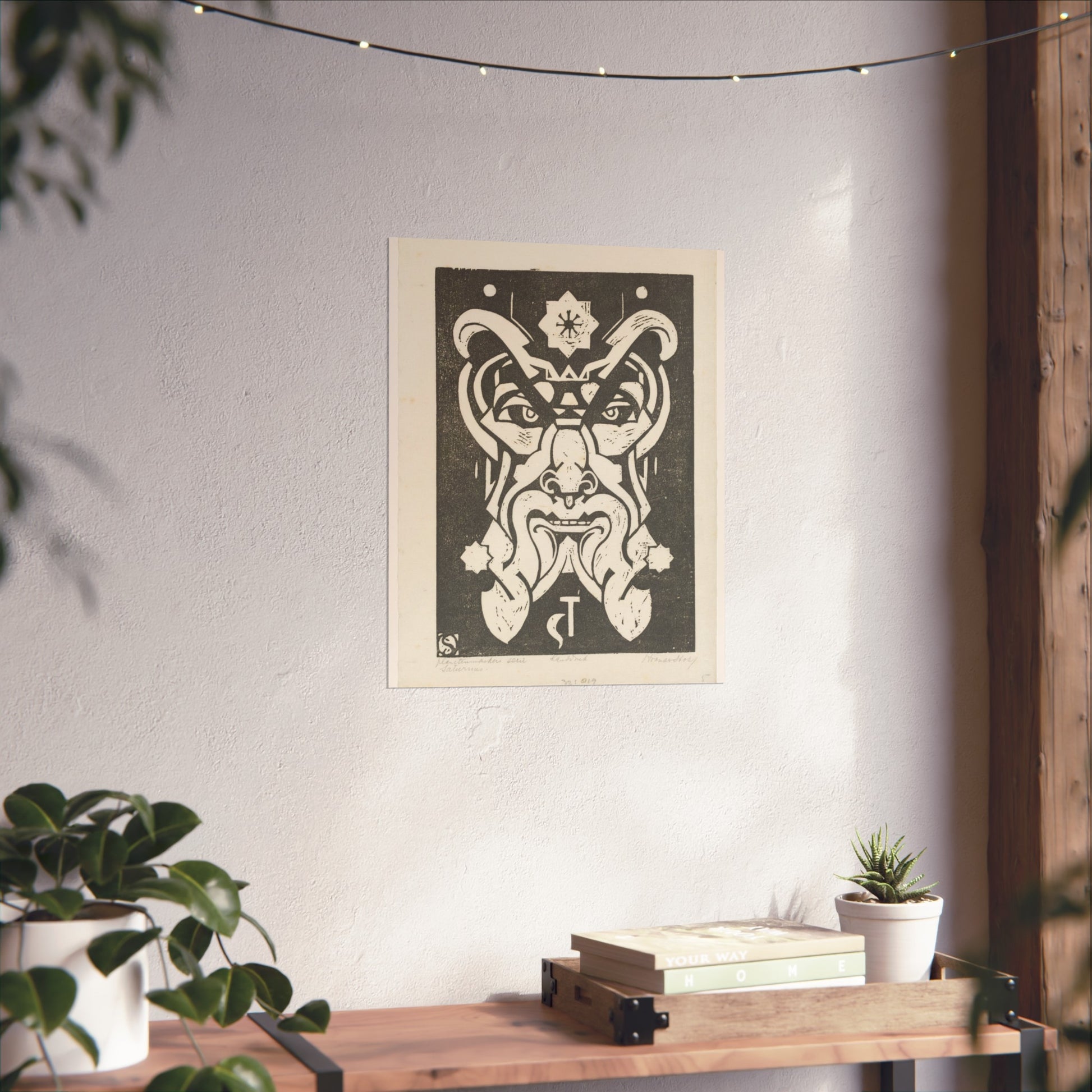 Behold a captivating mask, adorned with a beard, which serves as a symbol of strength and wisdom. At the bottom, you will find the emblem of Saturn, the Roman god of wealth and time, adding an air of mystery and intrigue.