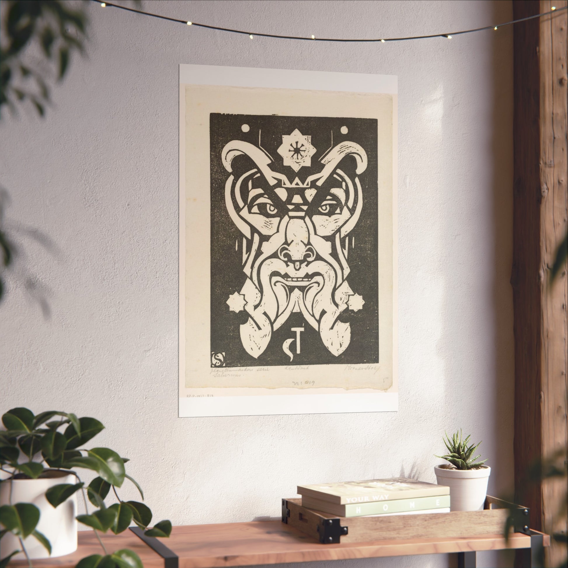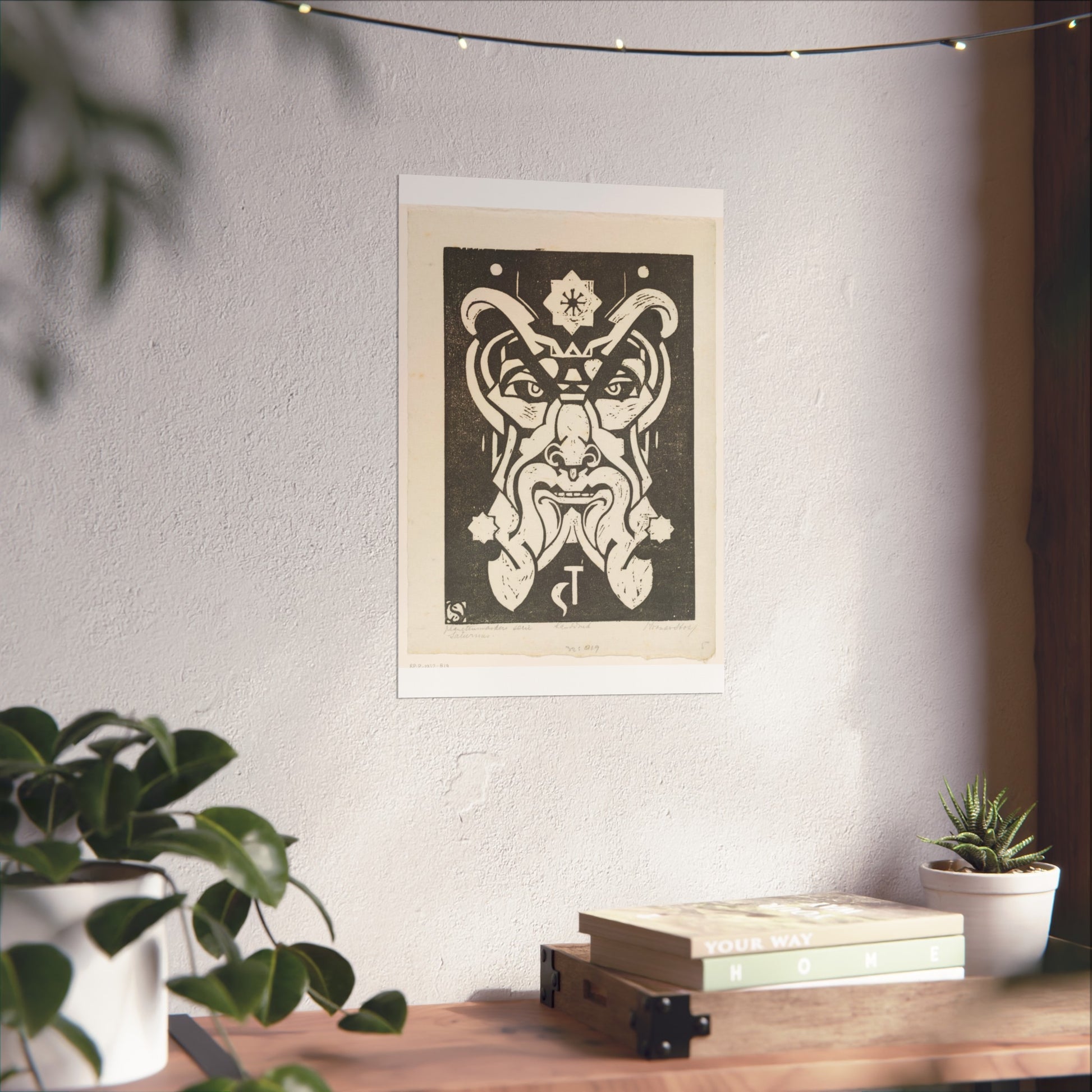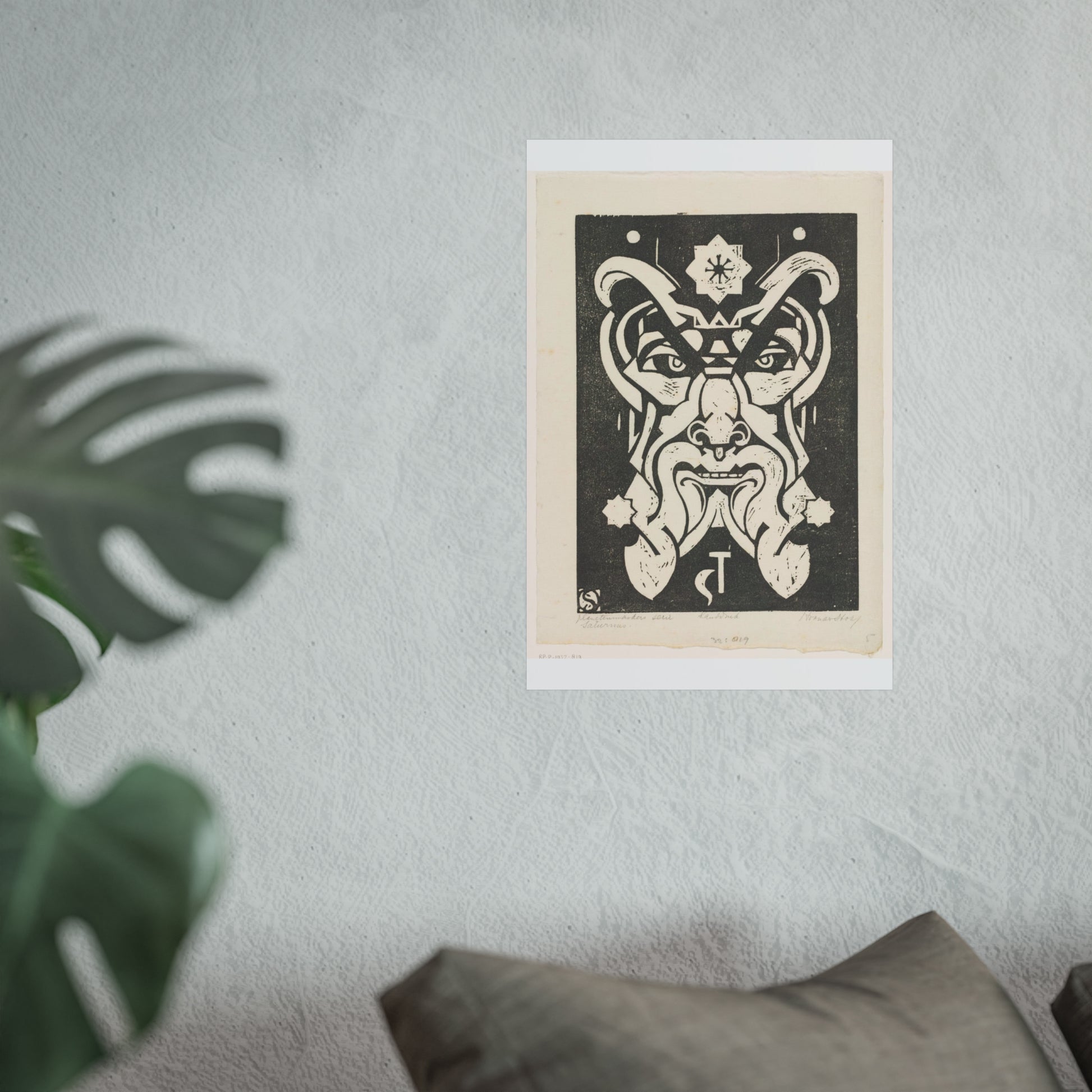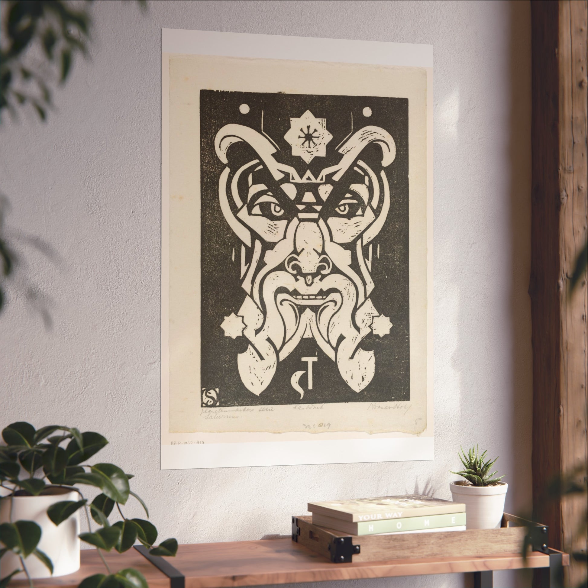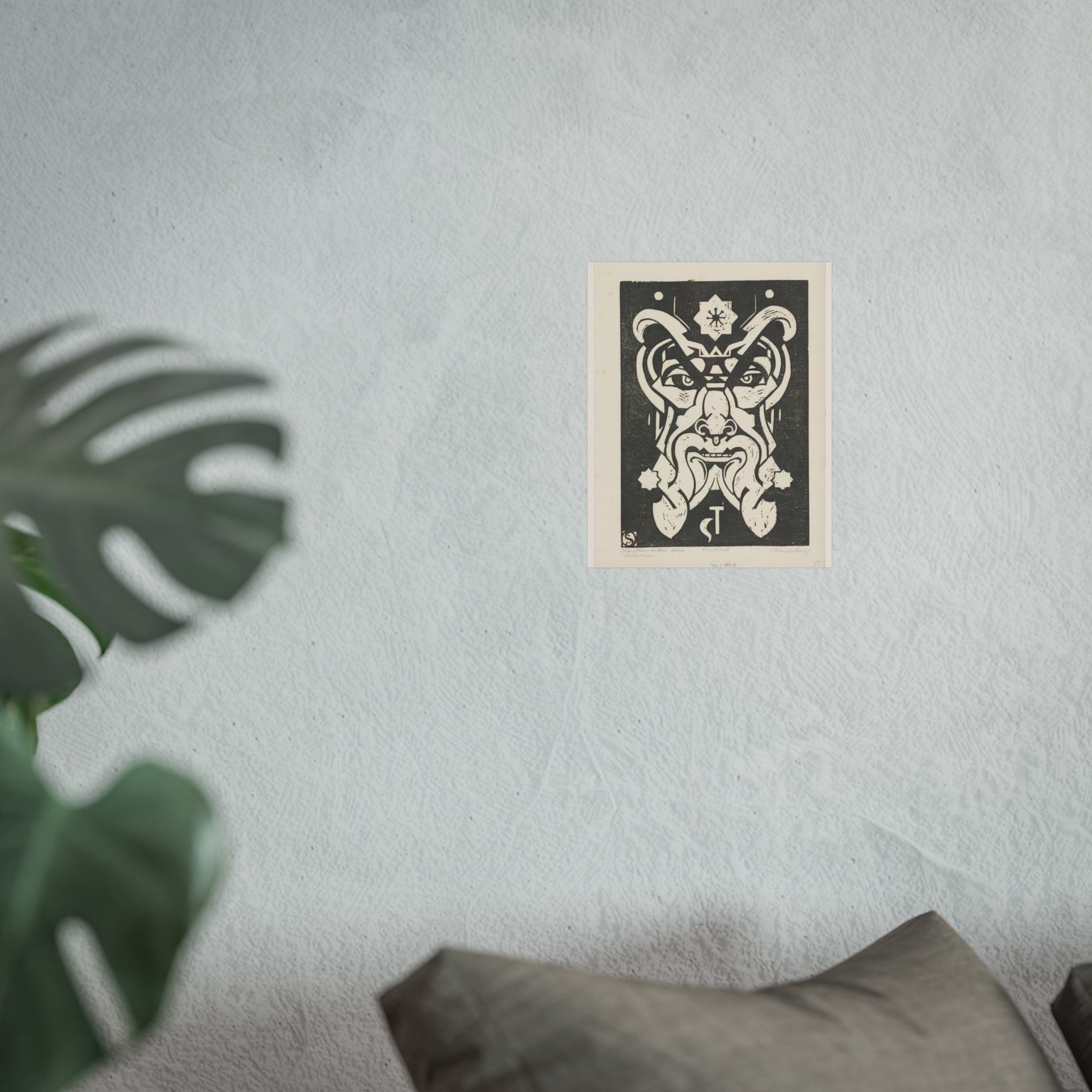 Behold a captivating mask, adorned with a beard, which serves as a symbol of strength and wisdom. At the bottom, you will find the emblem of Saturn, the Roman god of wealth and time, adding an air of mystery and intrigue.