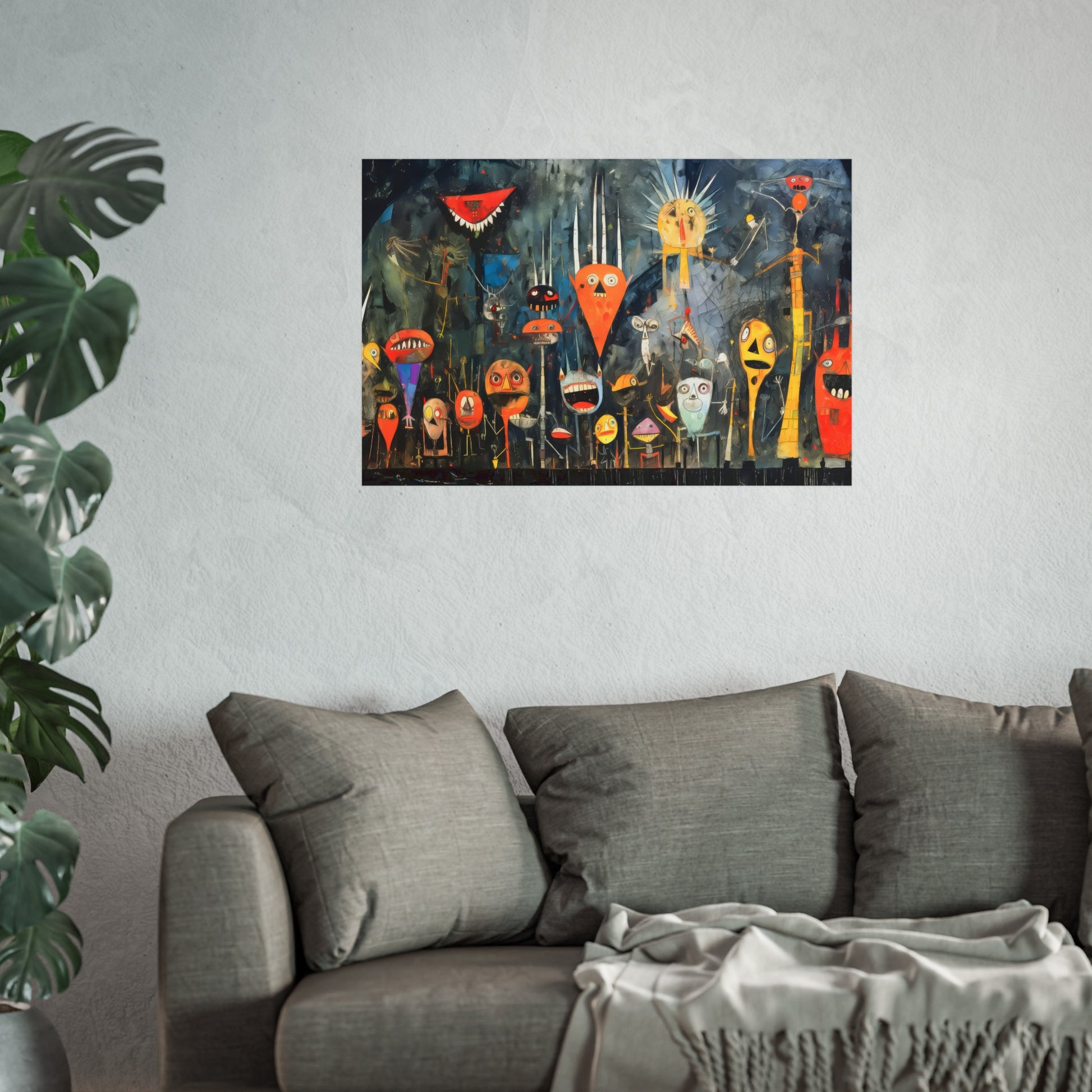 In the enigmatic canvas of 'Say Something to the Spikes', Rosario Finnsdóttir weaves a tale that captivates surreal art lovers. The painting, adorned with standing taller and big spiky heads, evoking a 'quirky danger from the tribe' atmosphere, is a testament to the timeless allure of the unexplored.