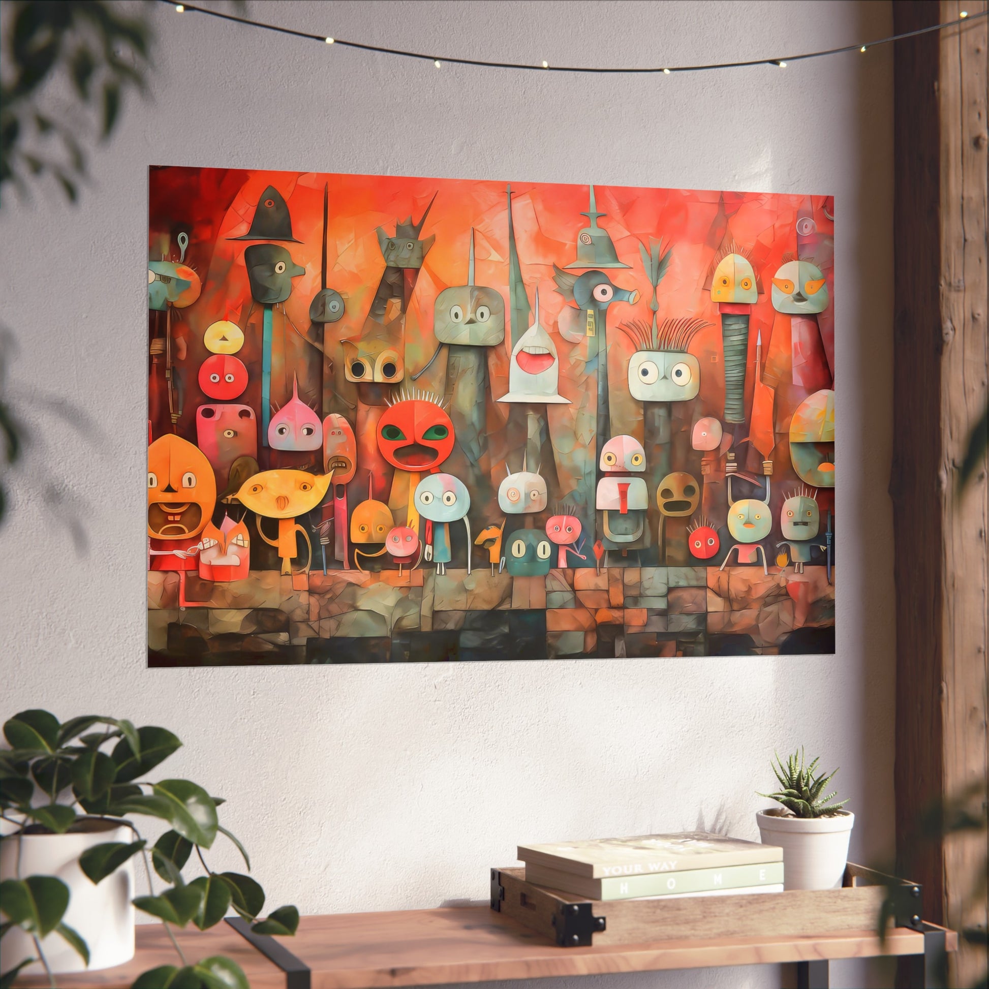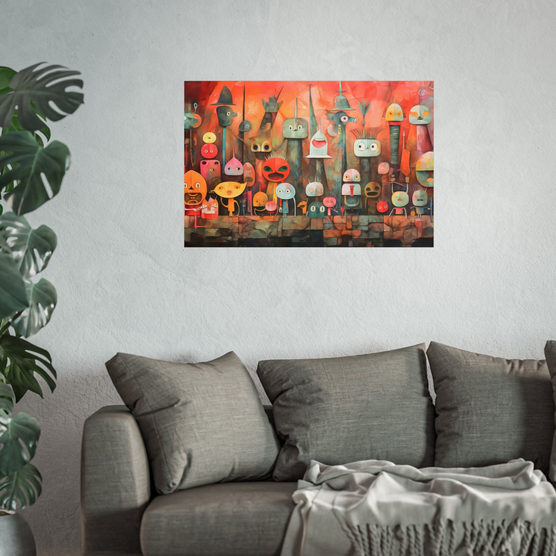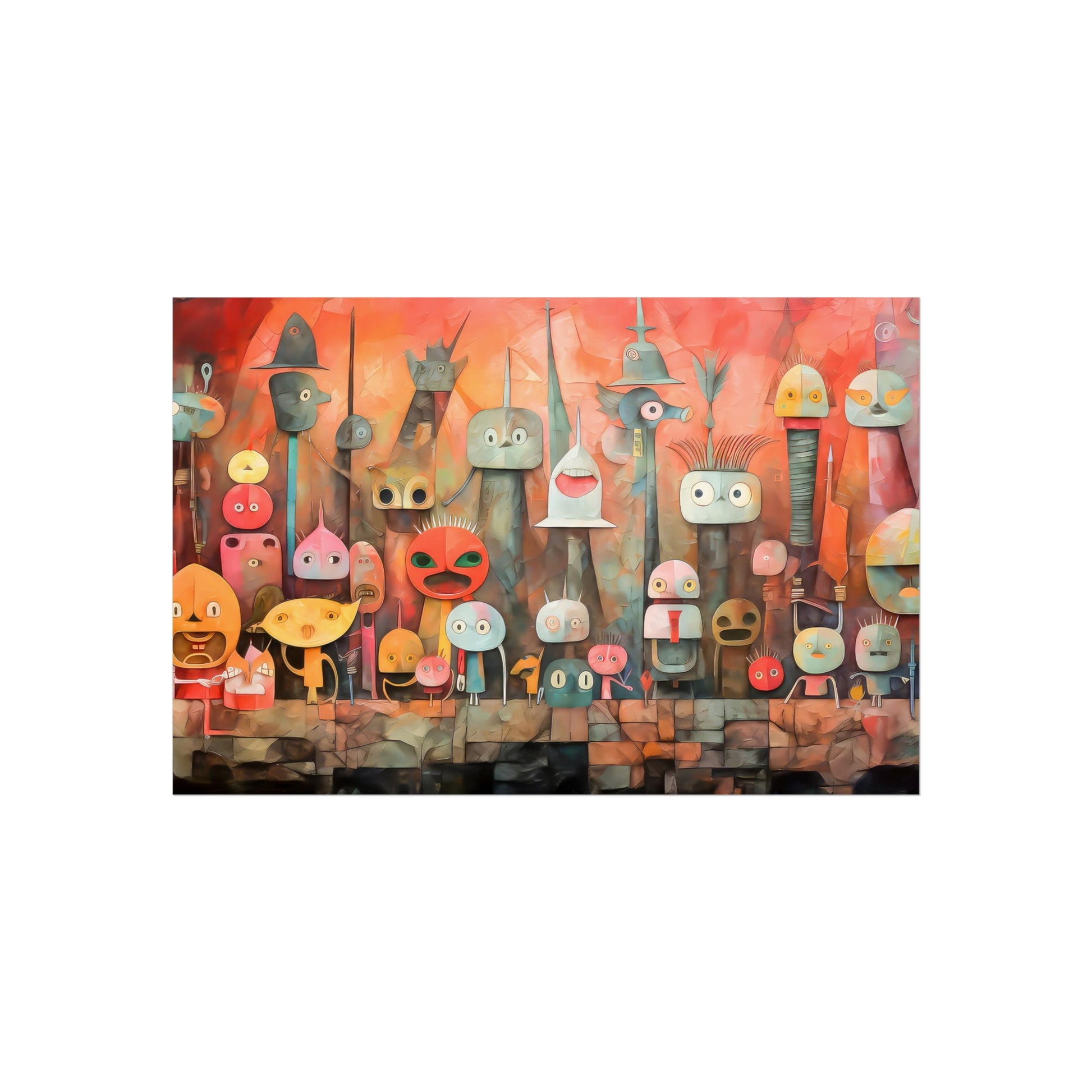 Within the artistic labyrinth of 'Not My Monster', Rosario Finnsdóttir weaves a tale that captivates surreal art lovers. The painting, adorned with disguises and joyous hats, evoking a 'quirky danger from the tribe' atmosphere, is a testament to the timeless allure of the unexplored.