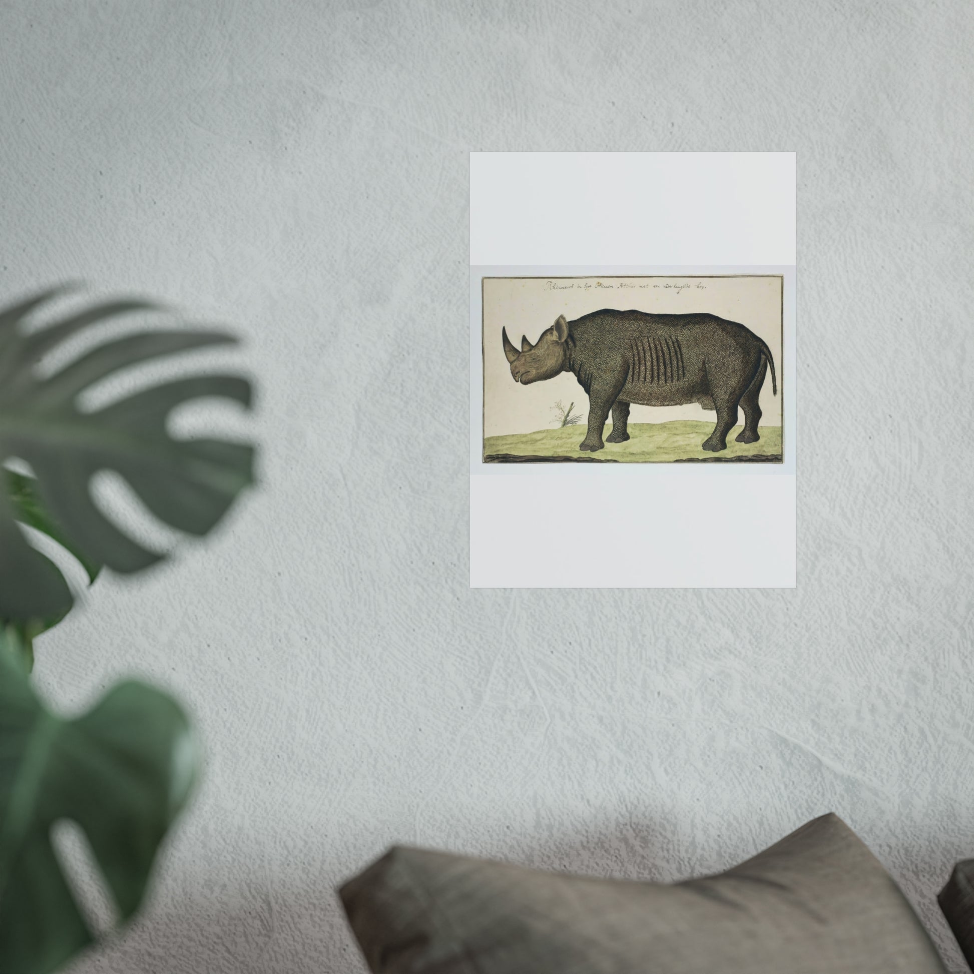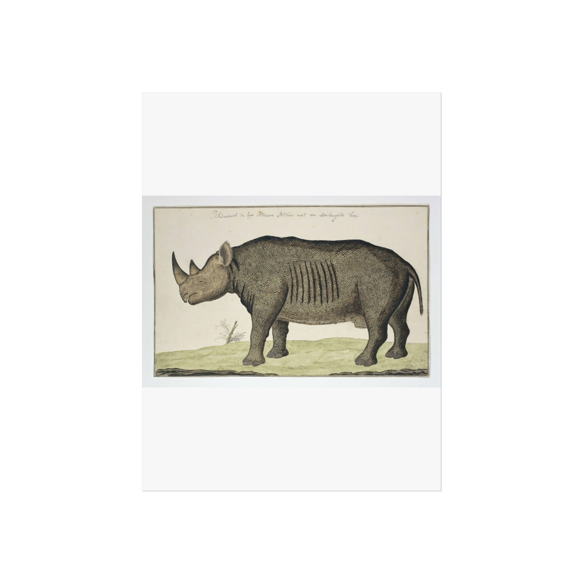 Experience the majestic presence of the Diceros bicornis, commonly known as the Black Rhinoceros, through this captivating artwork. Painted by the renowned explorer and artist Robert Jacob Gordon, this piece brings to life the raw beauty and power of one of nature's most formidable creatures. The detailed brushstrokes and vivid colors transport you to the African savanna, where the Black Rhino roams in its natural habitat. This painting is not just a visual feast but a tribute to wildlife conservation and the enduring spirit of these magnificent animals.