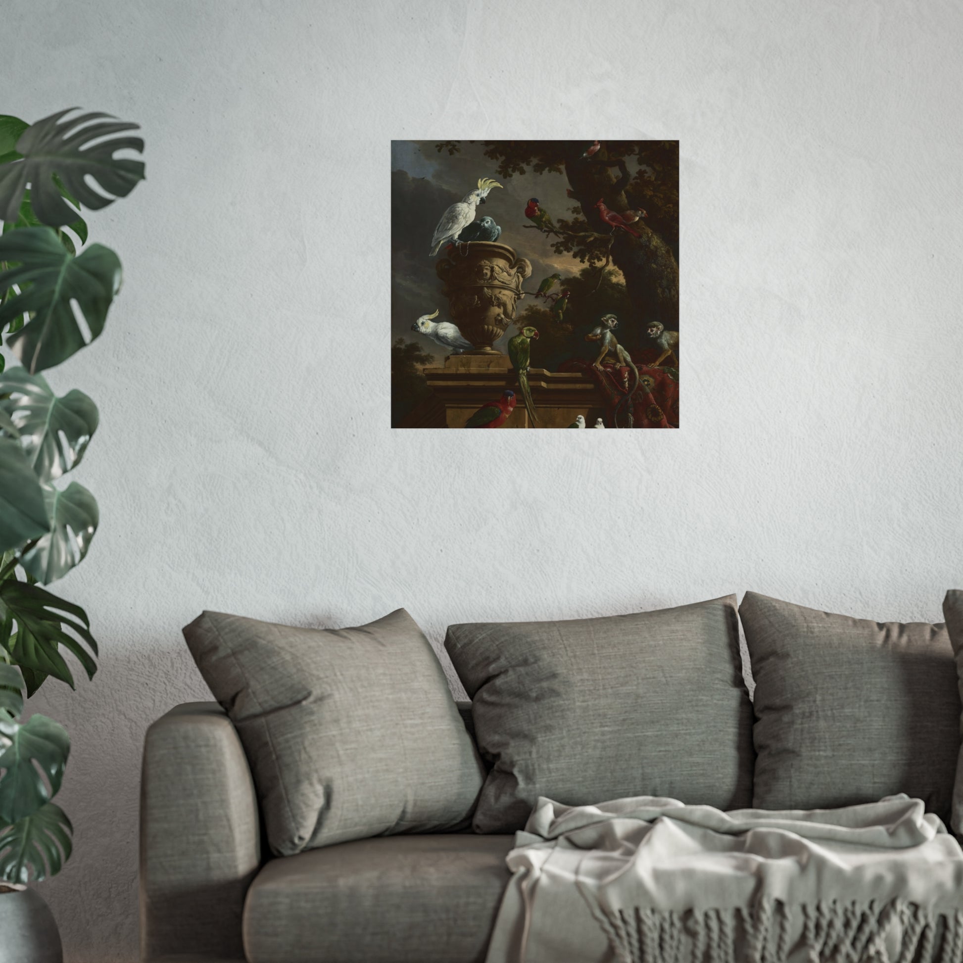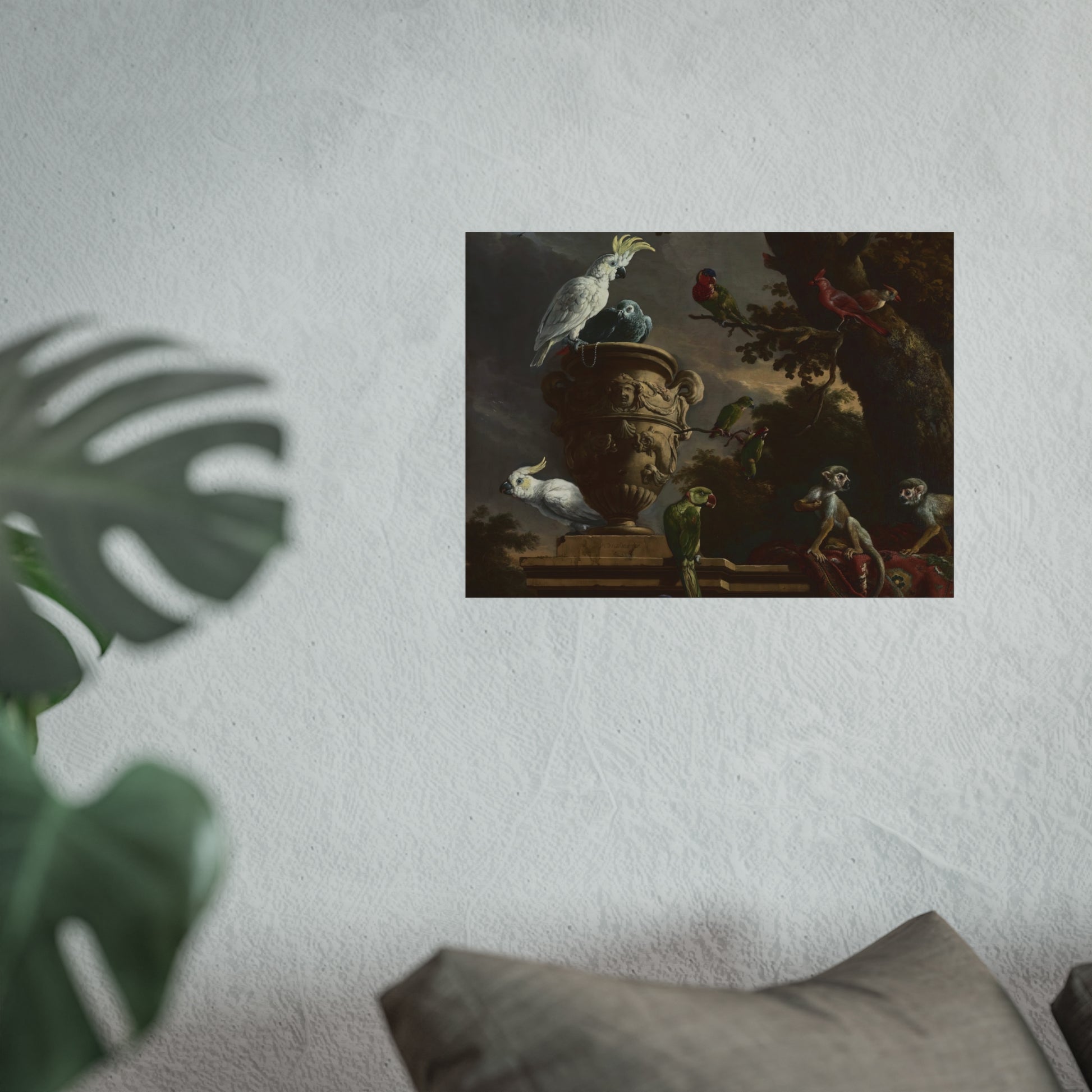 Related tags: melchior d'hondecoeter, exotic birds, monkeys, oriental rug, balustrade, 17th century art