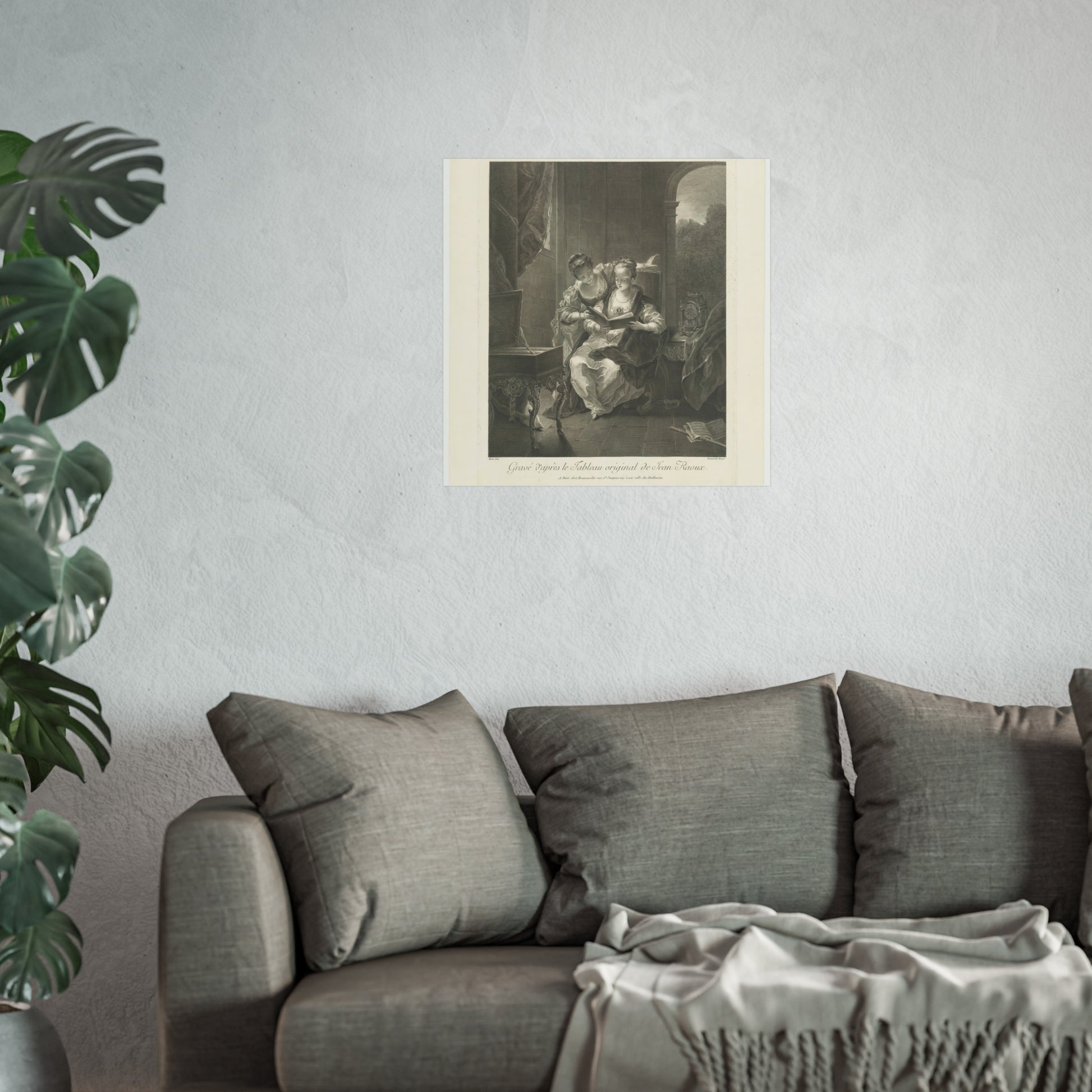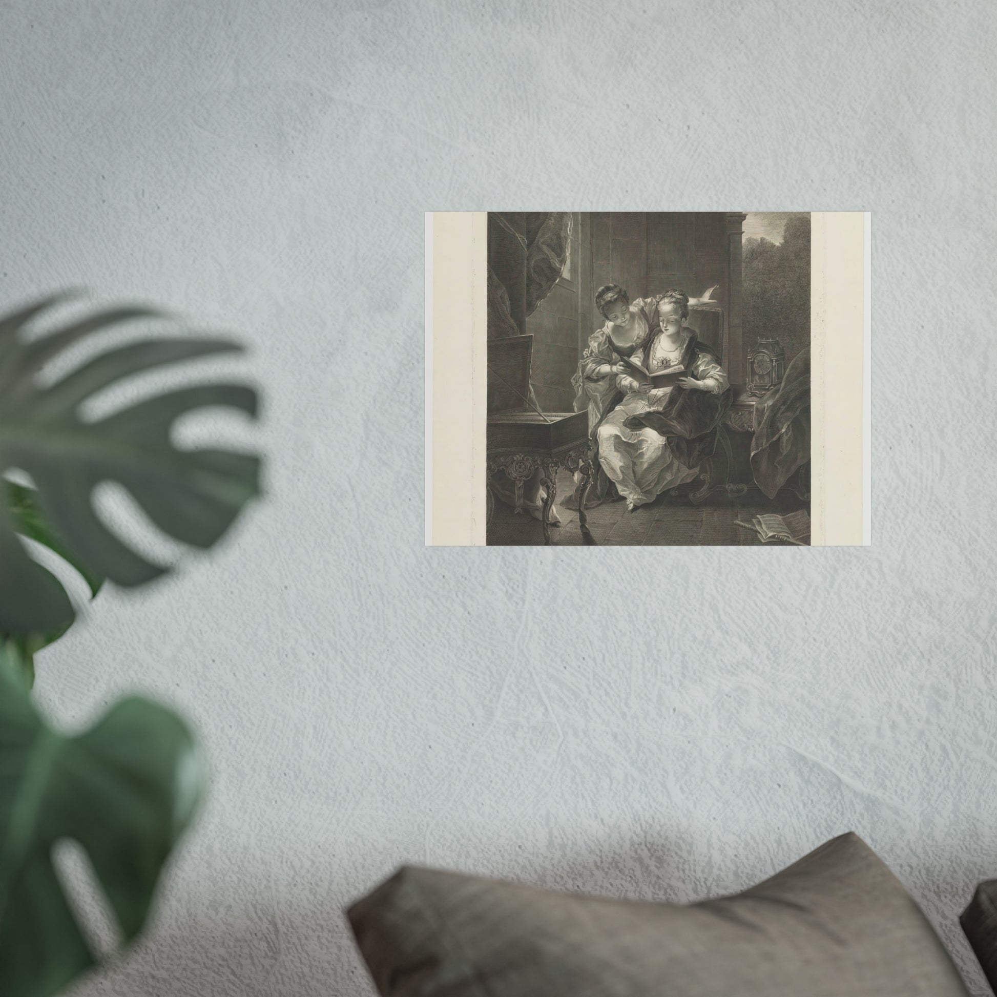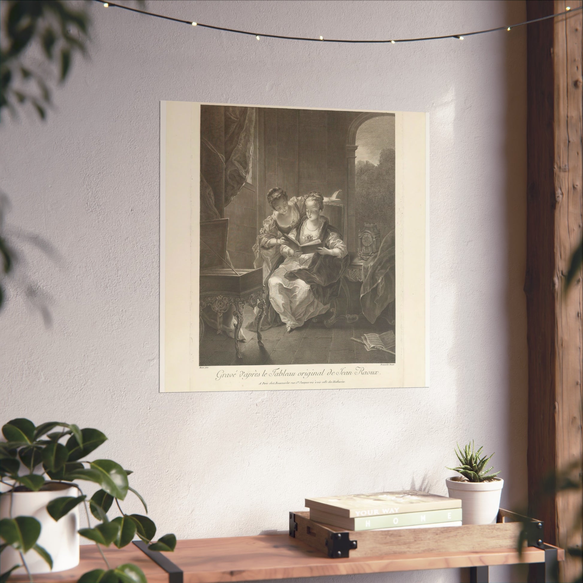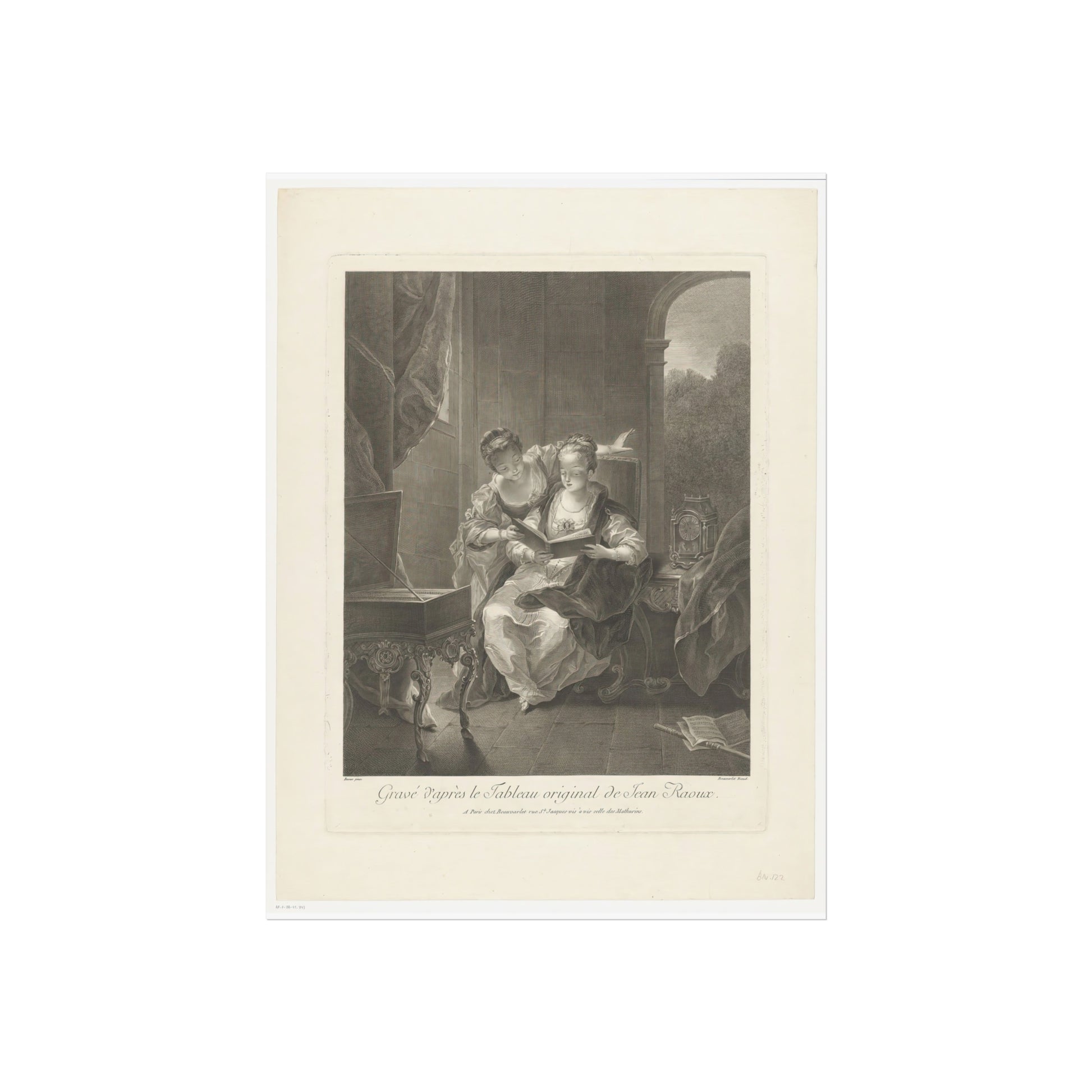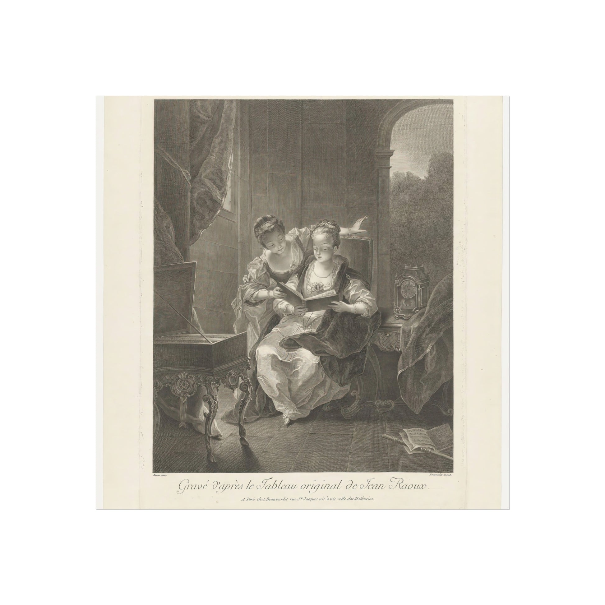 Immerse yourself in the enchanting world of 'The Music-Making Ladies,' a captivating painting by Jacques Beauvarlet. This artwork beautifully captures a moment of harmony and elegance as two women, adorned in exquisite attire, engage in a musical duet. The soft lighting and intricate details bring a sense of serenity and grace to the scene, making it a timeless piece that celebrates the joy of music and companionship.