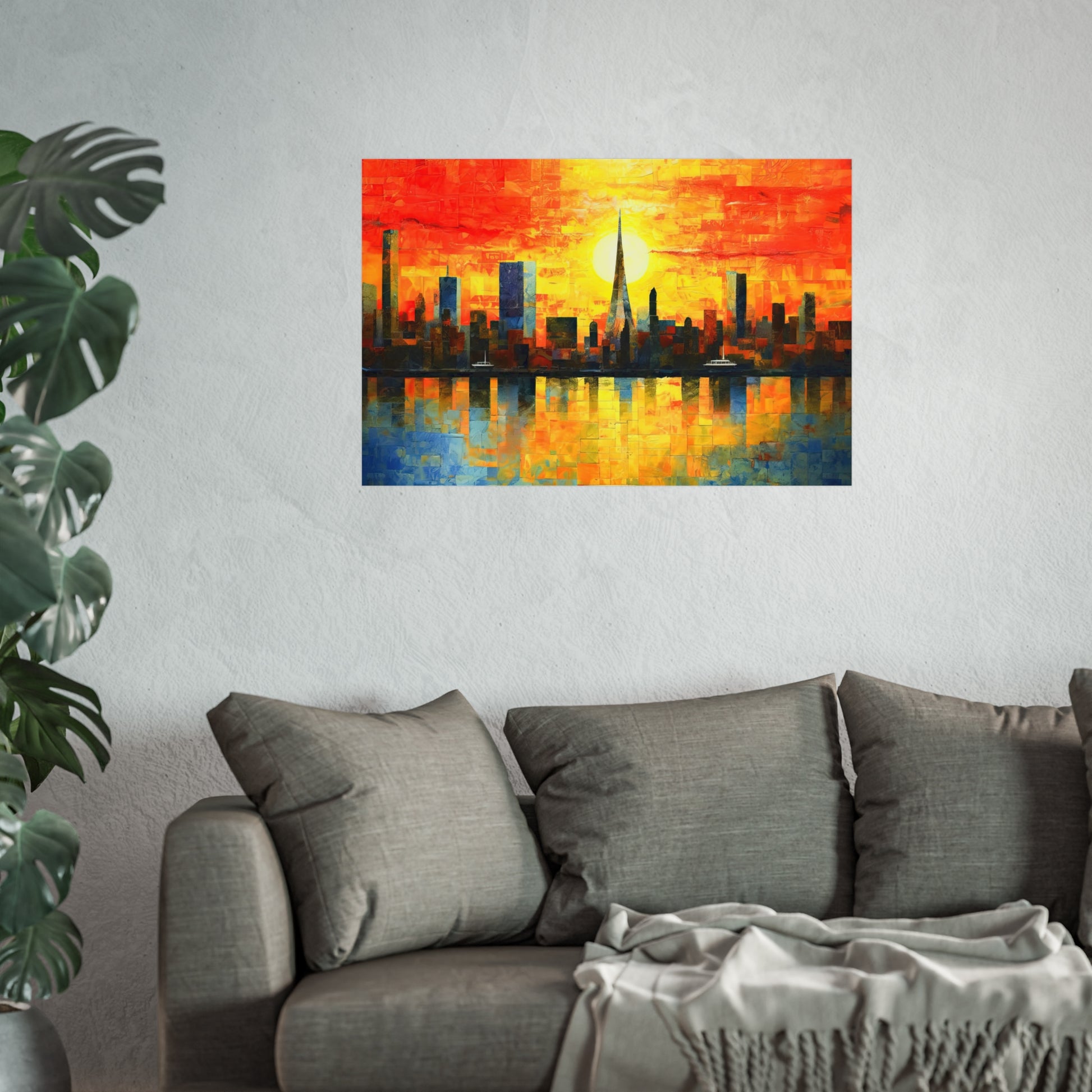 Beneath the artistic veneer of 'The Sun Burns: Split', The Curator weaves a tale that captivates abstract art lovers and lovers of colour. The painting, adorned with shard splits sun and sun behind city, evoking a 'climate change hot' atmosphere, is a testament to the timeless allure of the unexplored.