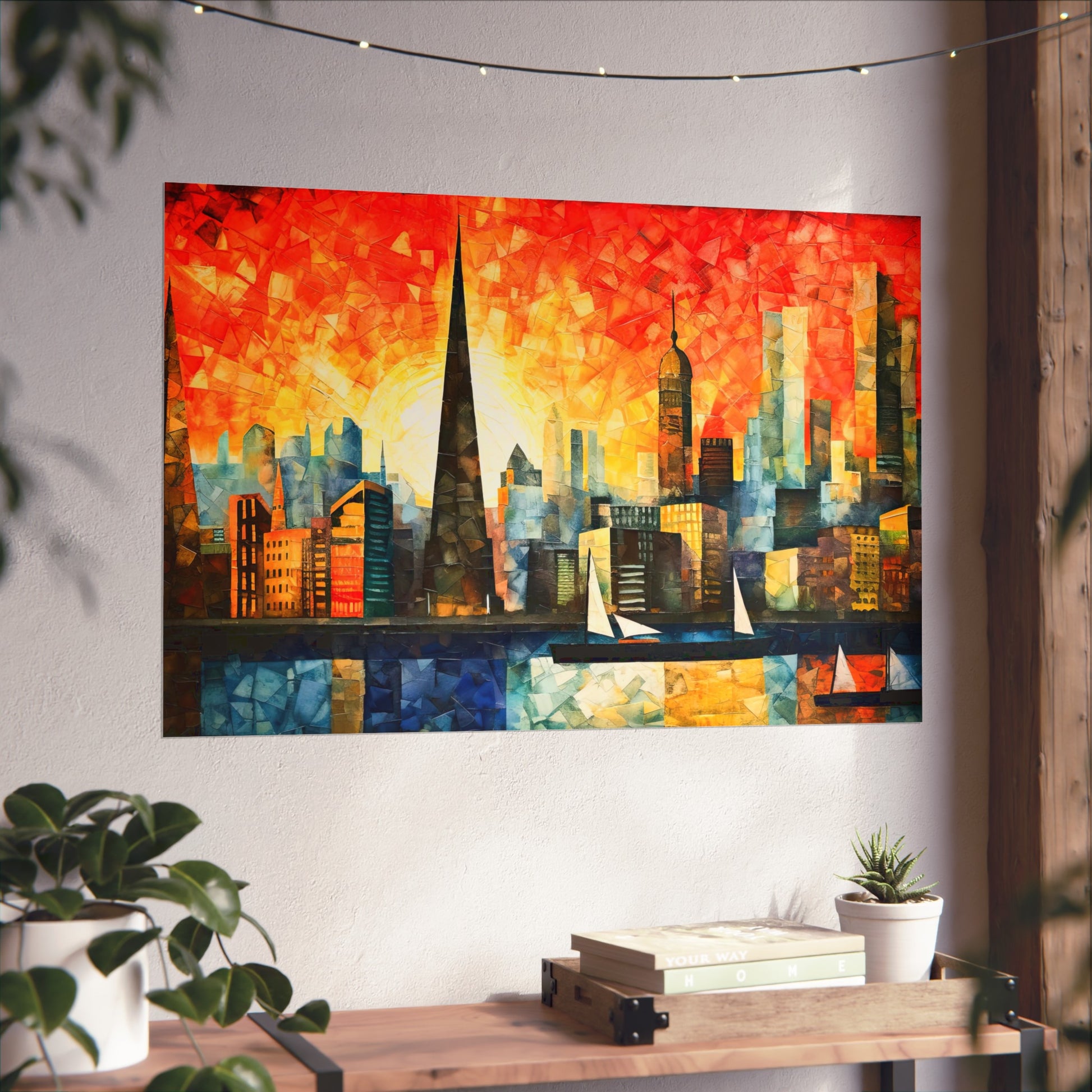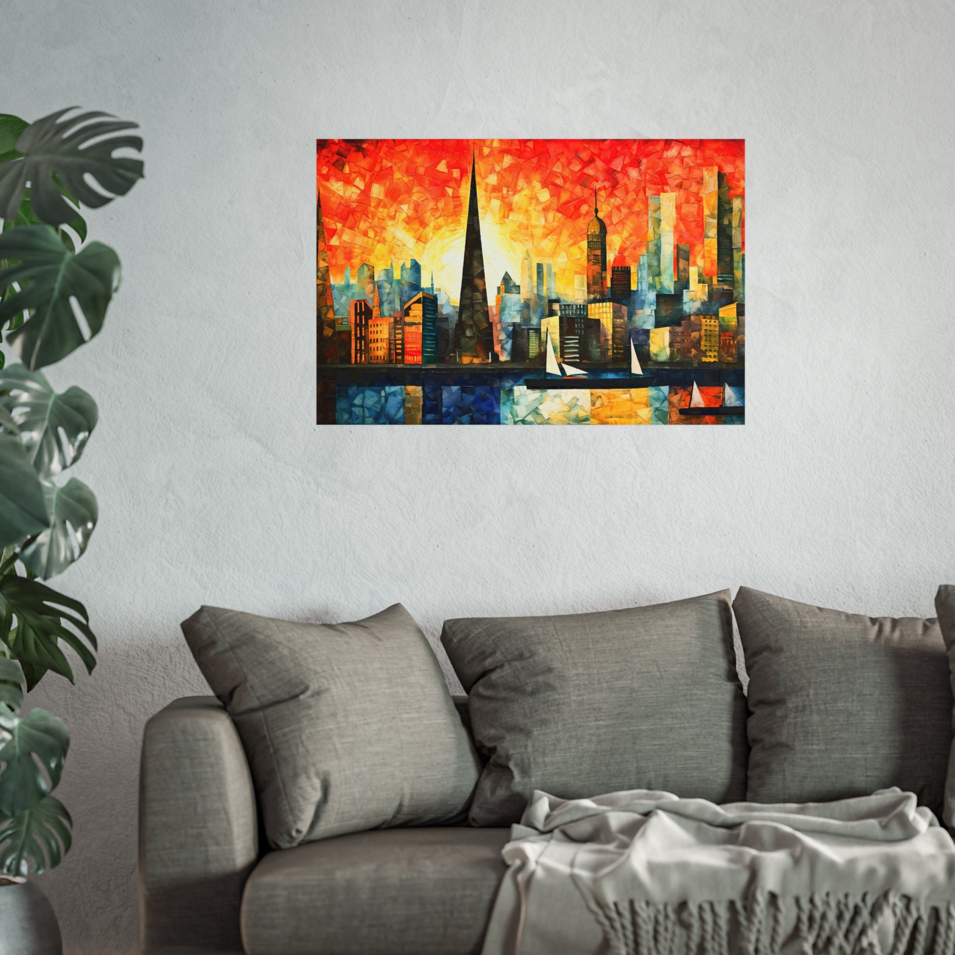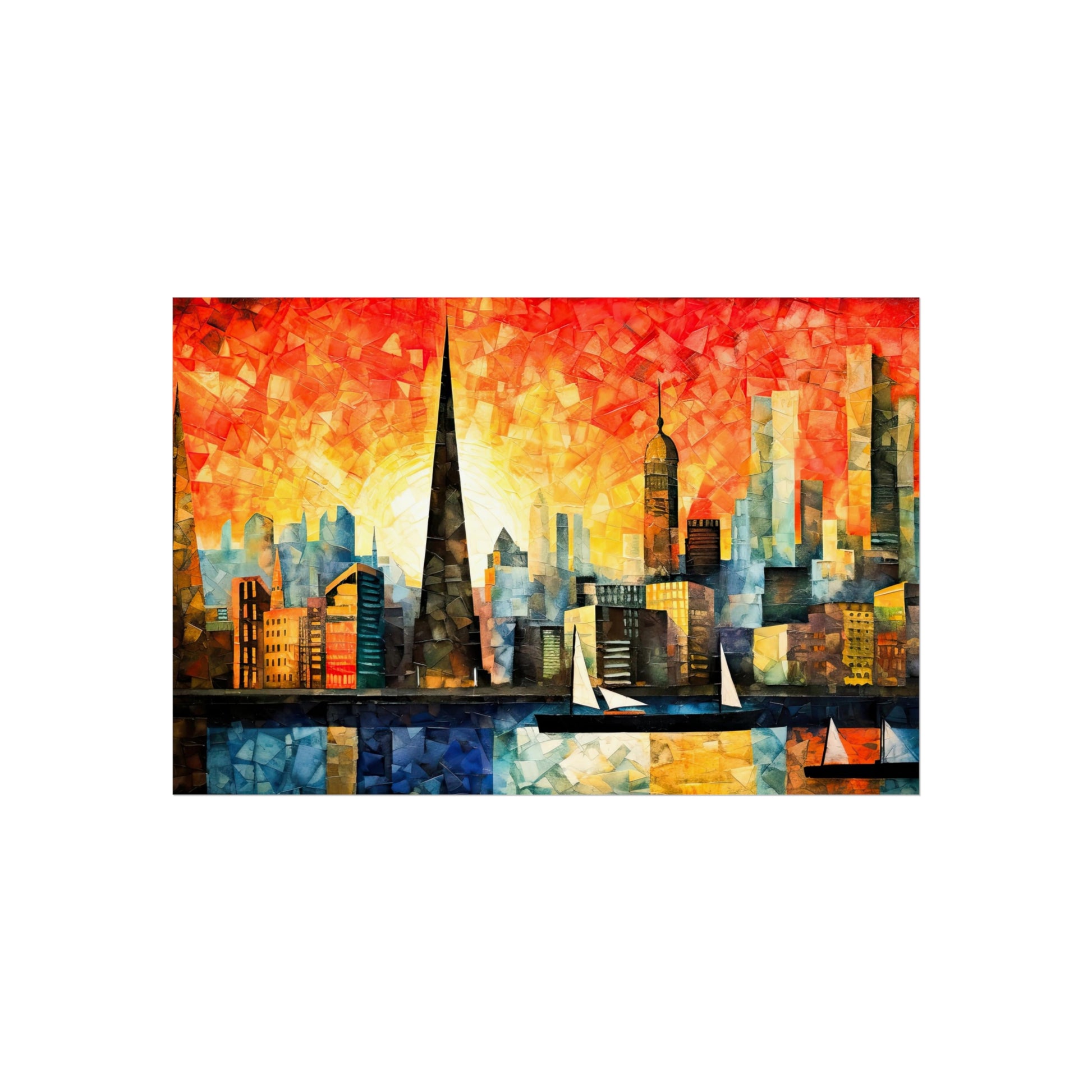 Within the artistic labyrinth of 'The Sun Burns: This Building Splits the Sky', The Curator weaves a tale that captivates abstract art lovers and lovers of colour. The painting, adorned with sailing on the thames and shard in the sun, evoking a 'climate change hot' atmosphere, is a testament to the timeless allure of the unexplored.