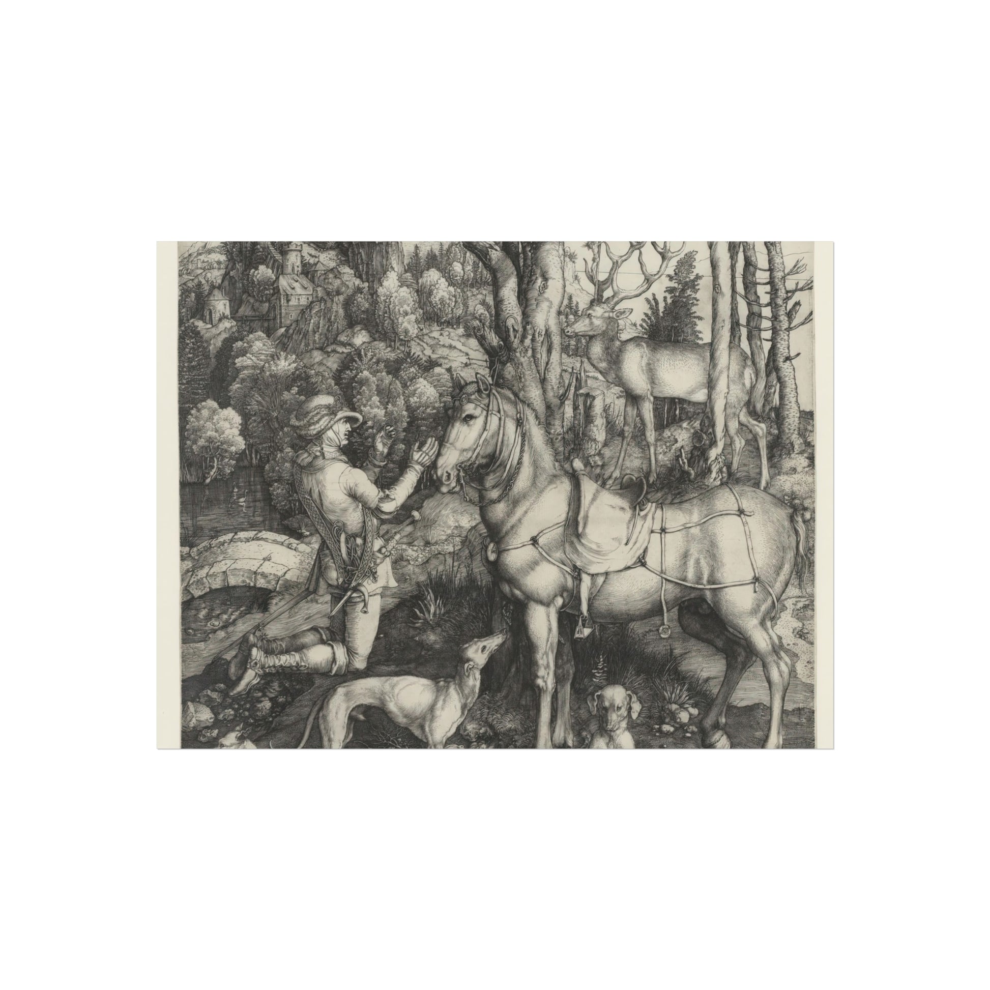 Related tags: albrecht dürer, saint eustace, religious art, renaissance painting, mystical vision, stag with crucifix