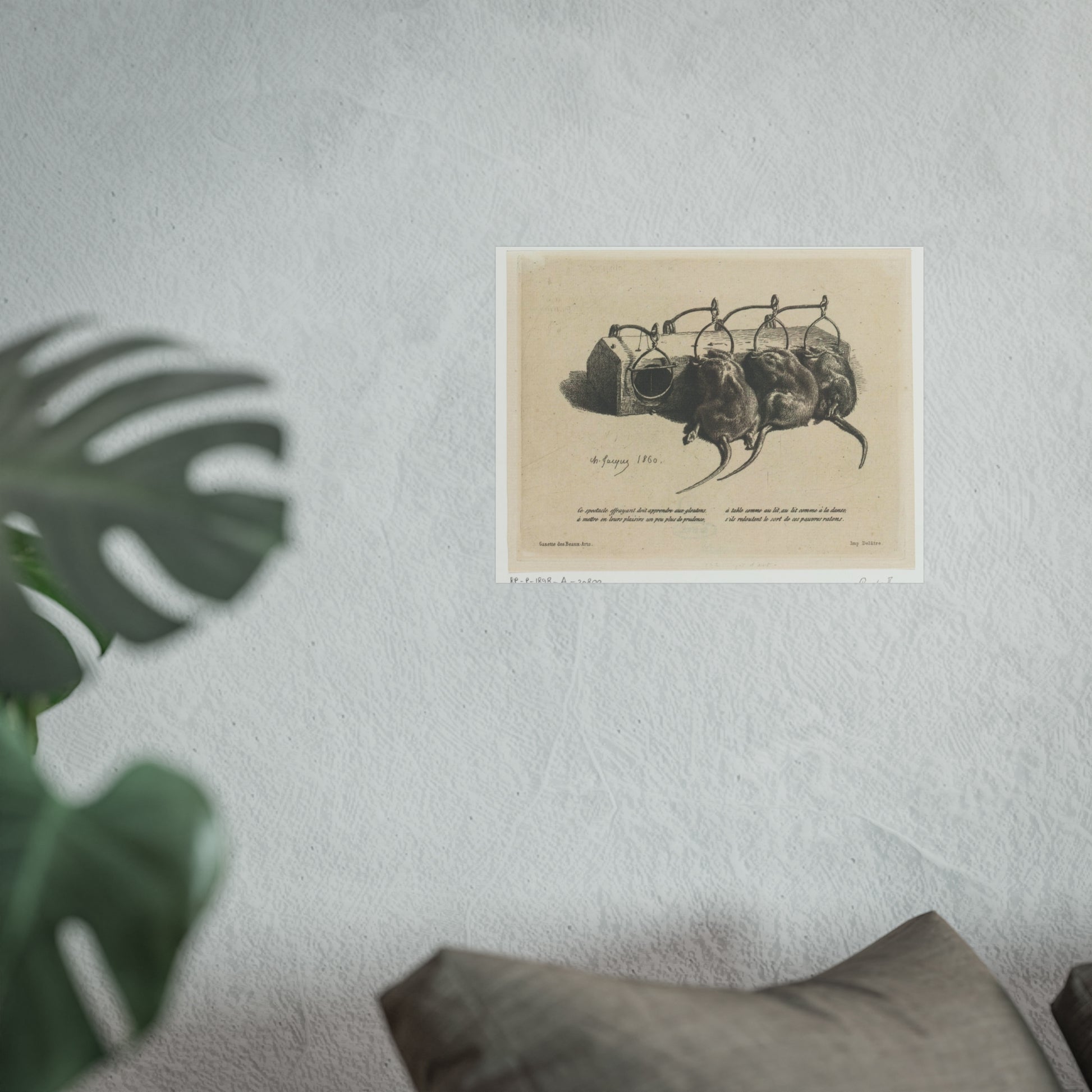 This captivating piece by Charles Emile Jacque depicts the intriguing scenario of three mice caught in a mousetrap. The artist's masterful use of light and shadow brings a sense of drama to this everyday scene, while his detailed rendering of the mice adds an element of realism that engages the viewer. The painting invites us to reflect on the precariousness of life and the inevitable consequences of our actions.