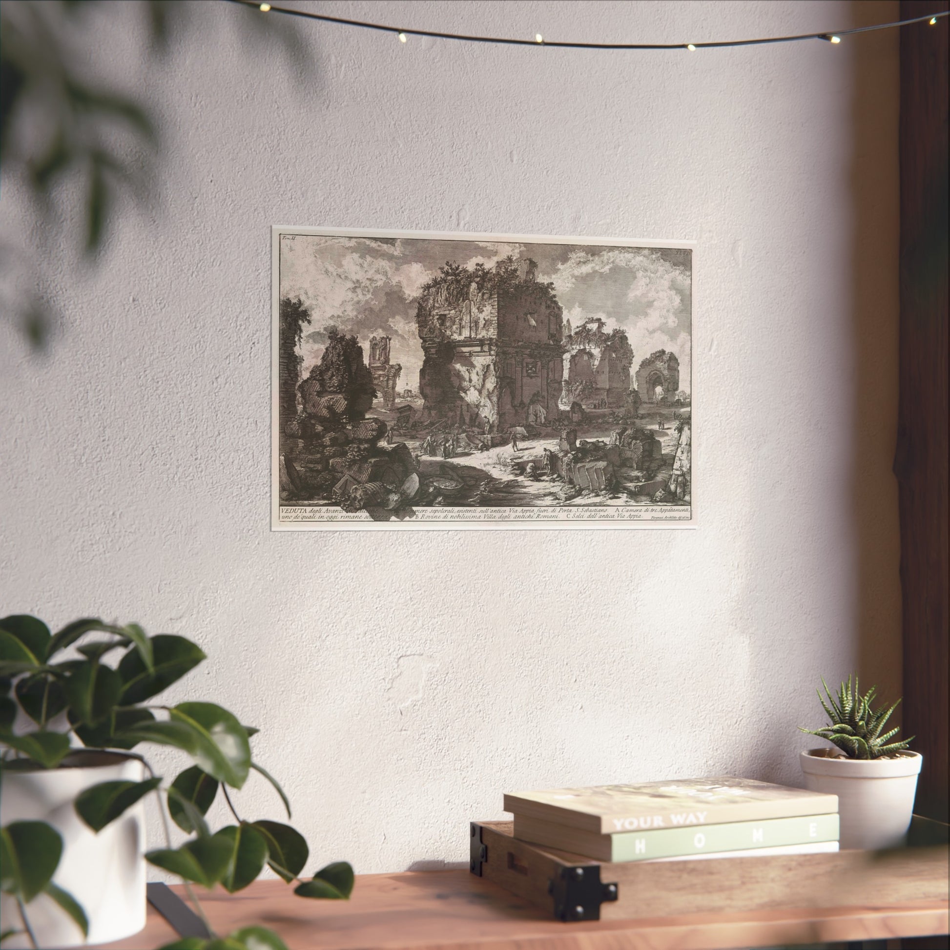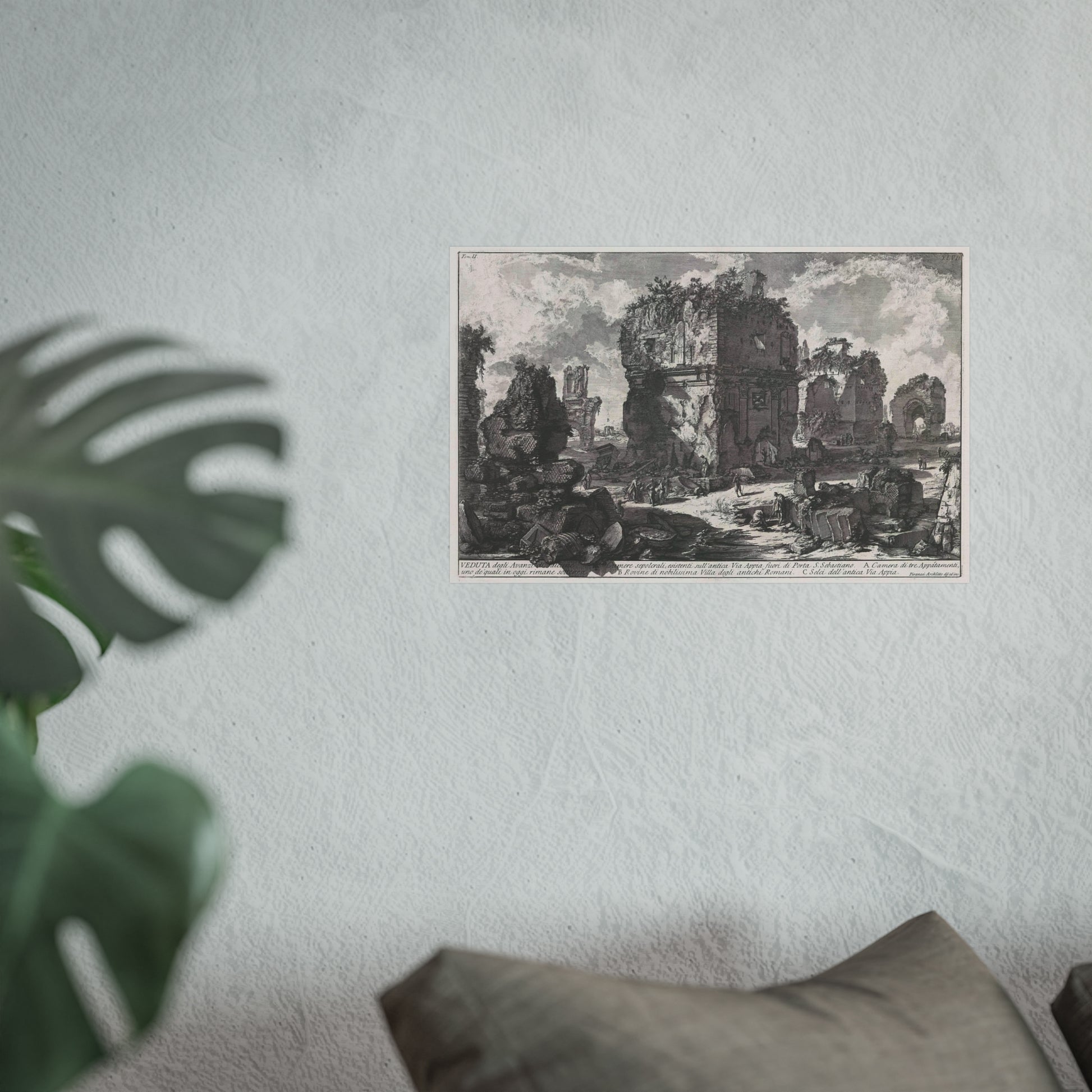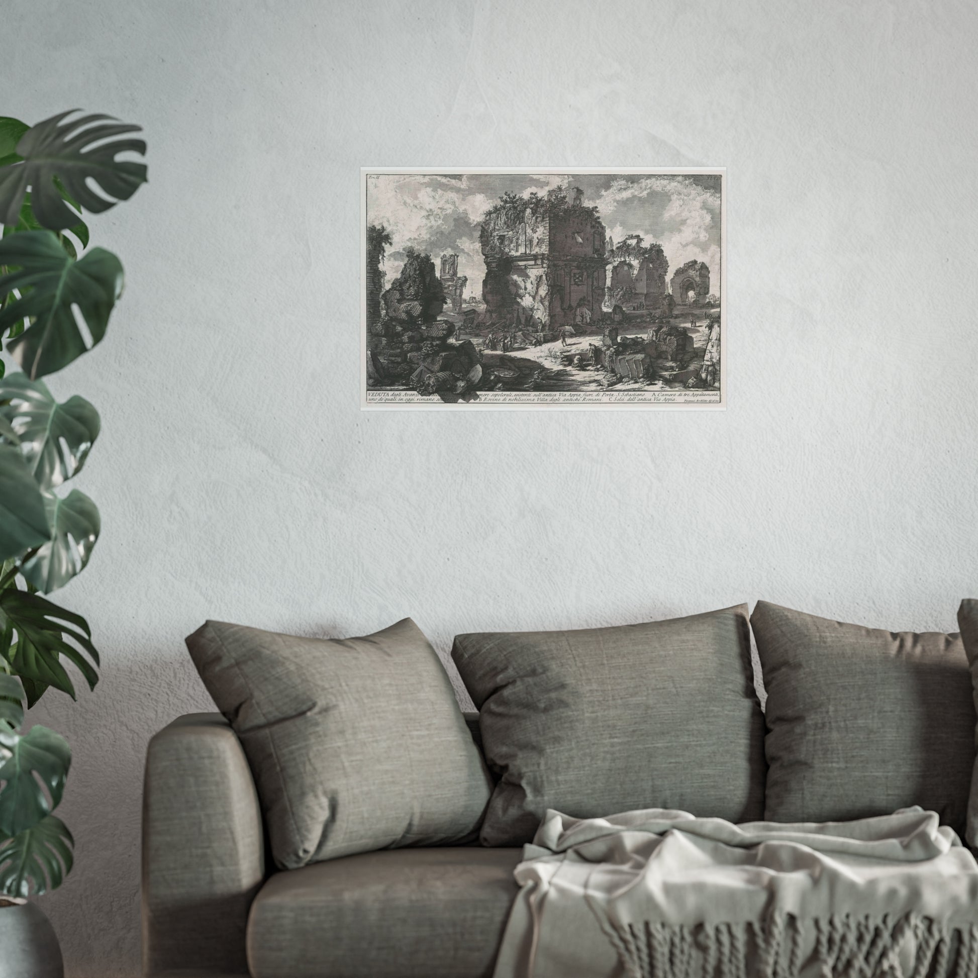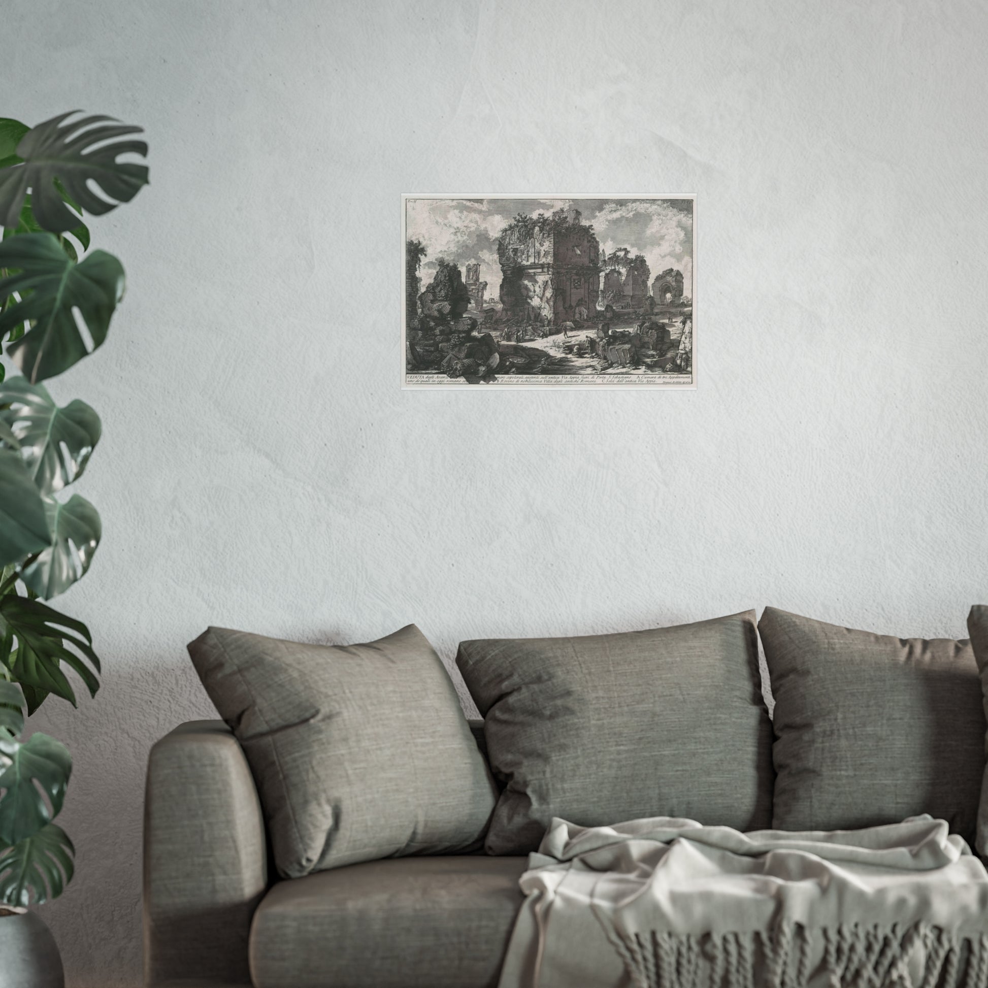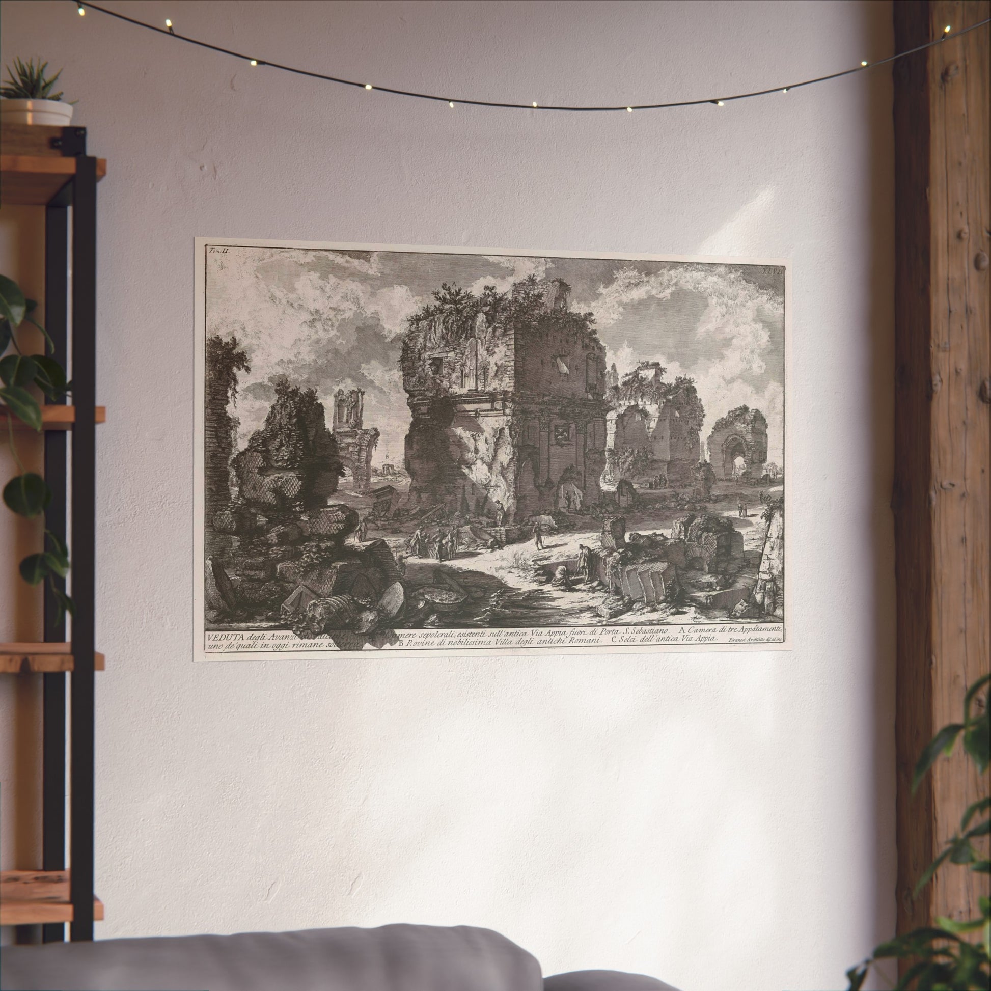 This captivating piece showcases the remnants of ancient tombs along the Via Appia Antica. The title and explanatory letters are subtly placed in the lower margin, while it is numbered at the top as Tom. II. / XLVII.