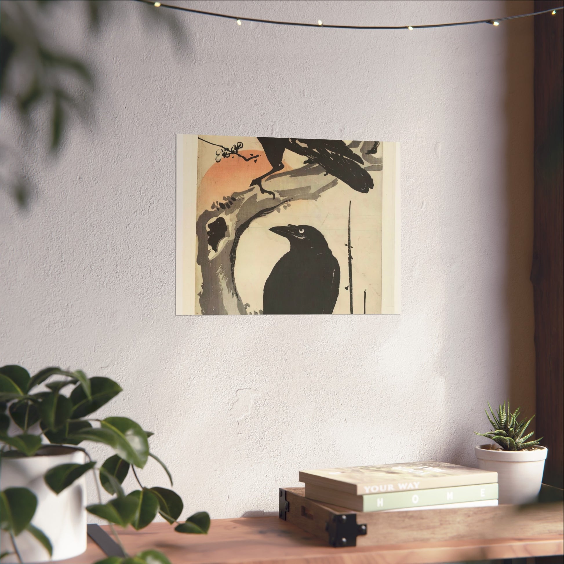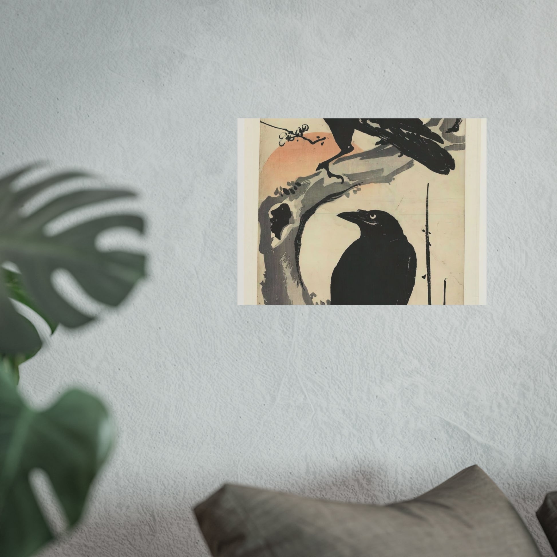 Related tags: kawanabe kyôsai, japanese art, plum tree, crows, sunset, nature