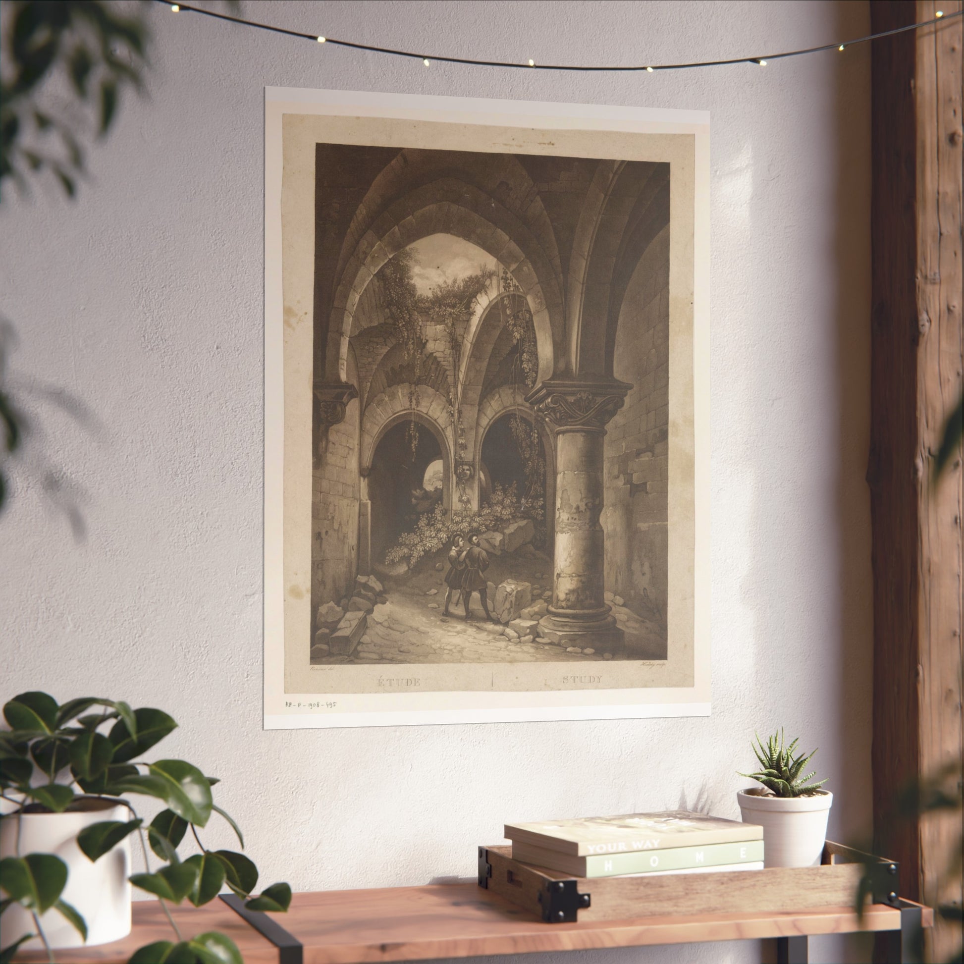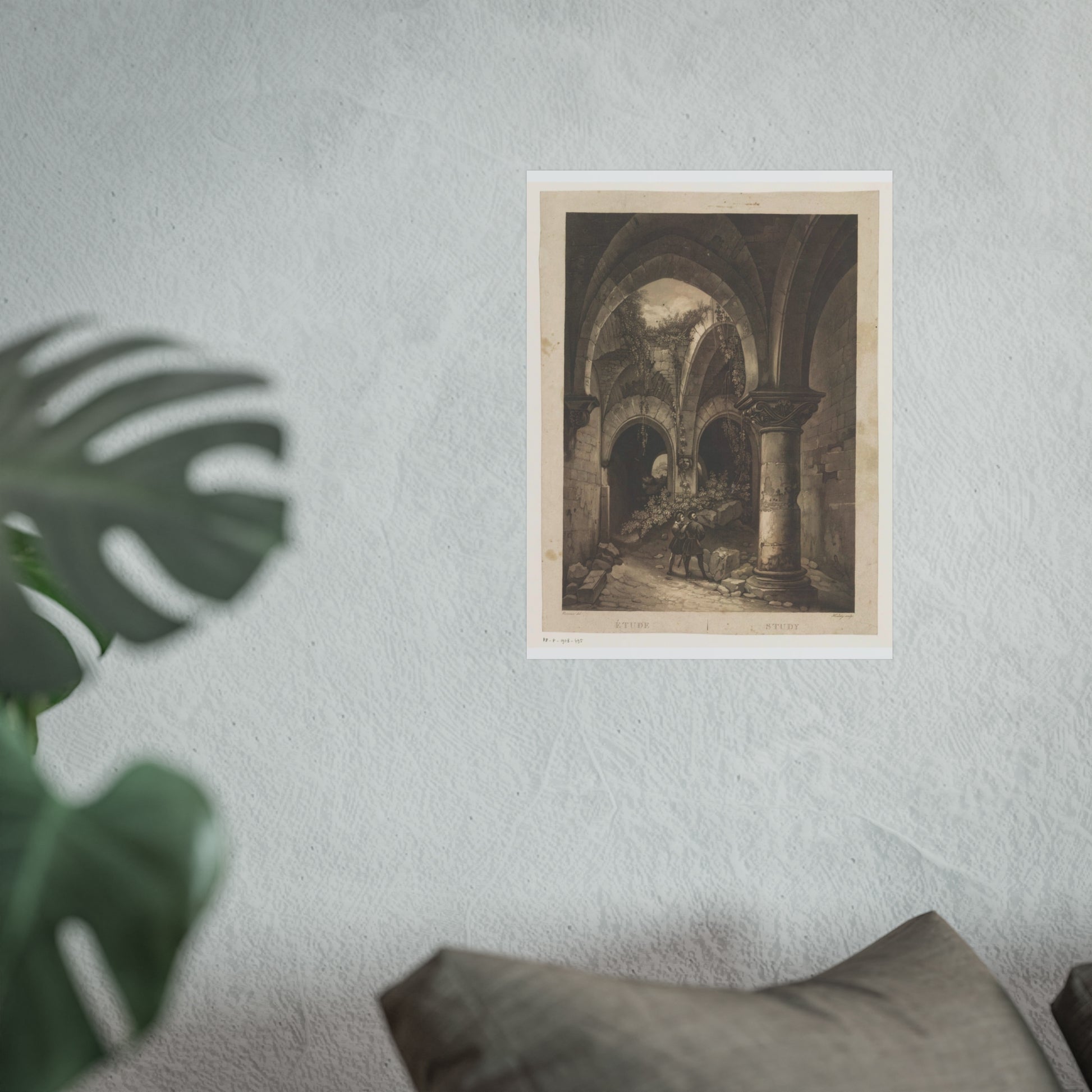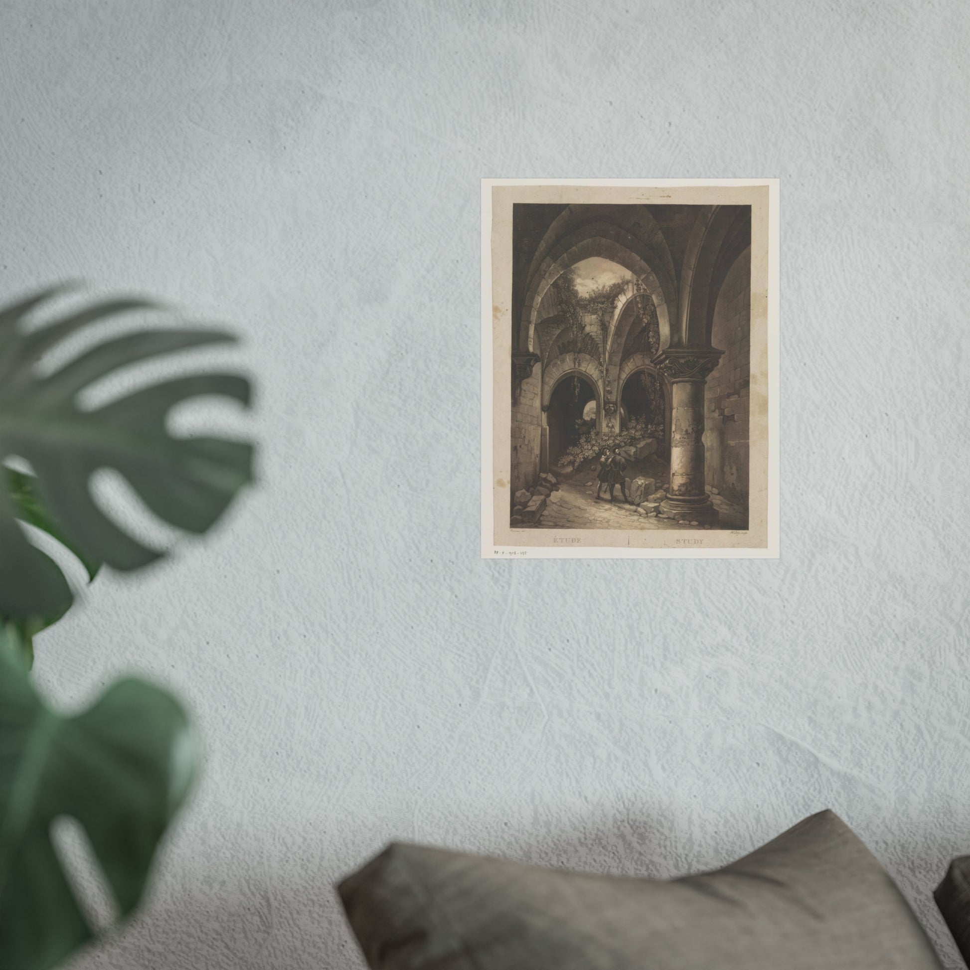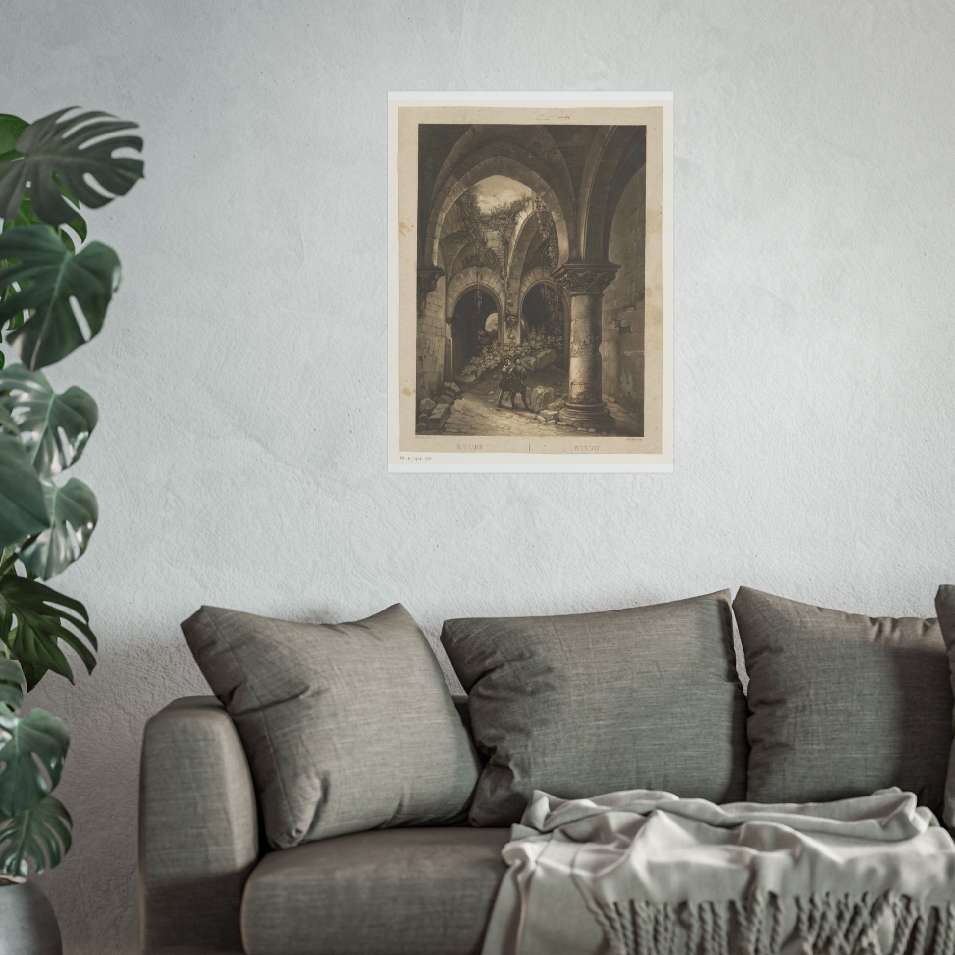 This captivating artwork by Sigismond Himely depicts a poignant scene of two men standing amidst the remnants of a once grand structure. The ruin, with its crumbling walls and faded glory, serves as a stark backdrop to the men's quiet contemplation, creating a narrative rich in history and emotion.