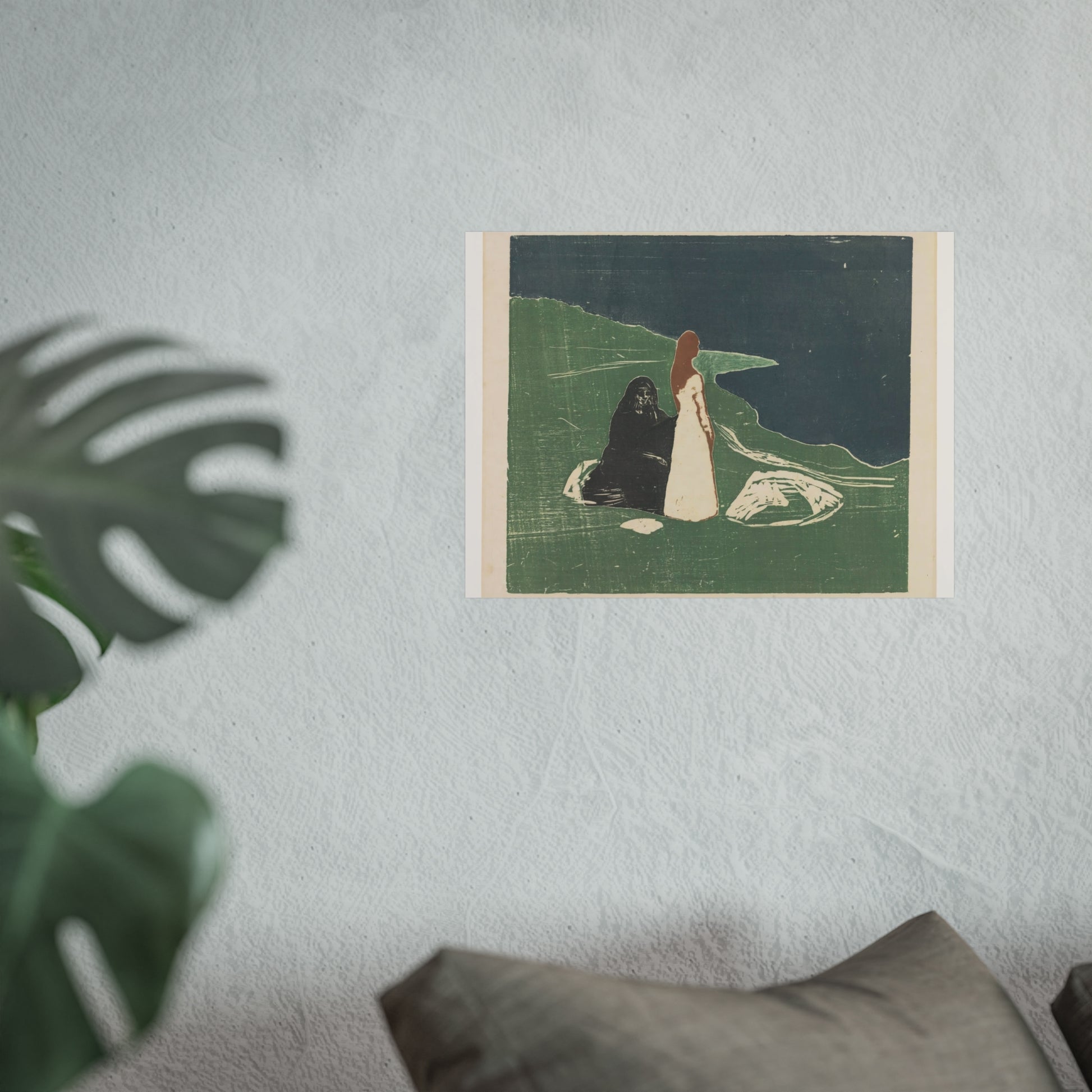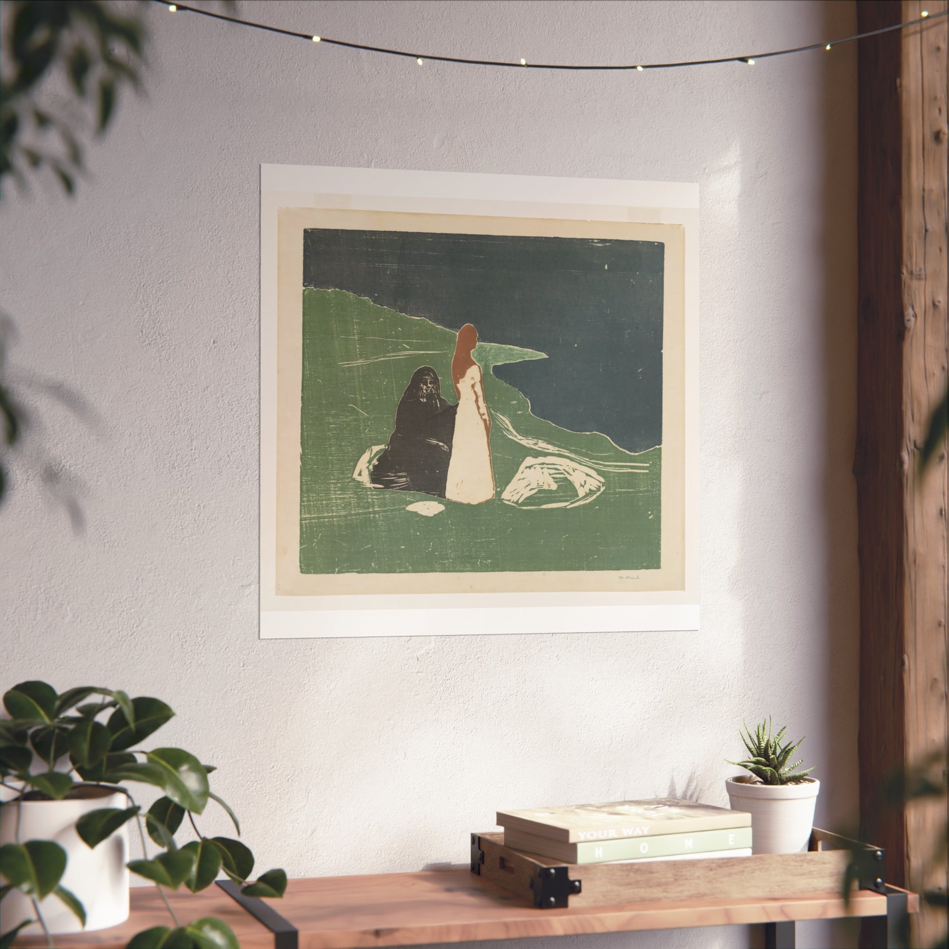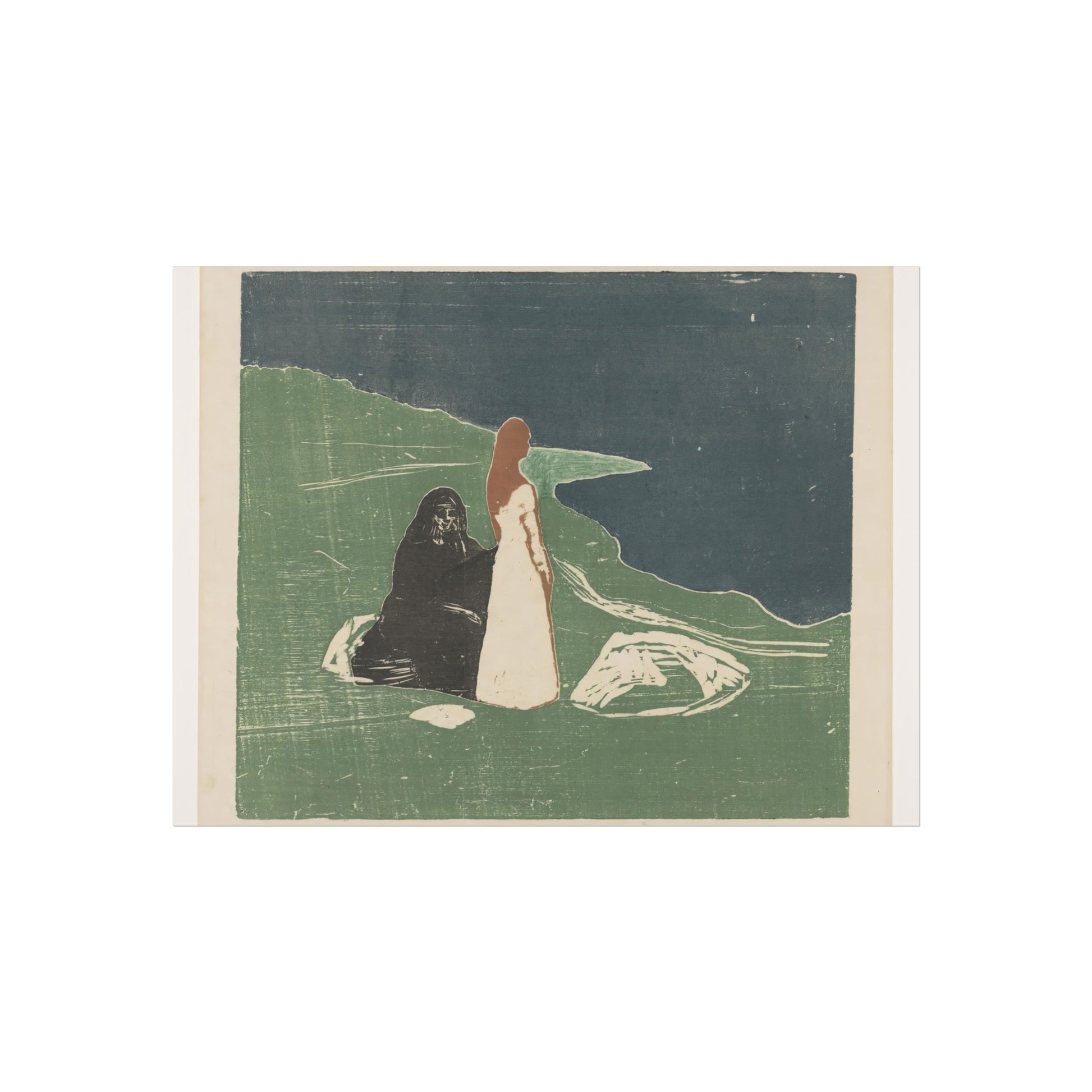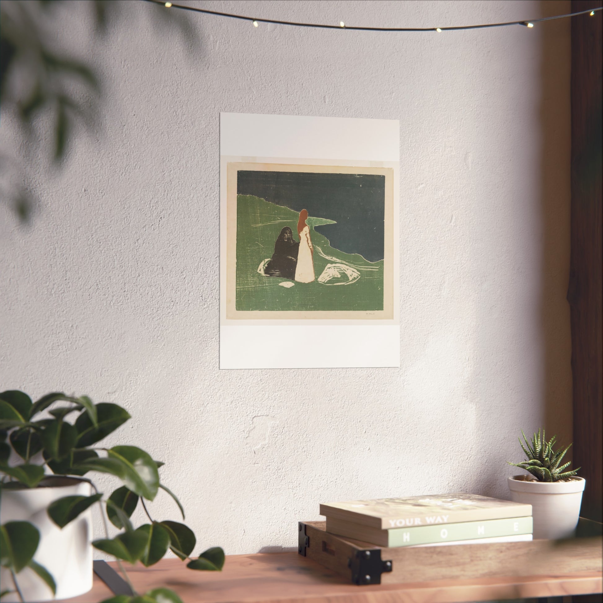 Experience the haunting beauty of Edvard Munch's 'Two Women on the Shore.' This evocative painting captures two women standing by the water, their faces reflecting a mix of contemplation and melancholy. The use of dark, brooding colors and expressive brushstrokes creates a powerful sense of emotion and atmosphere. As you gaze upon this masterpiece, you'll be drawn into the mysterious and poignant world that Munch so masterfully depicts.