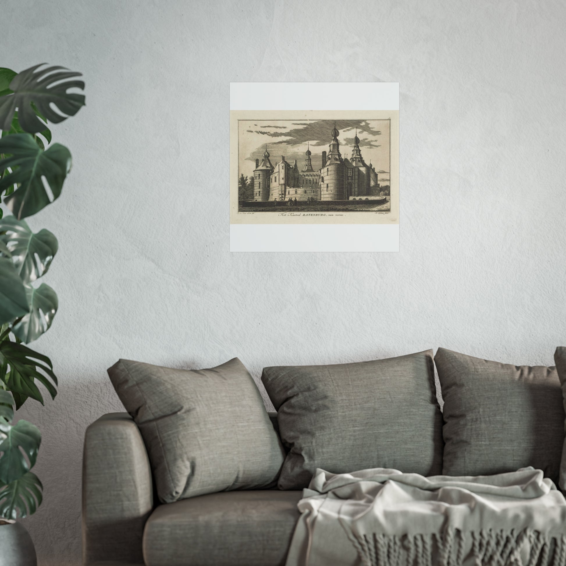 Immerse yourself in the serene beauty of 'Gezicht op kasteel Batenburg,' a stunning painting by Hendrik Spilman. This artwork captures the timeless elegance of Batenburg Castle, nestled amidst lush greenery and tranquil waters. The intricate details and masterful use of light transport viewers to a bygone era, evoking a sense of history and wonder.