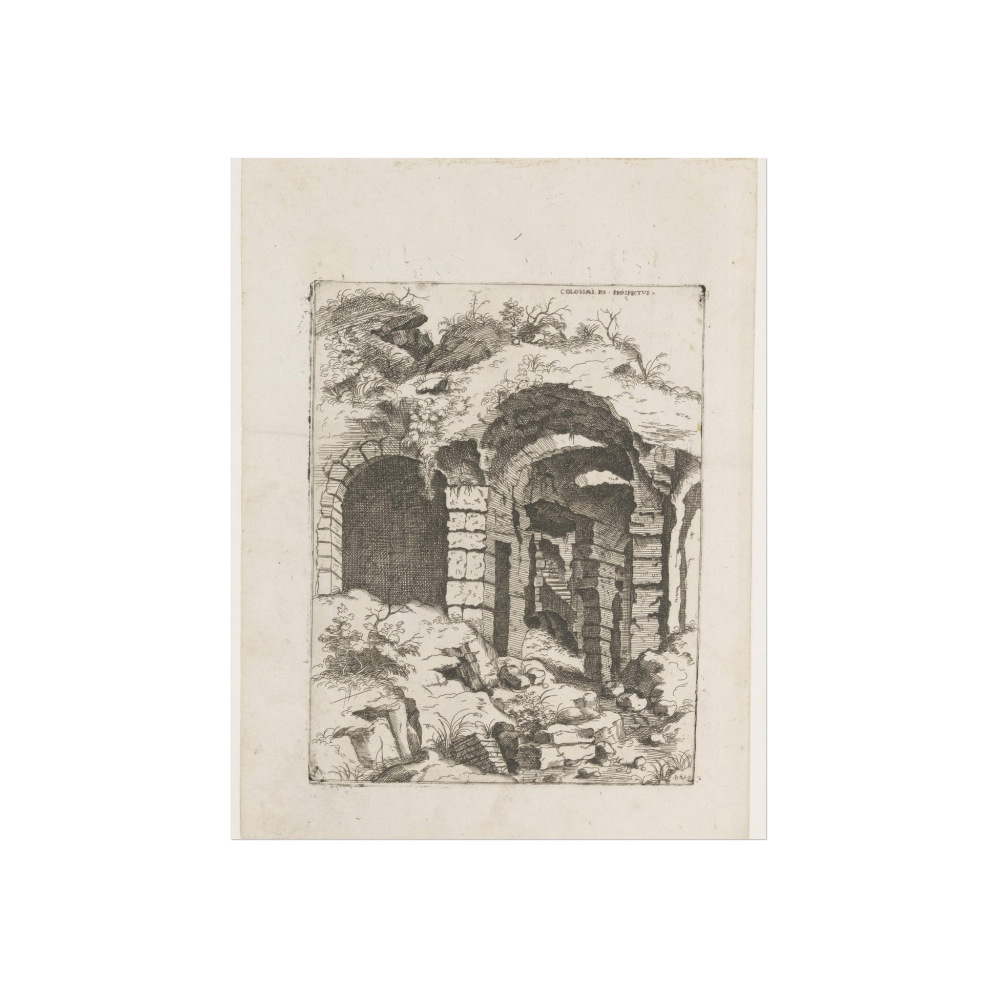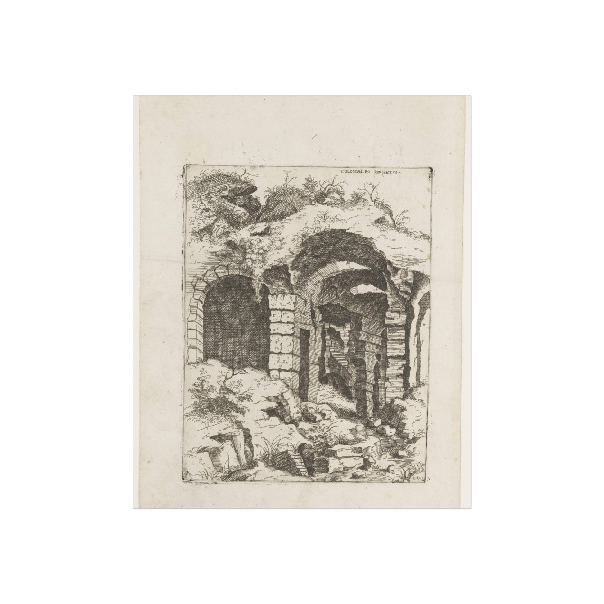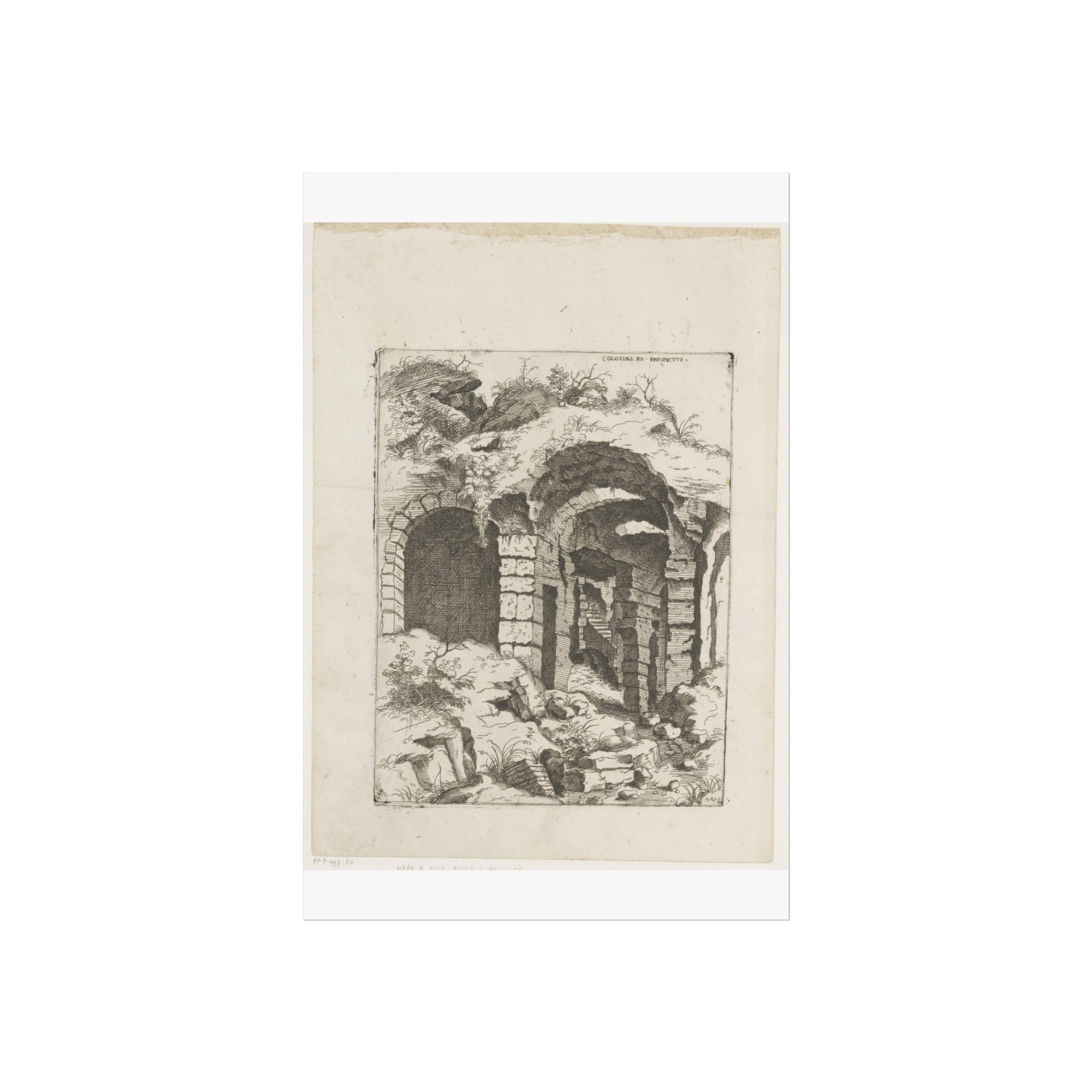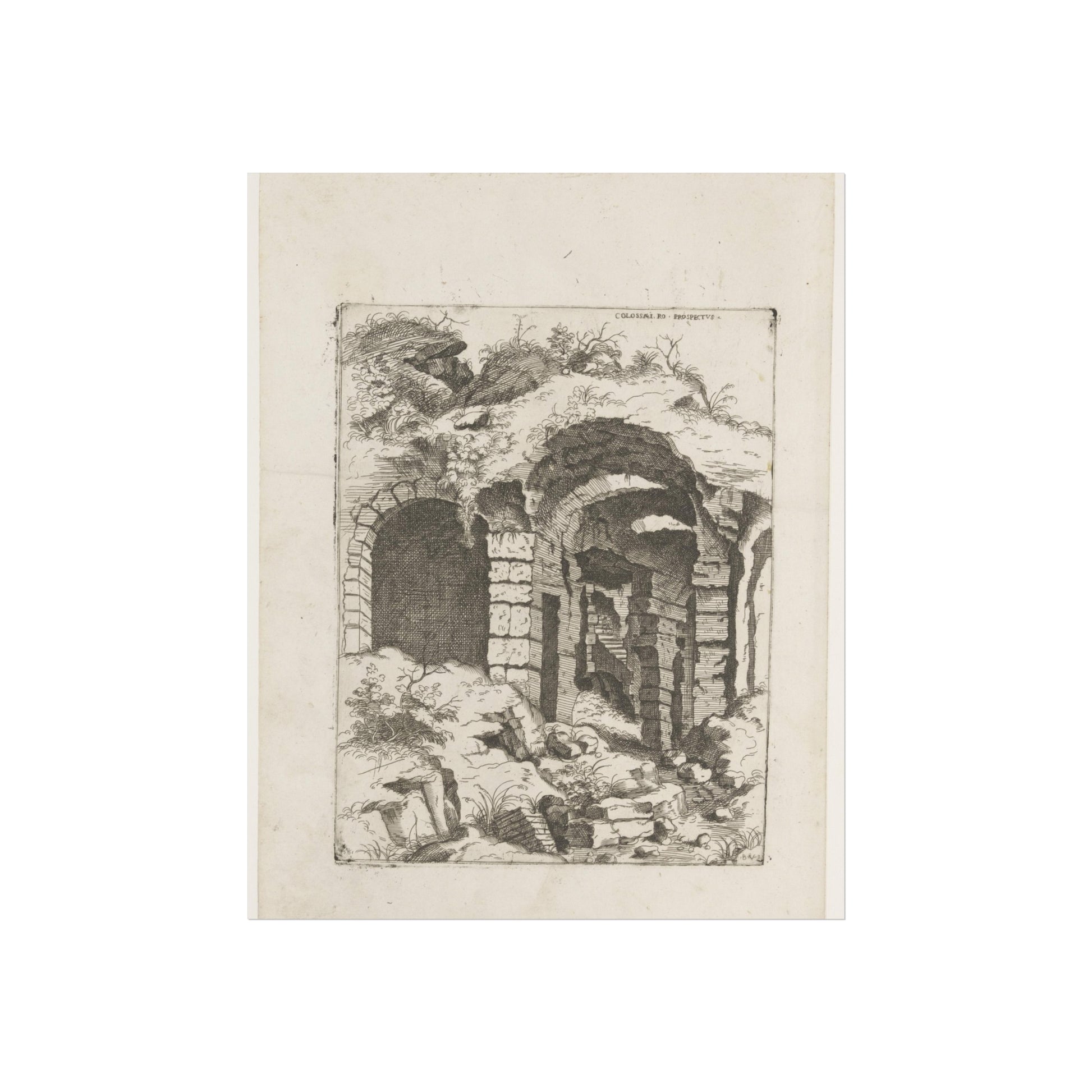 This captivating artwork presents a unique perspective on the remnants of Rome's iconic Colosseum. The artist, Giovanni Battista Pittoni, skillfully captures the timeless beauty and historical significance of this ancient wonder. The title, inscribed in Latin at the top right, adds a touch of authenticity and intrigue to the piece.