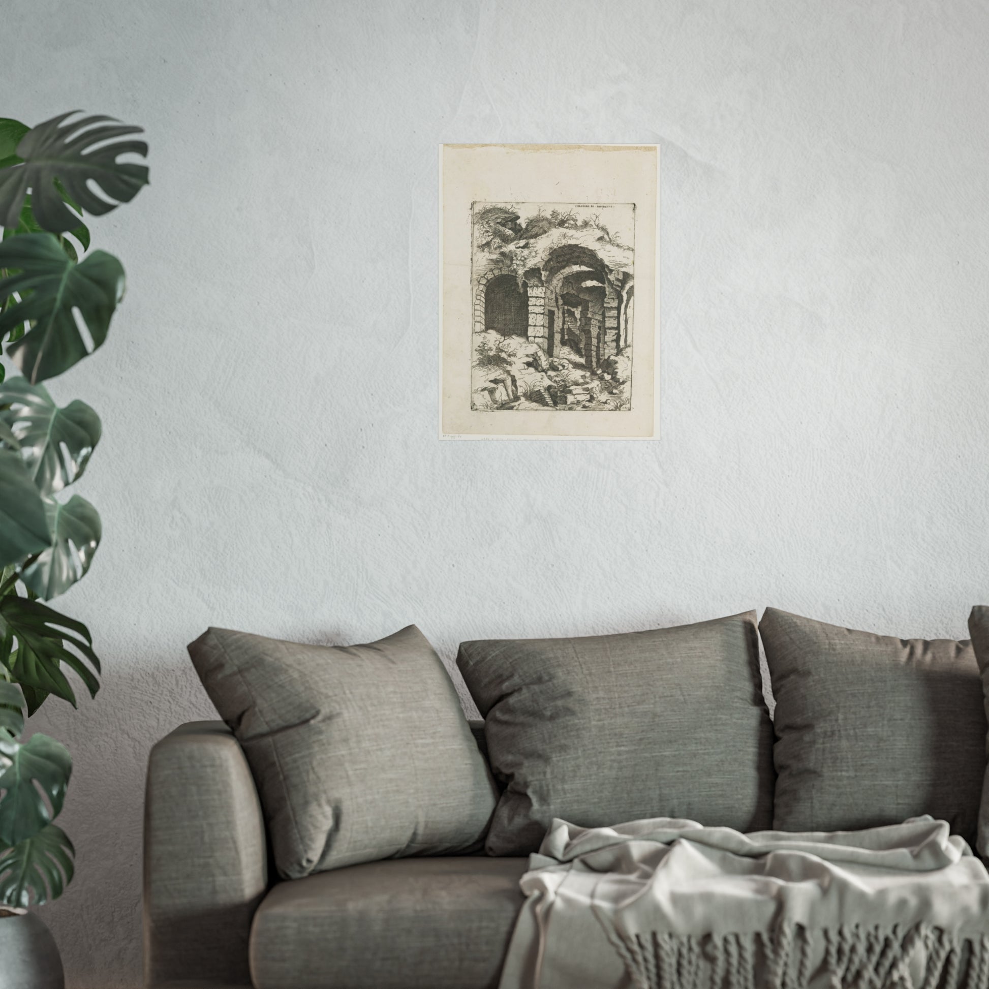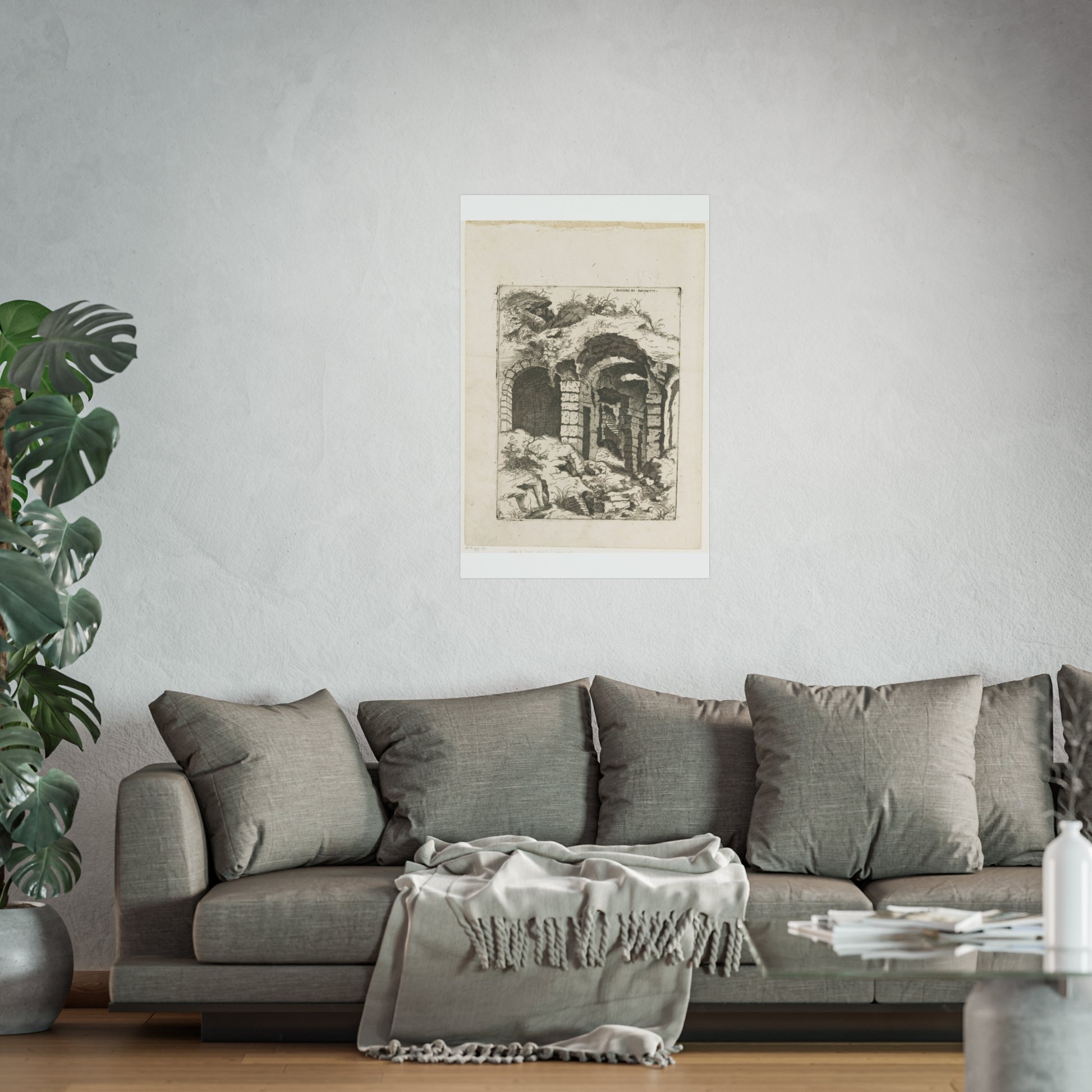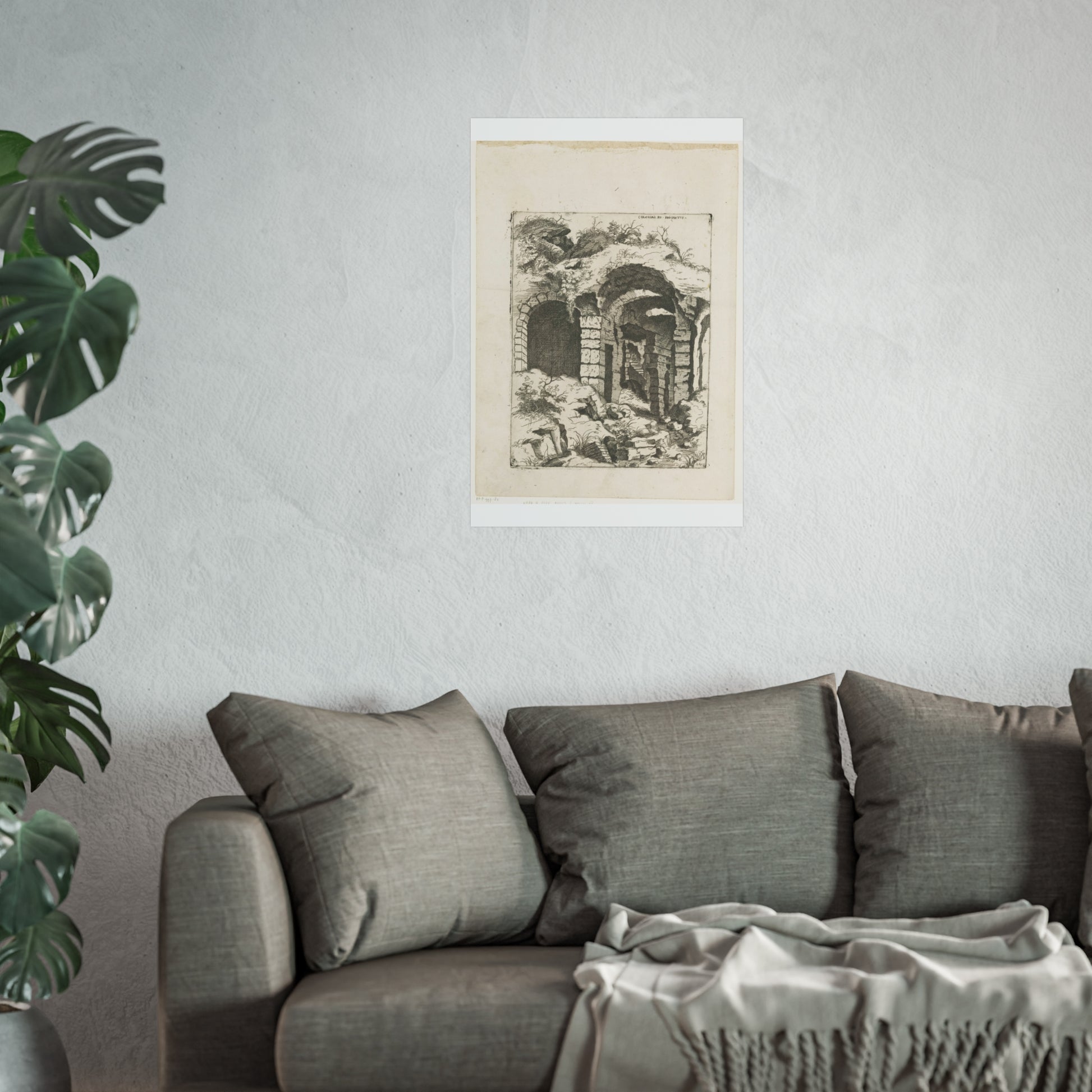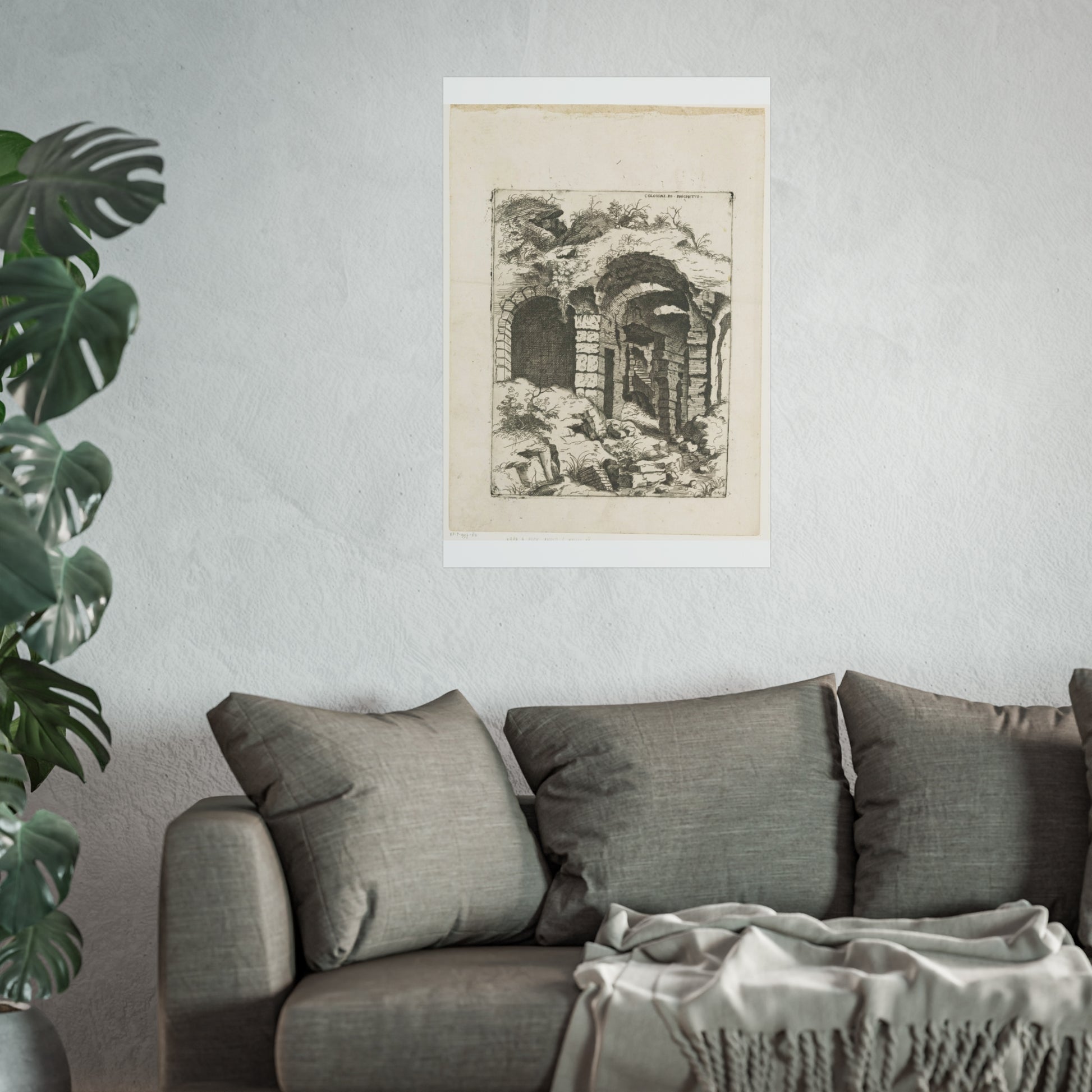 This captivating artwork presents a unique perspective on the remnants of Rome's iconic Colosseum. The artist, Giovanni Battista Pittoni, skillfully captures the timeless beauty and historical significance of this ancient wonder. The title, inscribed in Latin at the top right, adds a touch of authenticity and intrigue to the piece.