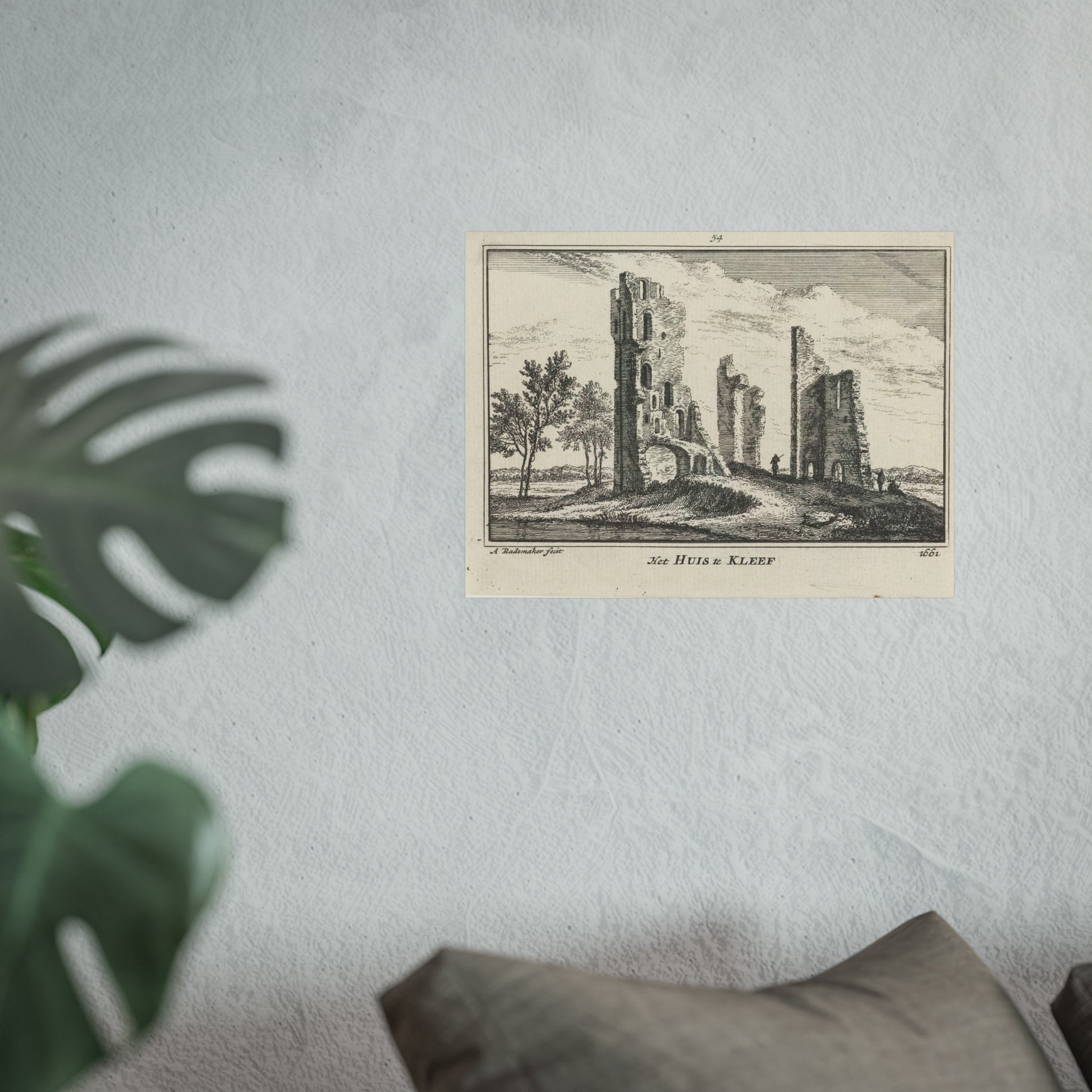Immerse yourself in the captivating scene of the Huis ter Kleef ruin in Haarlem, as it stood around the year 1661. This piece perfectly captures the haunting beauty of time-worn architecture, inviting viewers to step back in time and experience a piece of history.