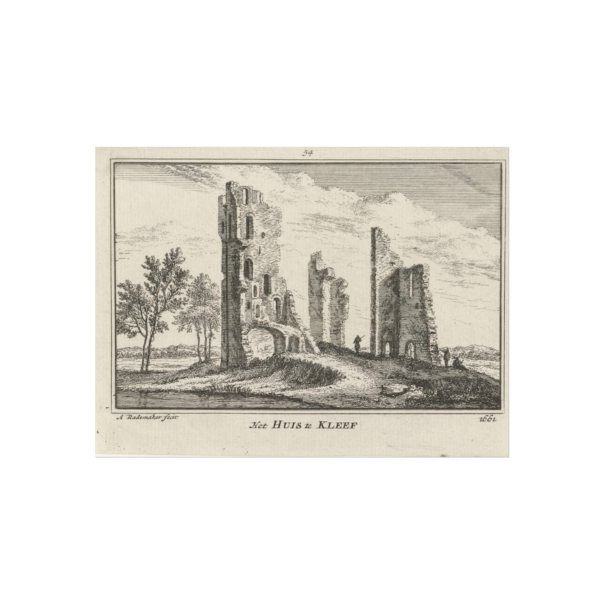 Gezicht op de ruïne van Huis ter Kleef te Haarlem, 1661, 1727