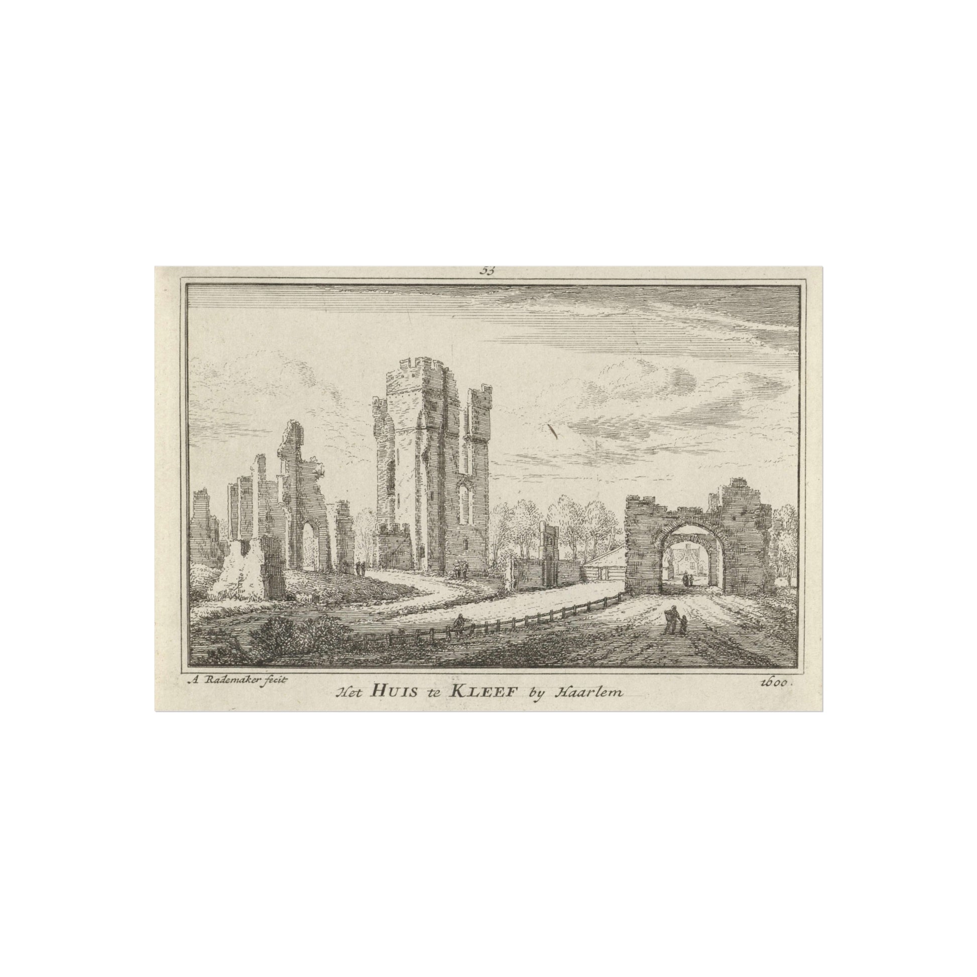 Gezicht op de ruïne van Huis ter Kleef te Haarlem, 1660, 1727