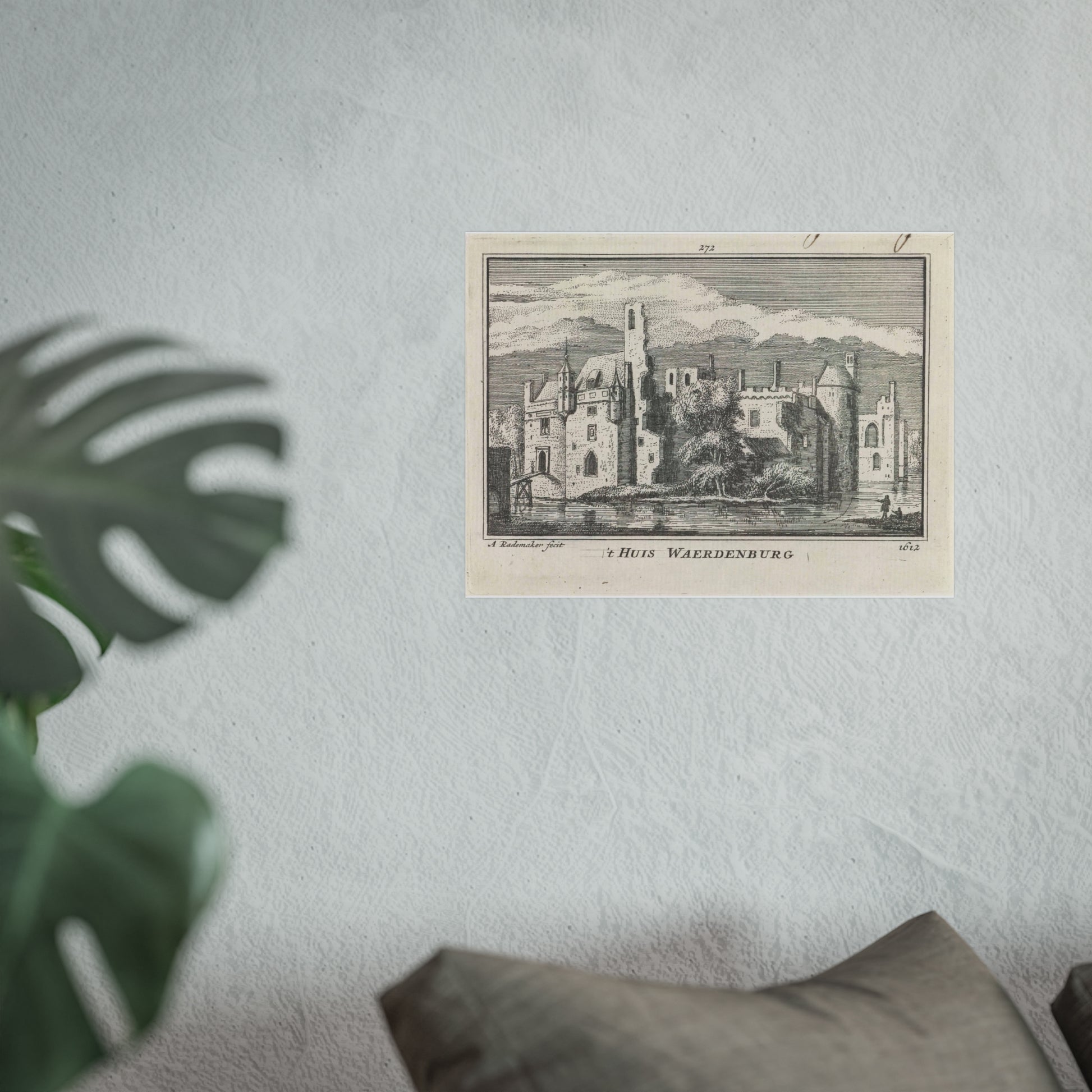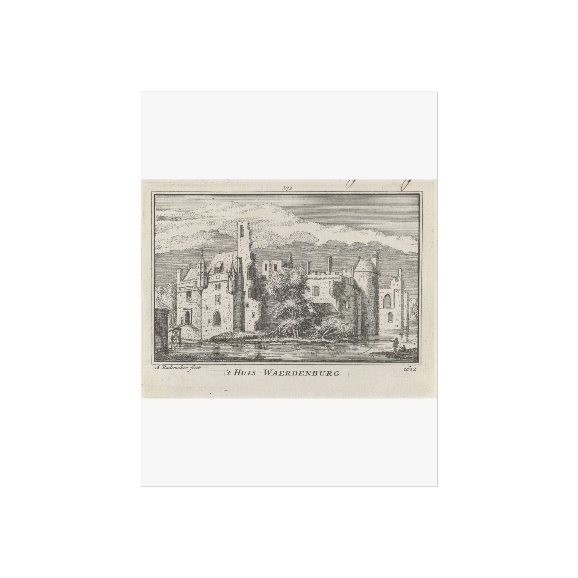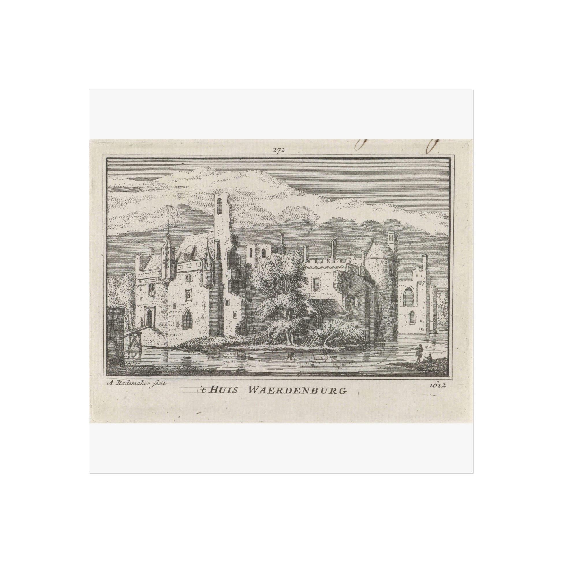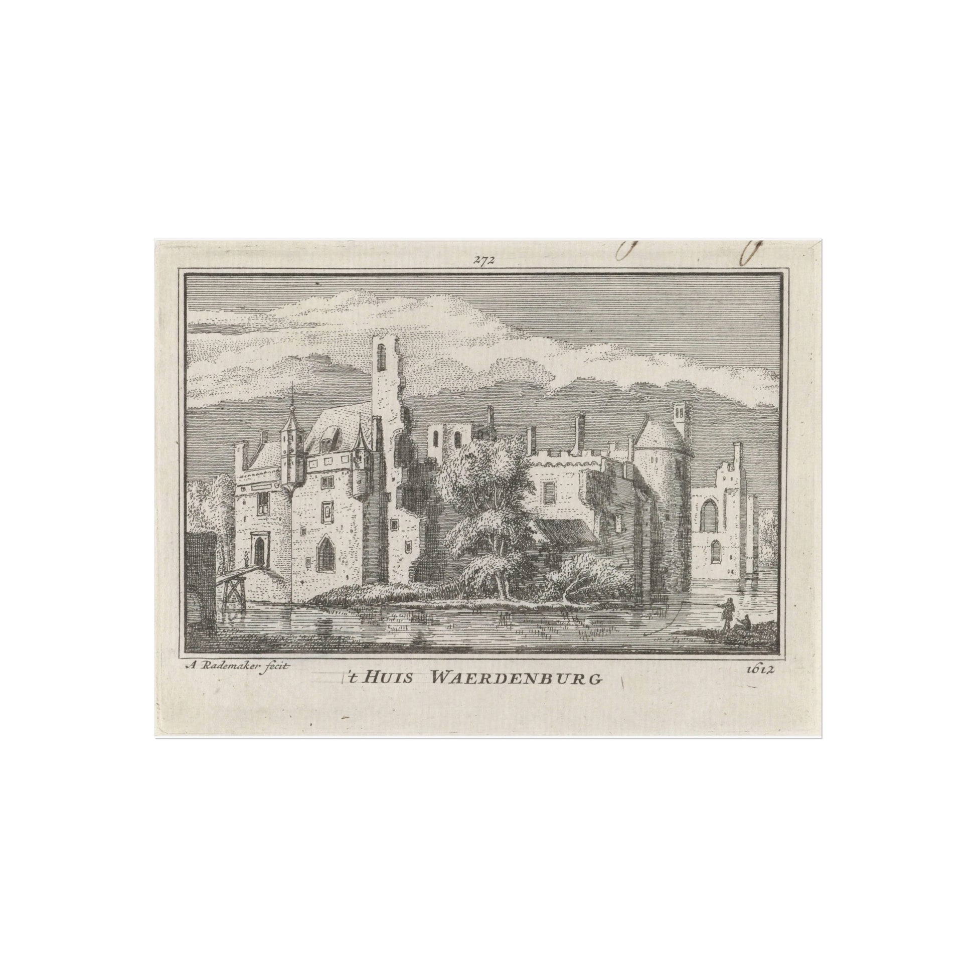Title: View of Waardenburg Castle Ruins and Moat, circa 1612