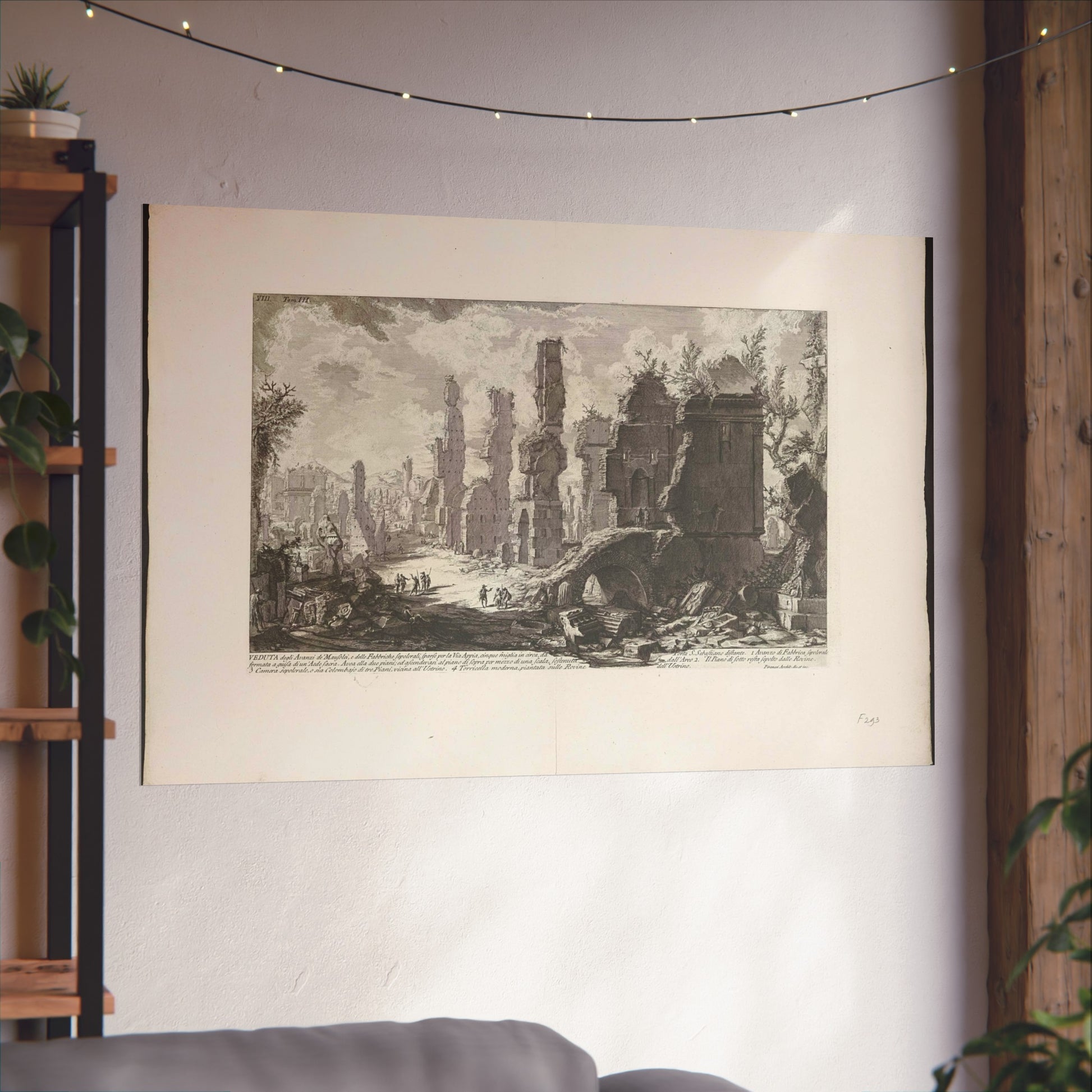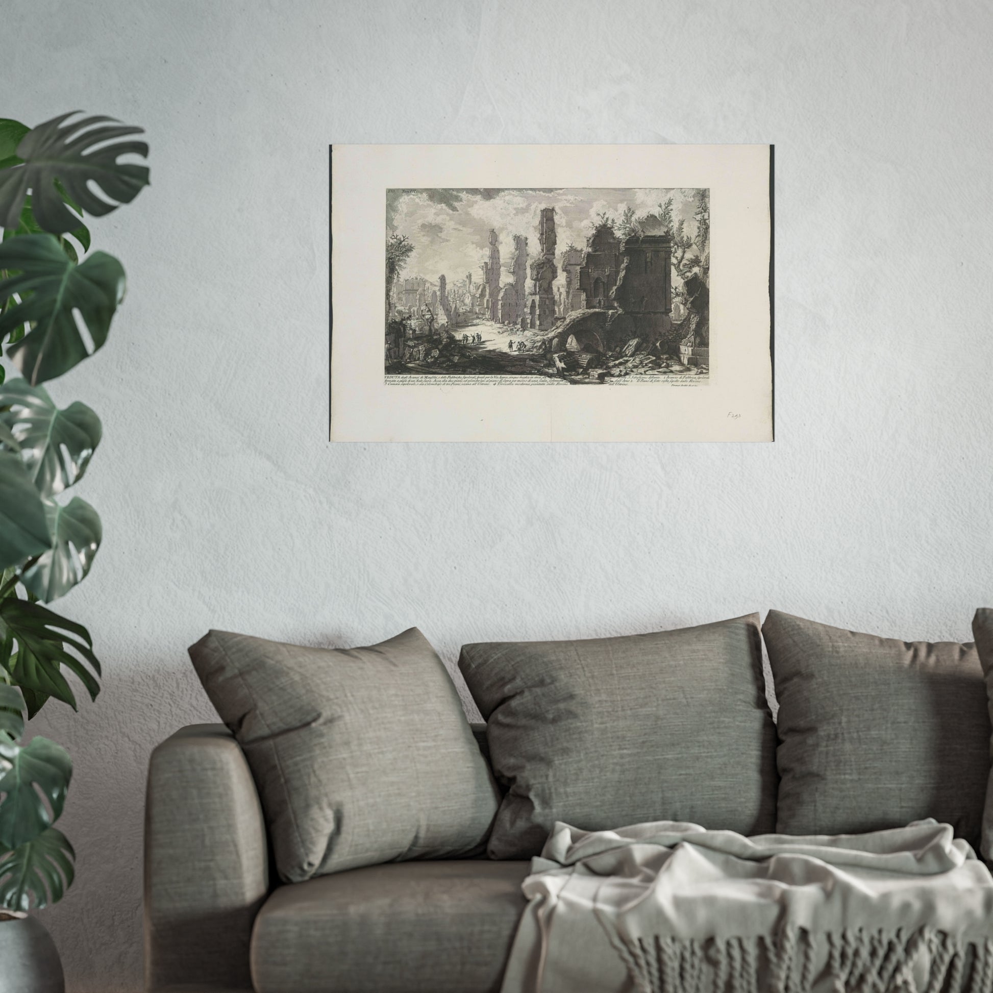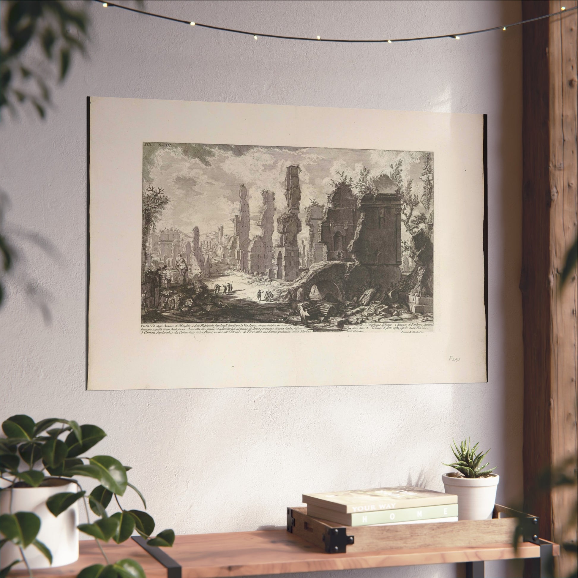 This captivating artwork presents a view of the remnants of various mausoleums and tombs along the ancient Via Appia Antica. The piece is meticulously detailed, with a title and explanatory list with numbers in the lower margin. It's notably marked on the top left as 'VIII. Tom. III'.