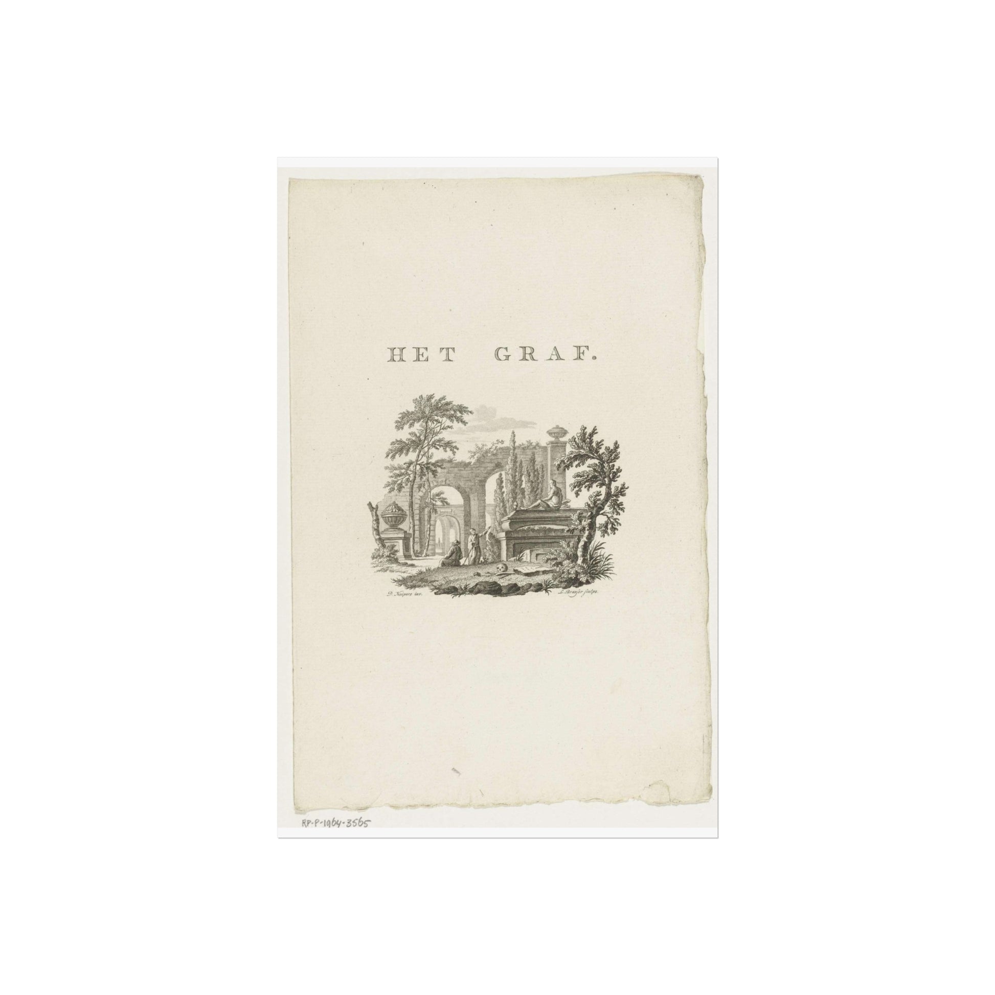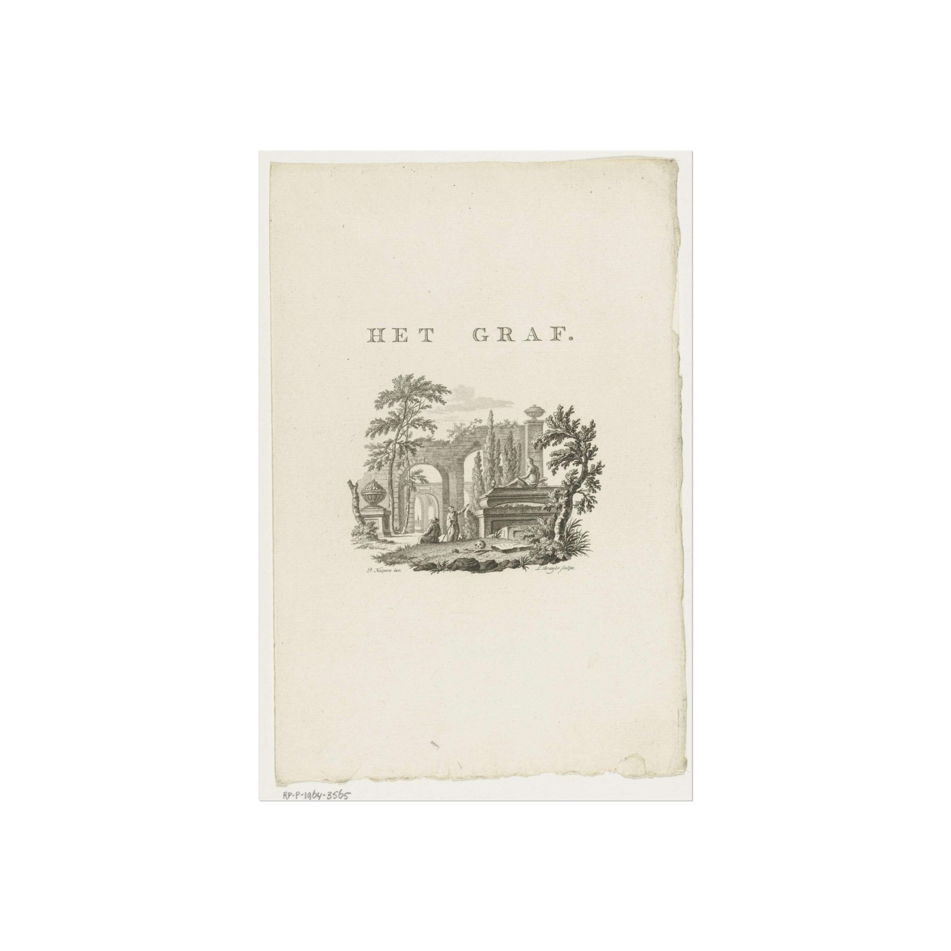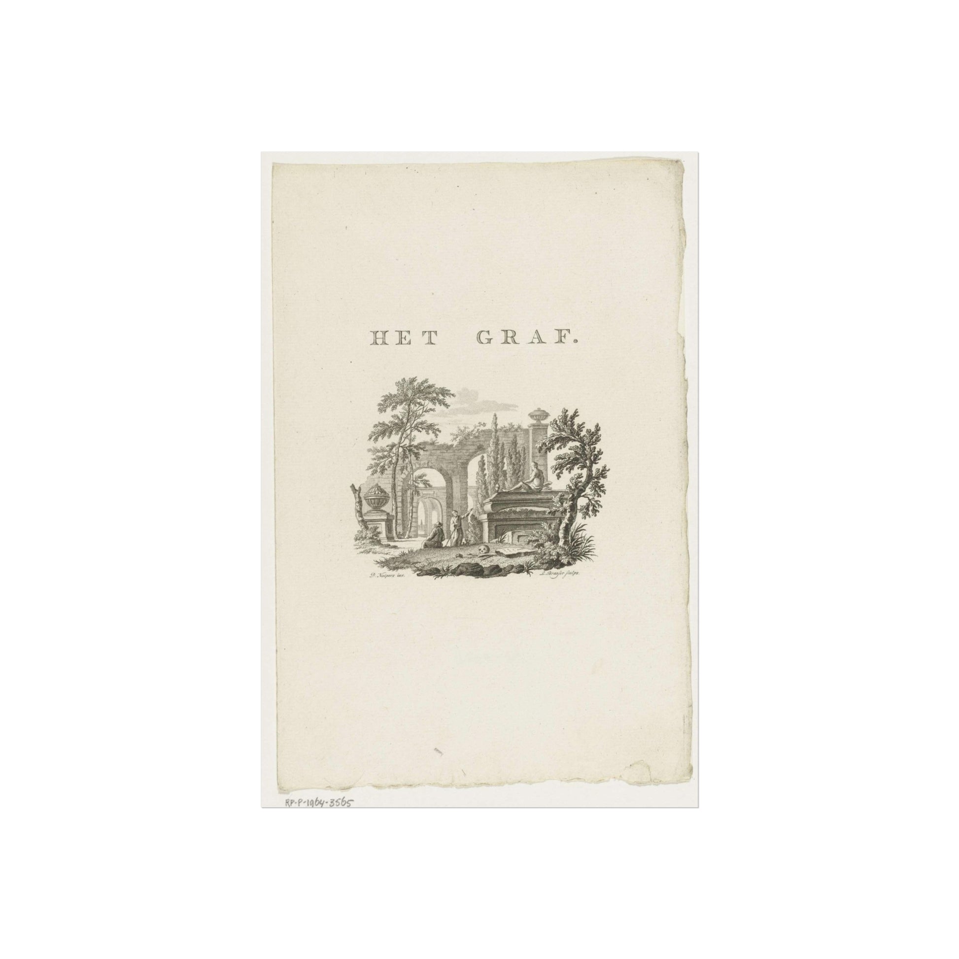 Vignet met begraafplaats met monumentale grafmonumenten, 1727