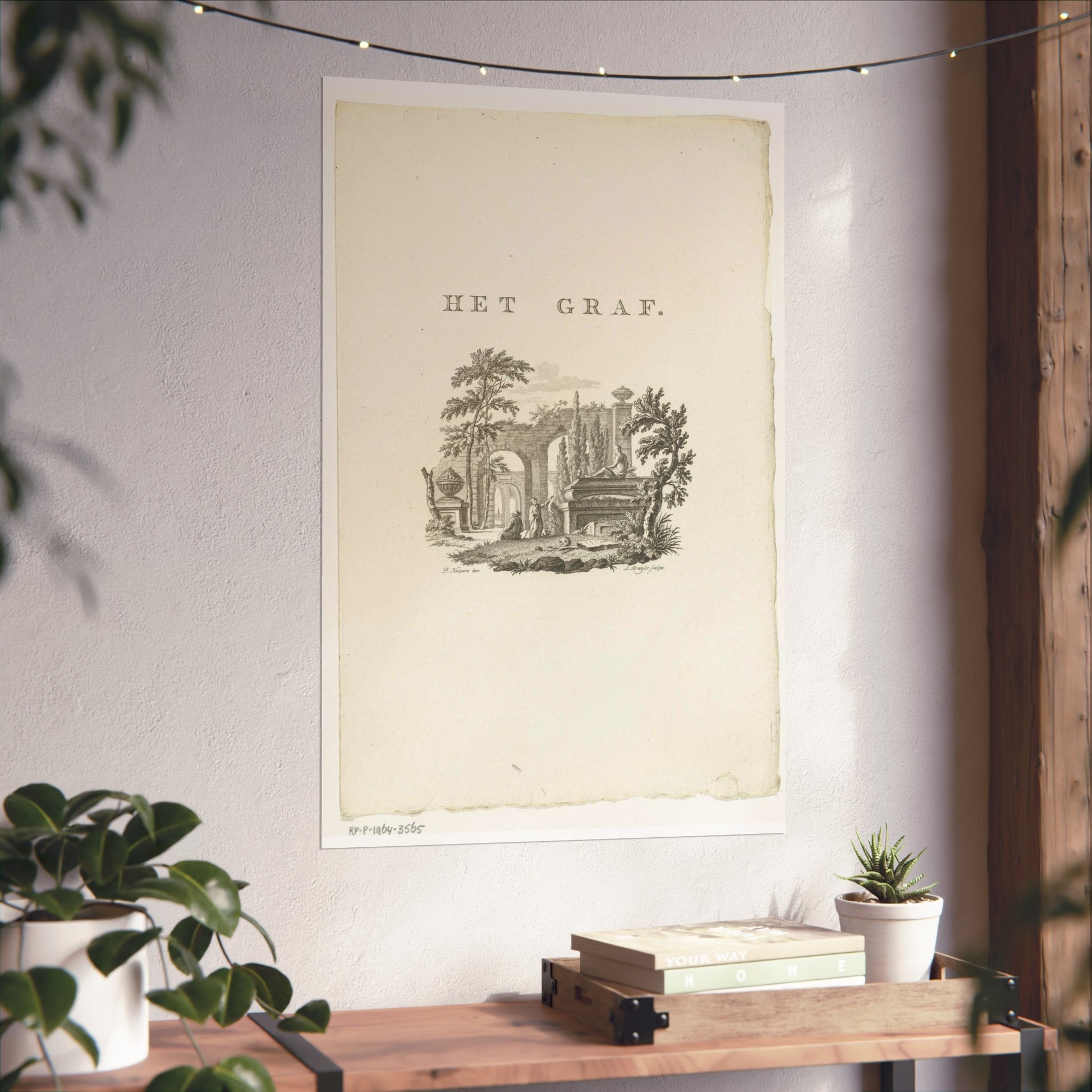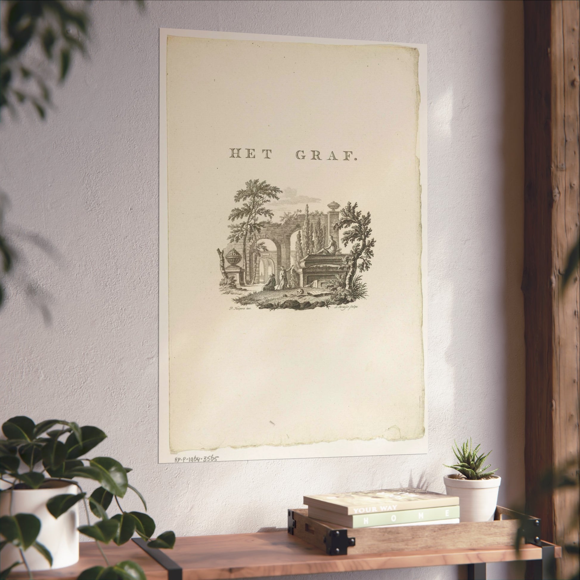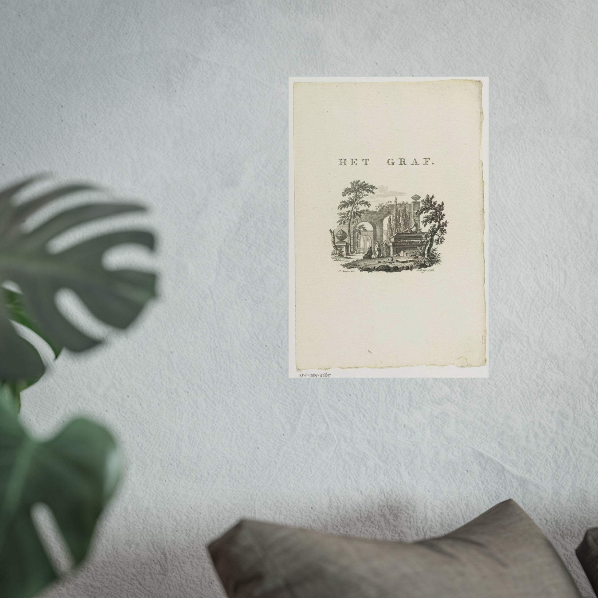 Vignet met begraafplaats met monumentale grafmonumenten, 1727