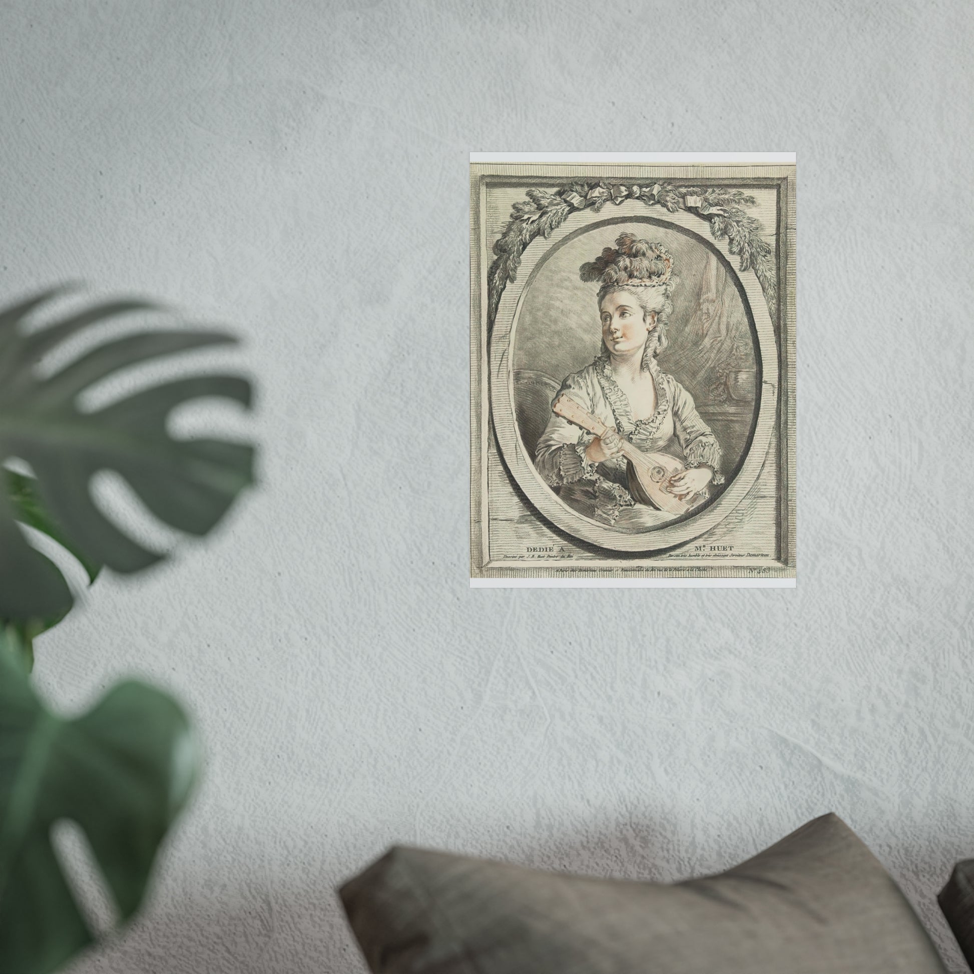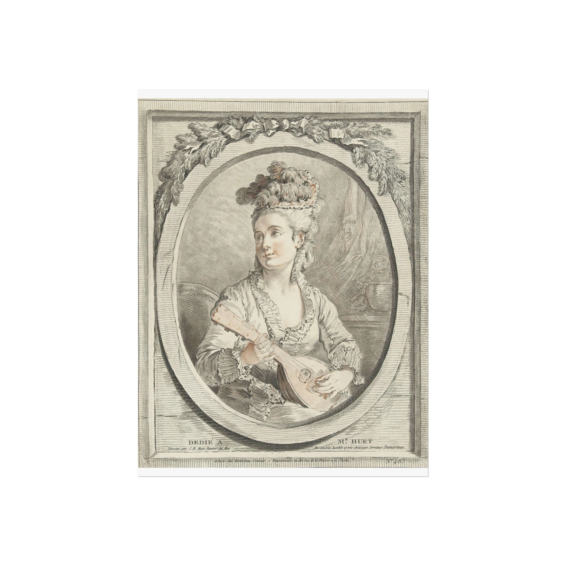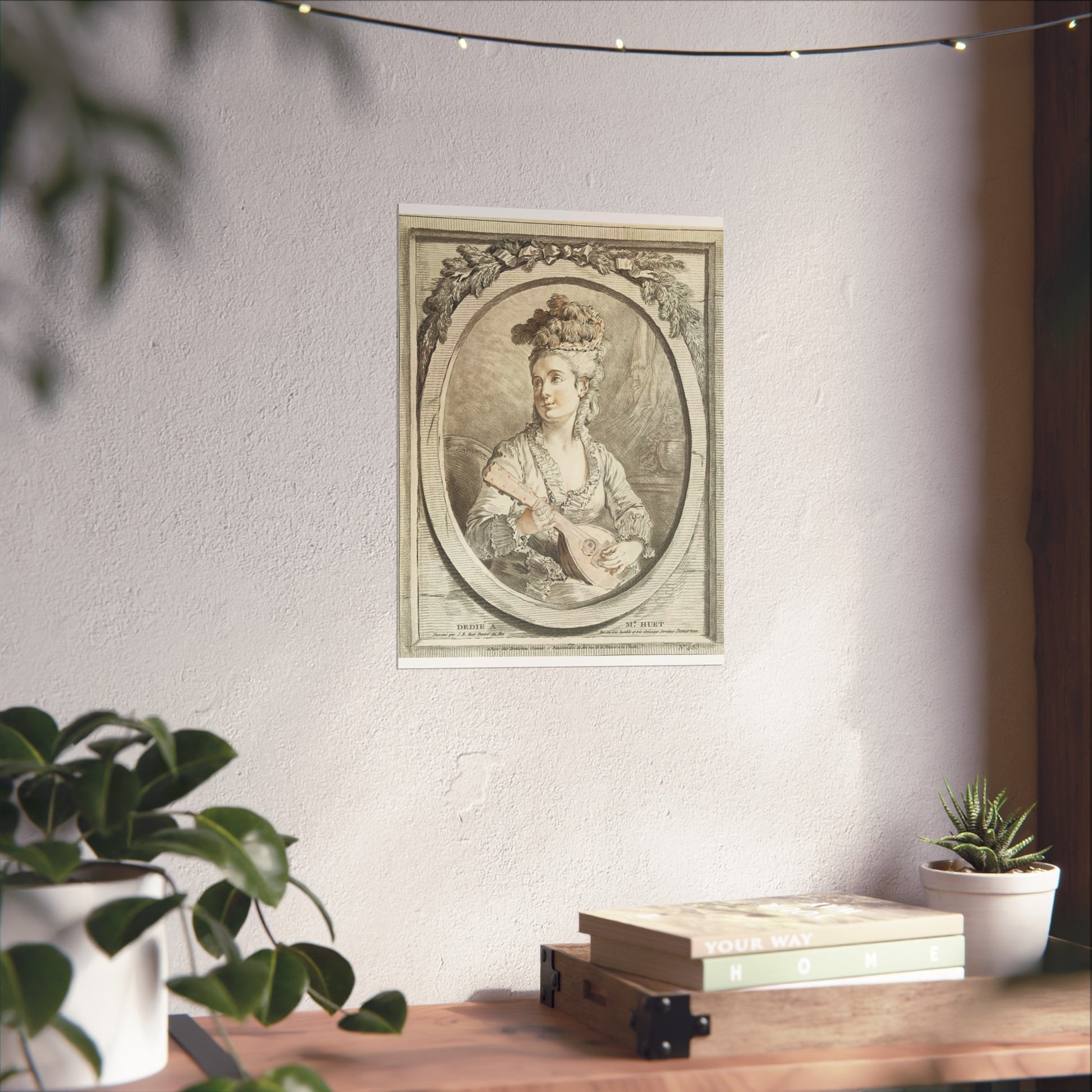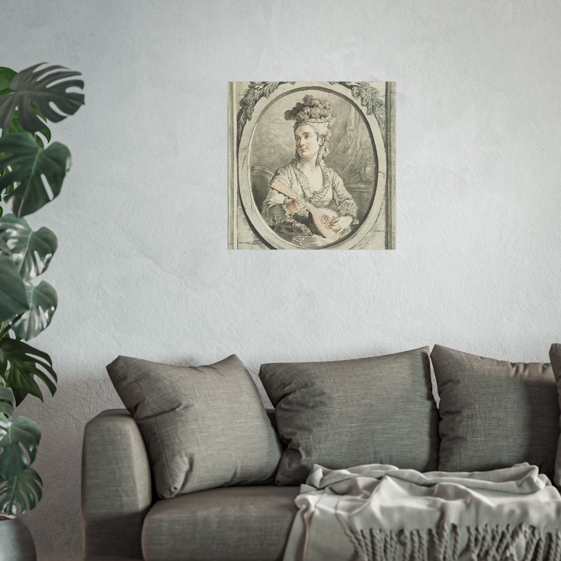 Immerse yourself in the serene world of 'Woman with a Lute' by Gilles Demarteau. This captivating painting portrays a woman delicately playing a lute, lost in her music. The oval frame adds an intimate touch, drawing viewers closer to her tranquil expression and the soft, harmonious atmosphere. It's a beautiful blend of artistry and emotion, capturing a timeless moment of musical reverie.